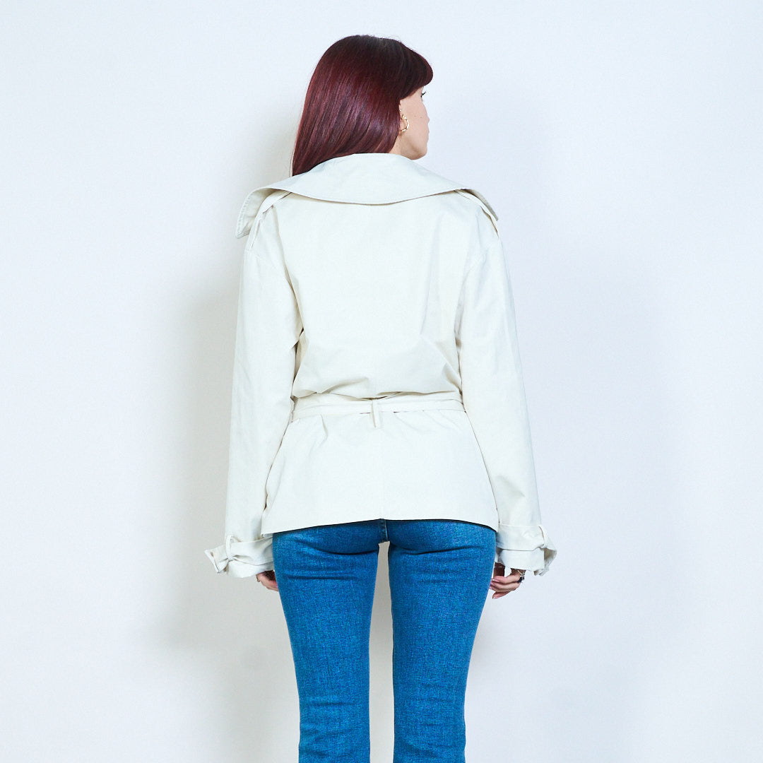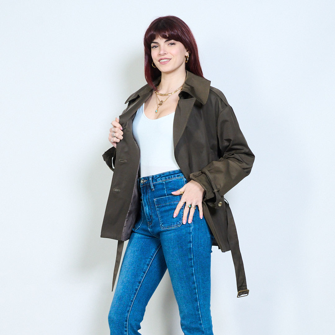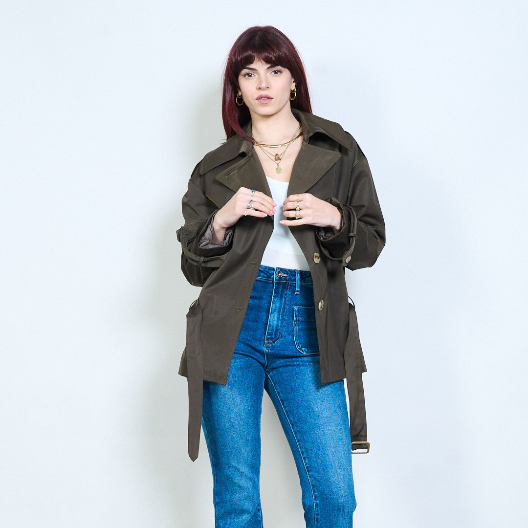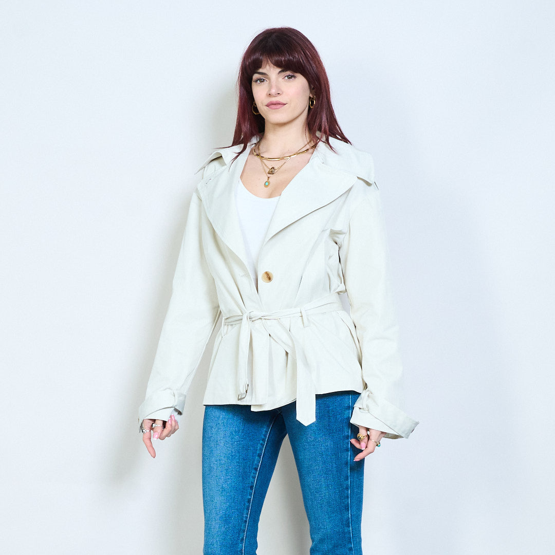 Didmeninė striukė su viena krūtine su diržu, ilgomis rankovėmis