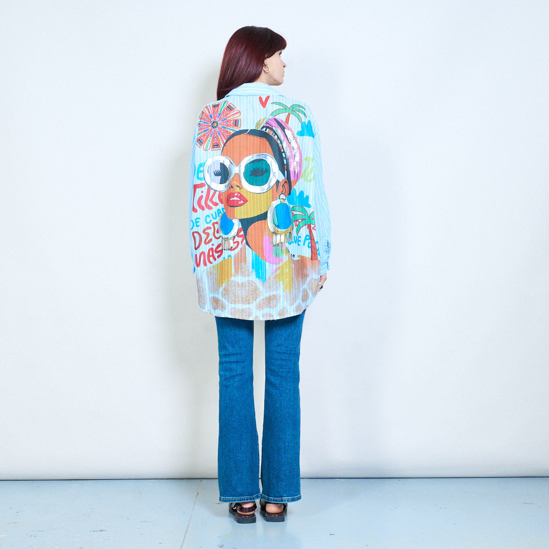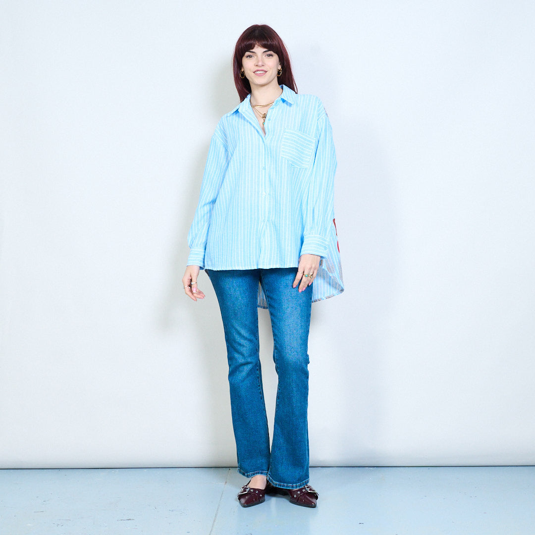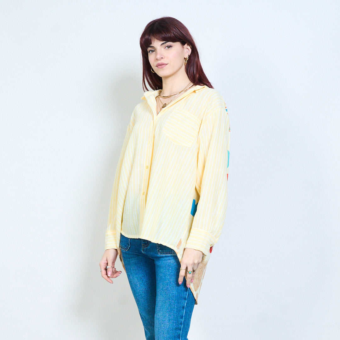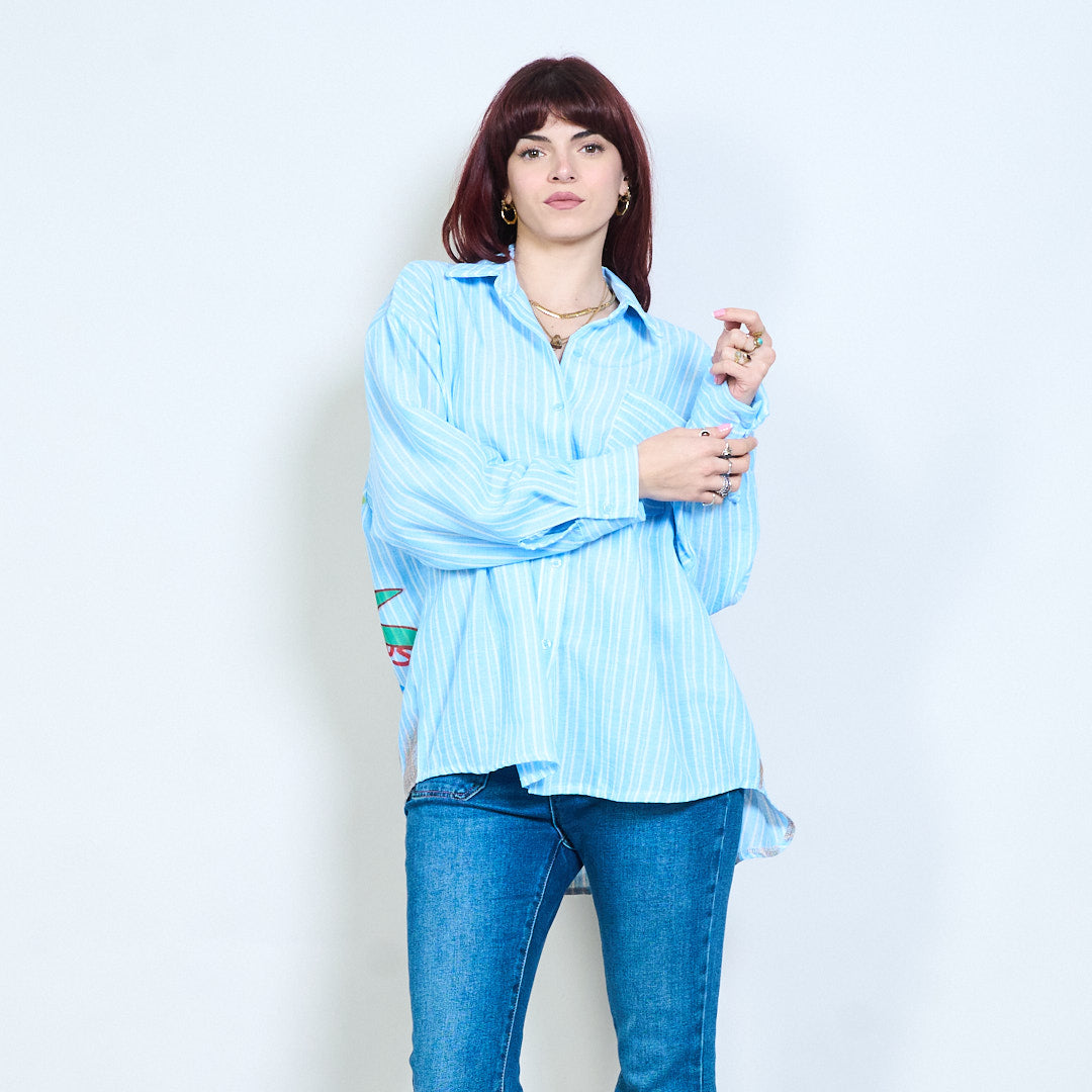 Dryžuota grafinė spauda su sagutėmis ilgomis rankovėmis marškiniai didmeninė prekyba