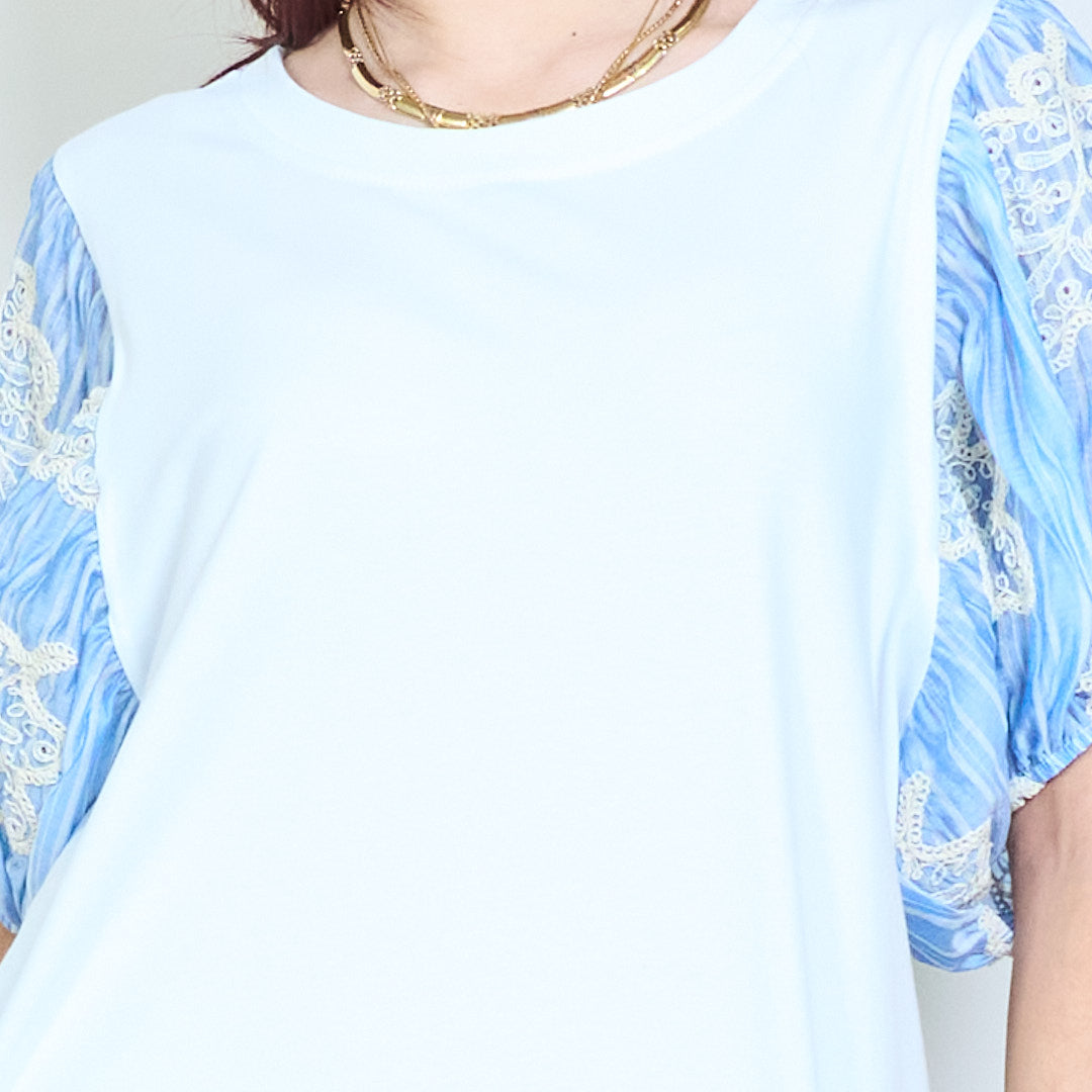 Dryžuotas gėlėmis siuvinėtas pūstas rankoves apvalia kaklo viršus didmeninė prekyba