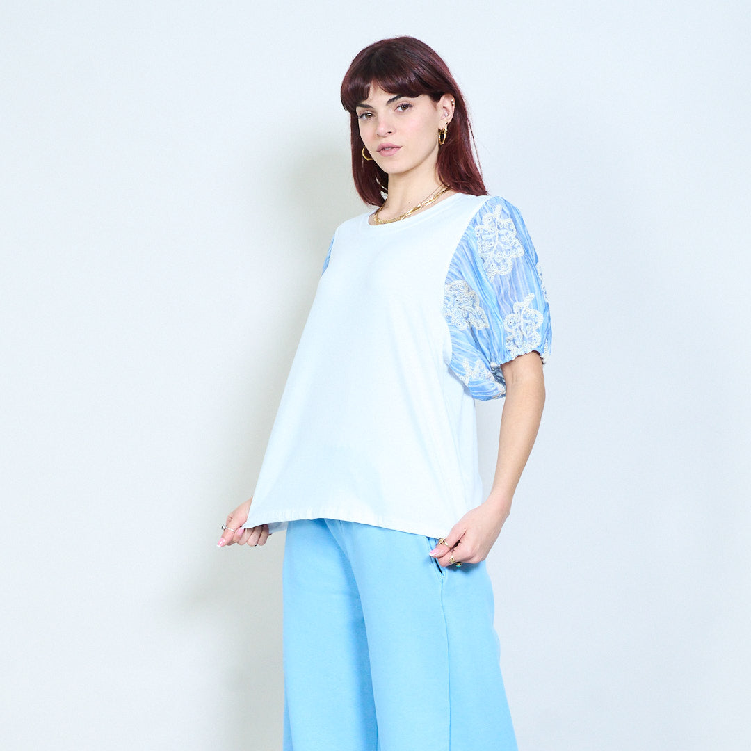 - Įtemptos rankovės suteikia tekstūros ir vizualinio patrauklumo