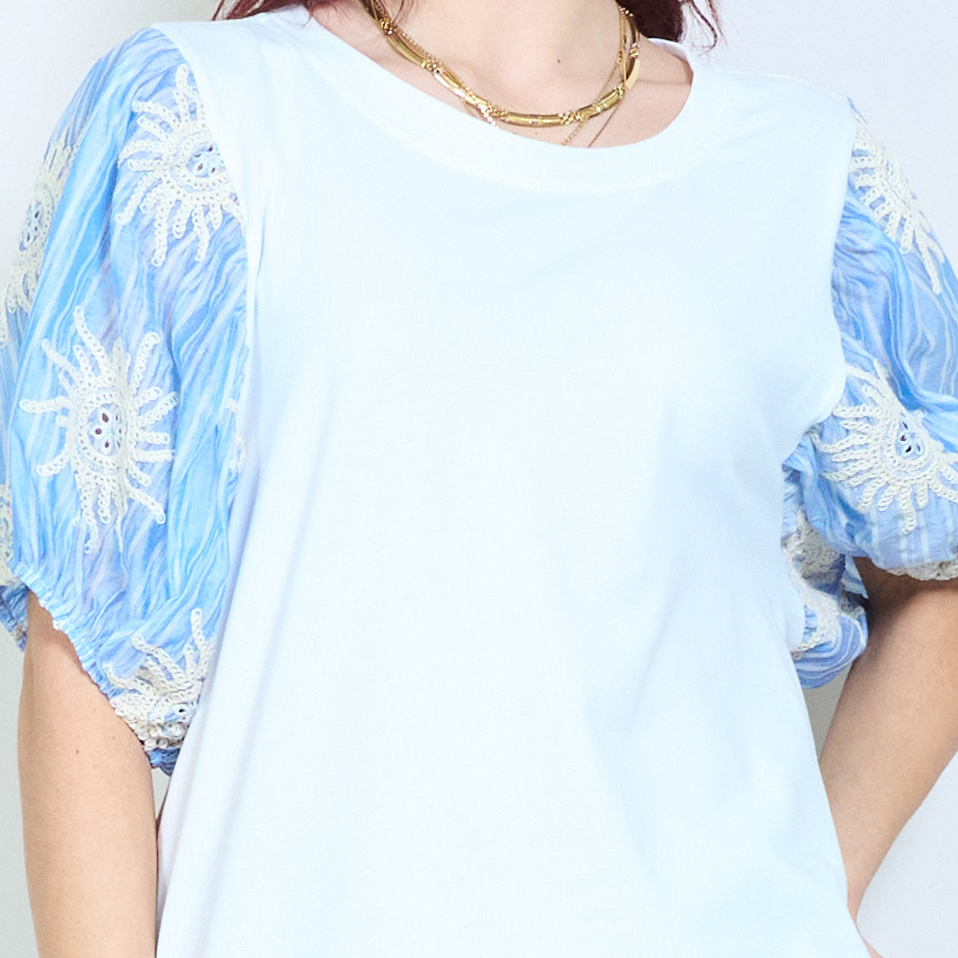 Dryžuotas gėlėmis siuvinėtas pūstas rankoves apvalia kaklo viršus didmeninė prekyba