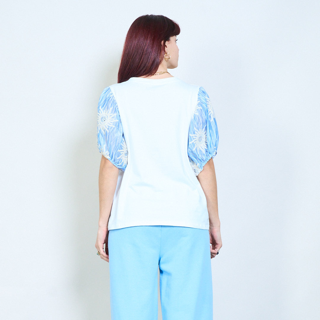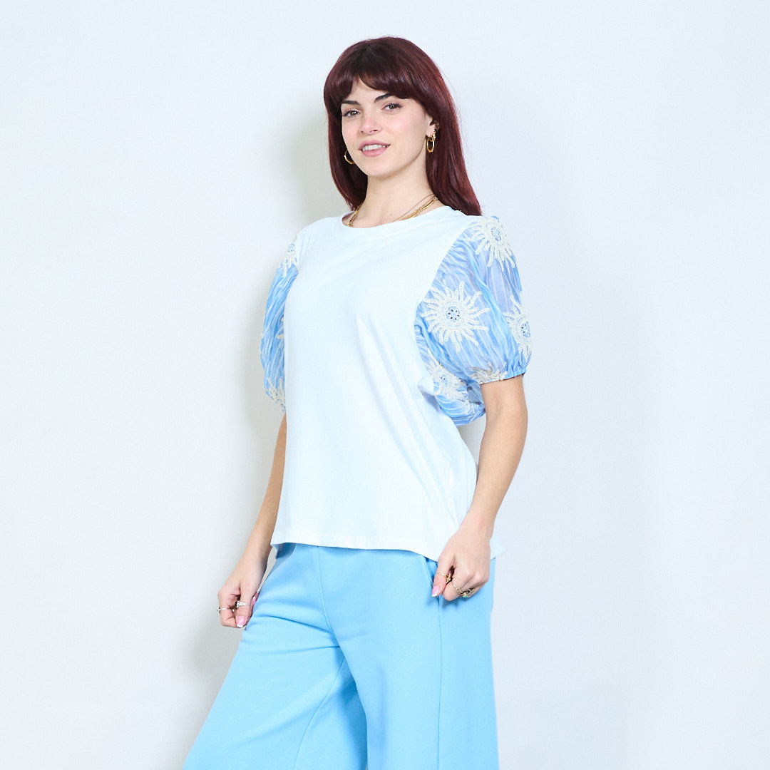 - Pūstos rankovės suteikia apimties ir moteriško silueto