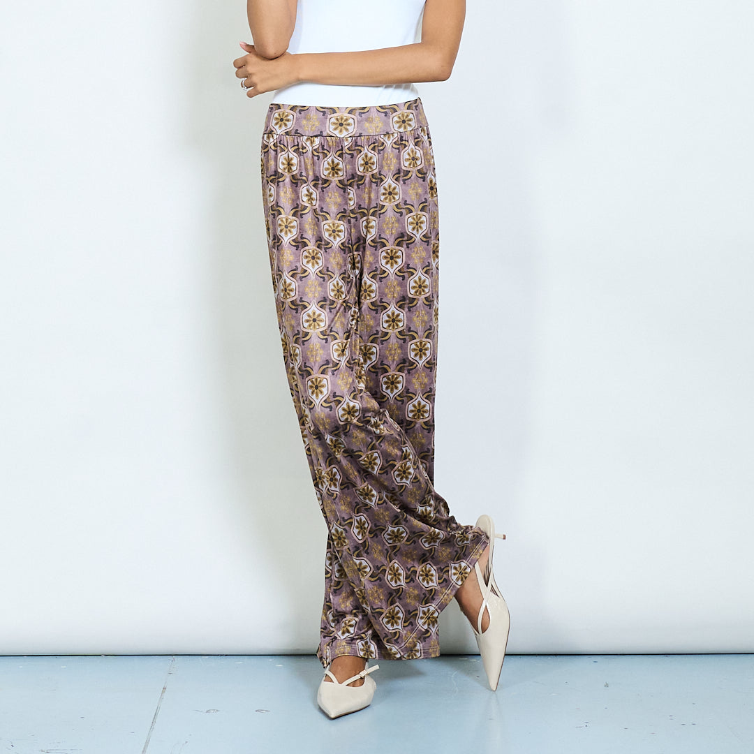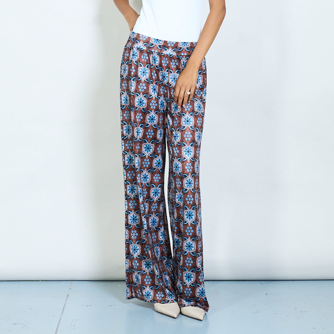 Retro gėlių spausdinimo satino kelnių didmeninė prekyba