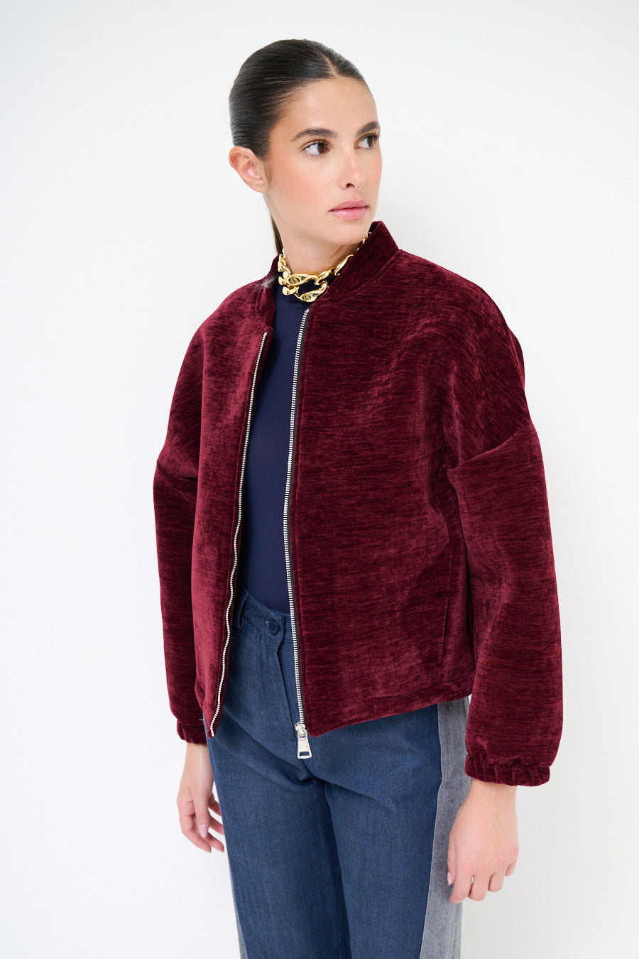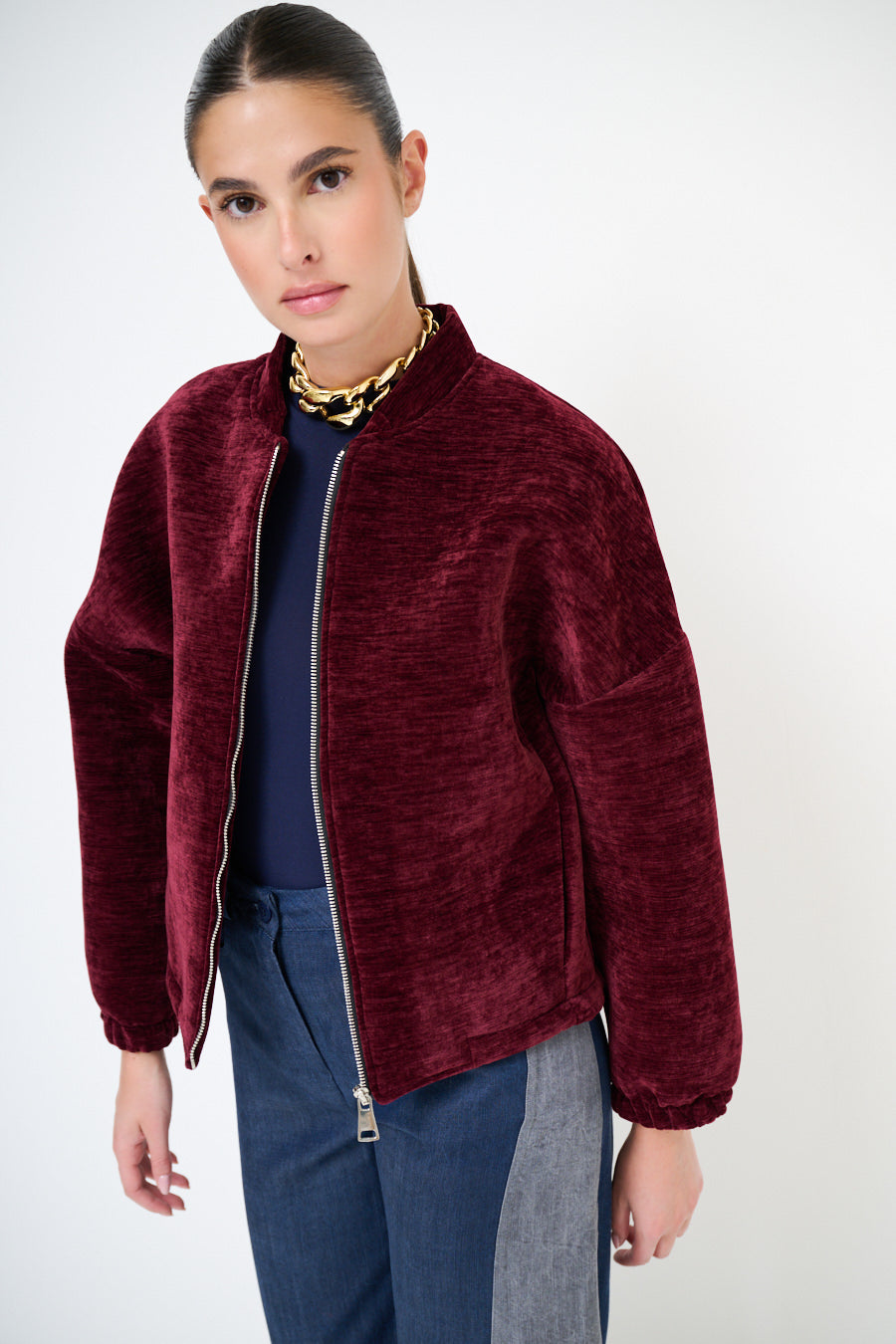 - Modernus bombonešių siluetas su aptakiu užtrauktuku