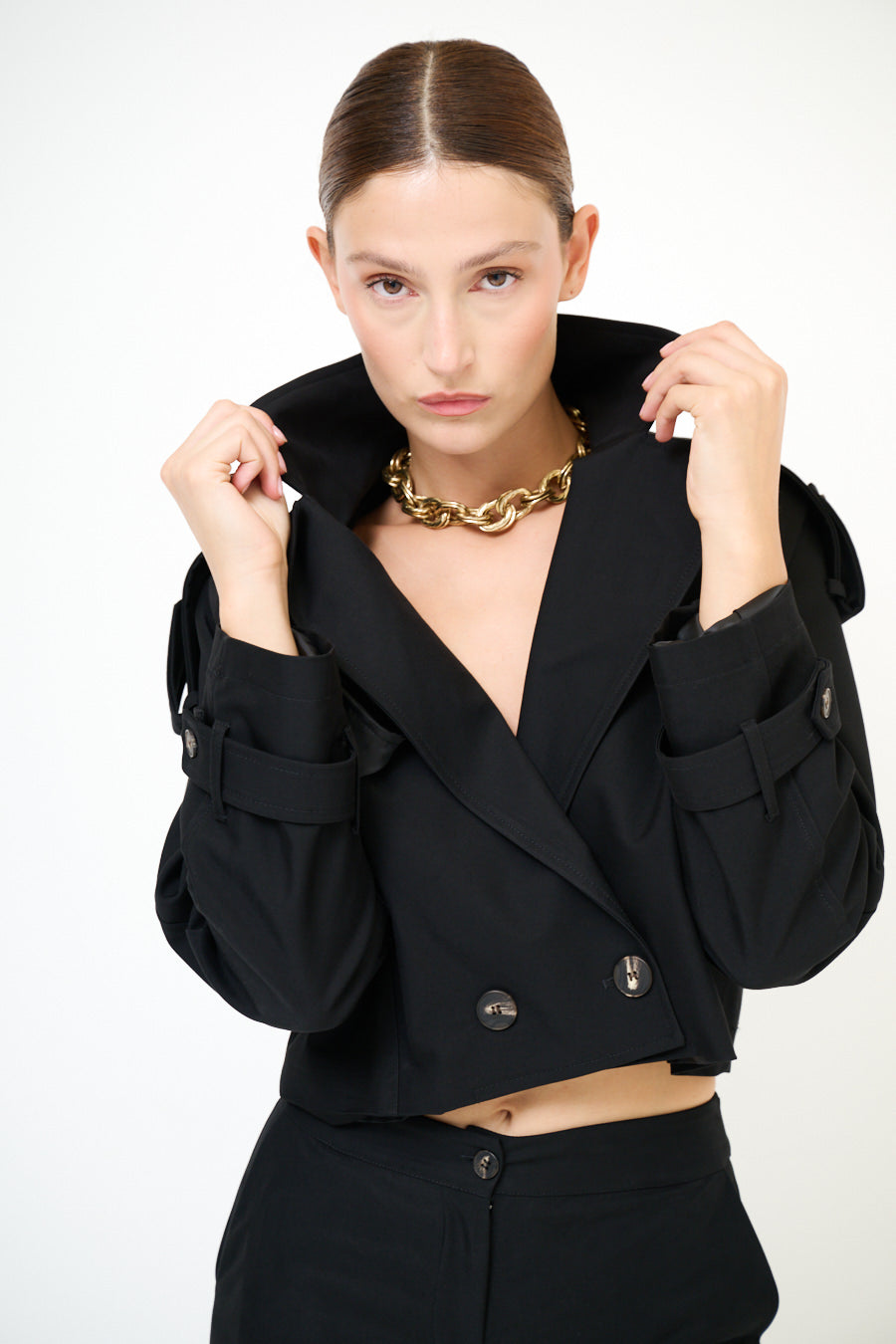 - Apkarpyto ilgio „Blazer“, siūlantis drąsų, mados į priekį siluetą