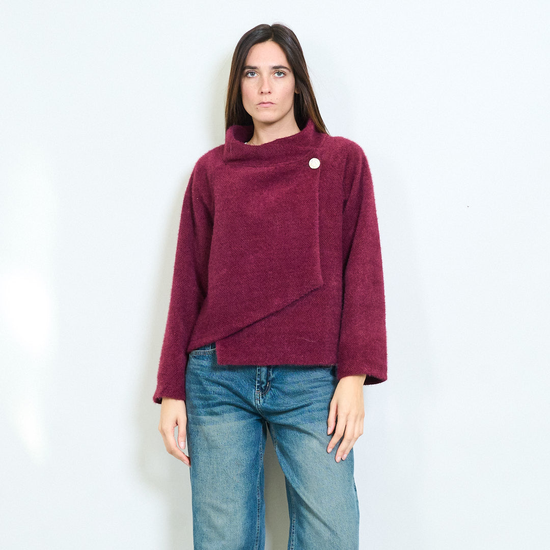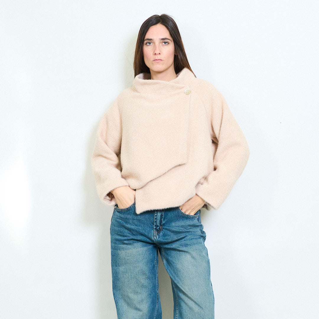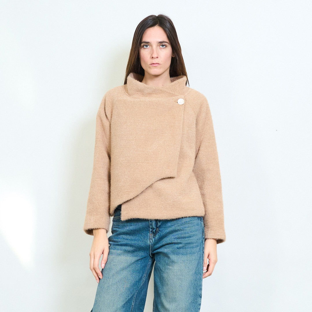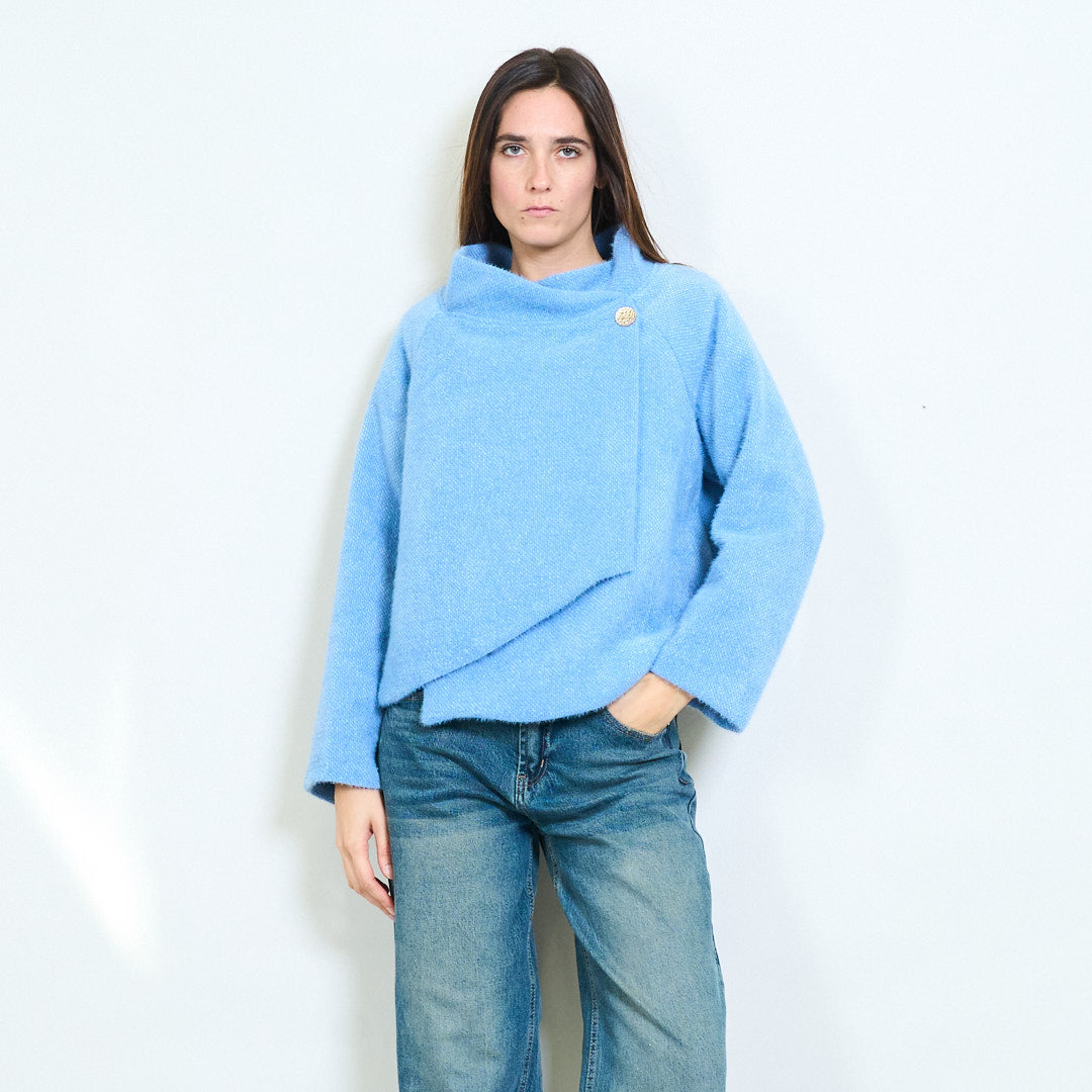 Asimetriškas užkluptas mygtuko detalė megztas megztinis didmeninė prekyba