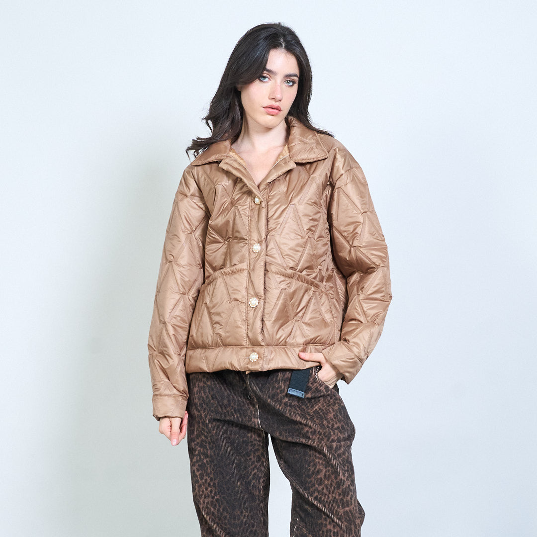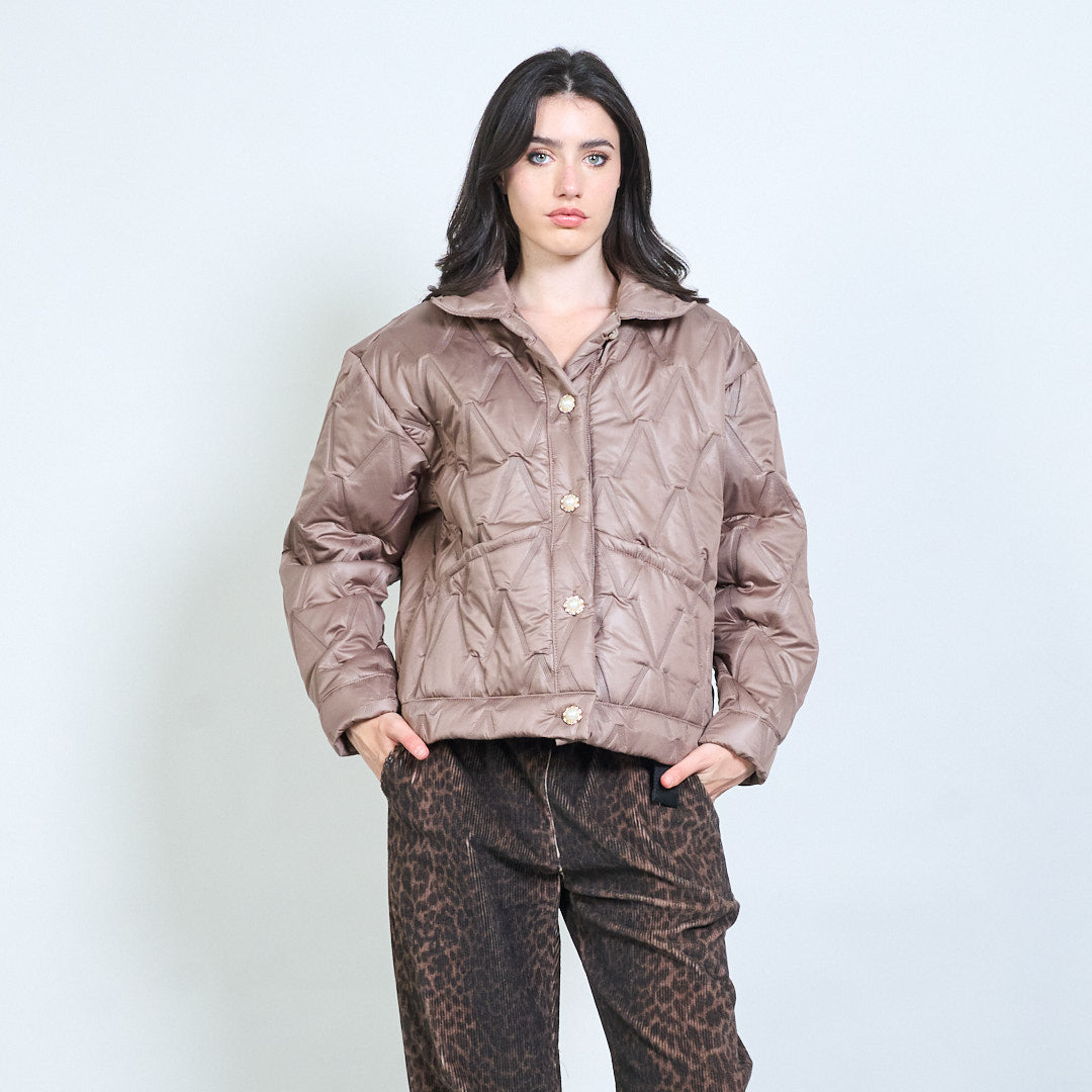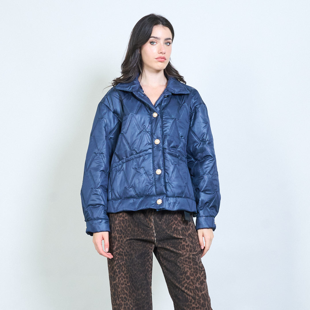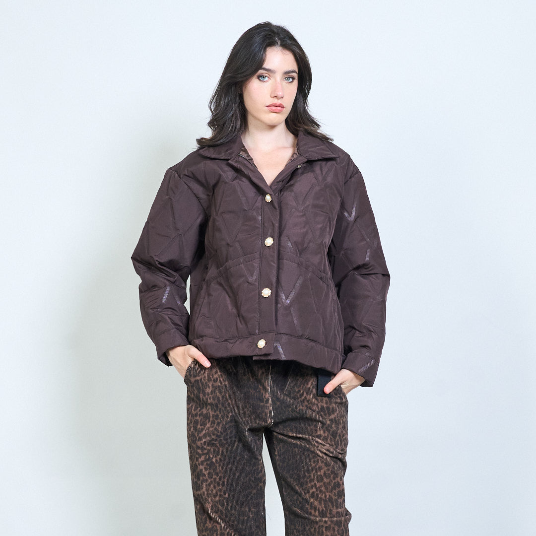 Geometrinis dygsniuotas mygtukas priekyje apkarpyta striukė didmeninė prekyba