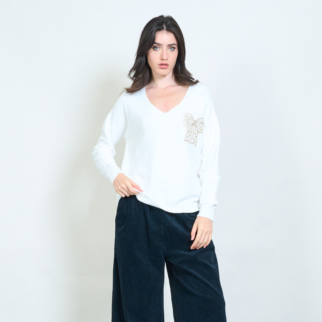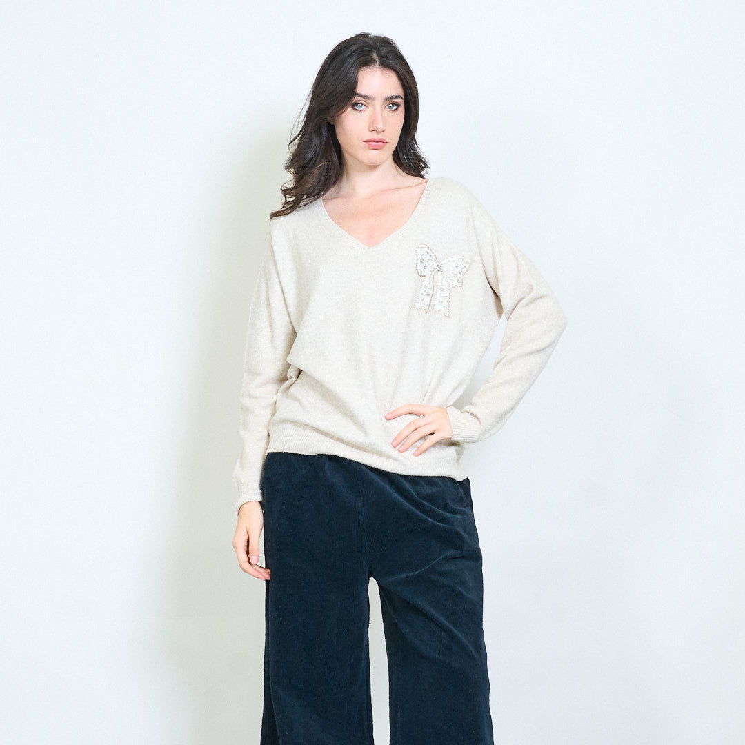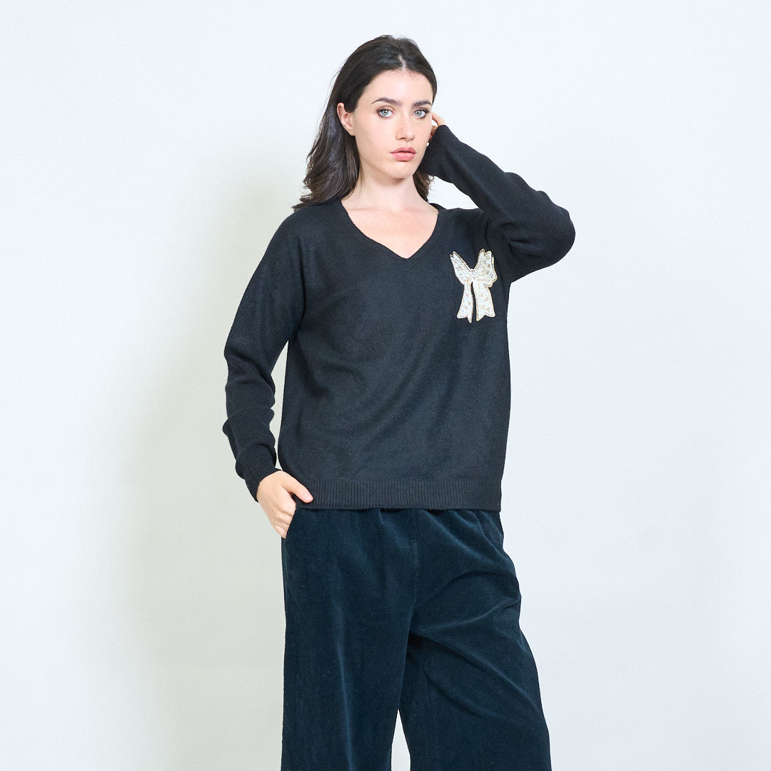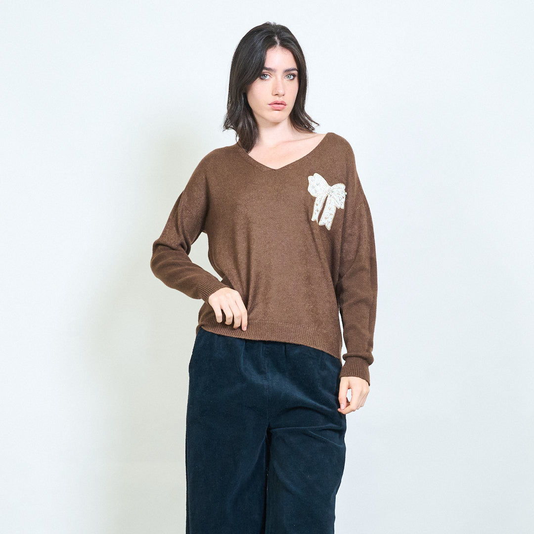 Lanko aplikacija siuvinėta V formos kaklo megztinis megztinis didmeninė prekyba
