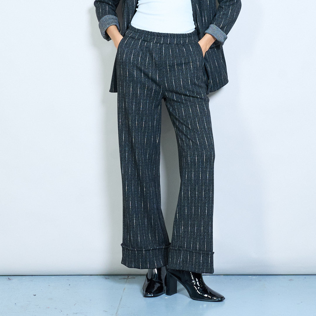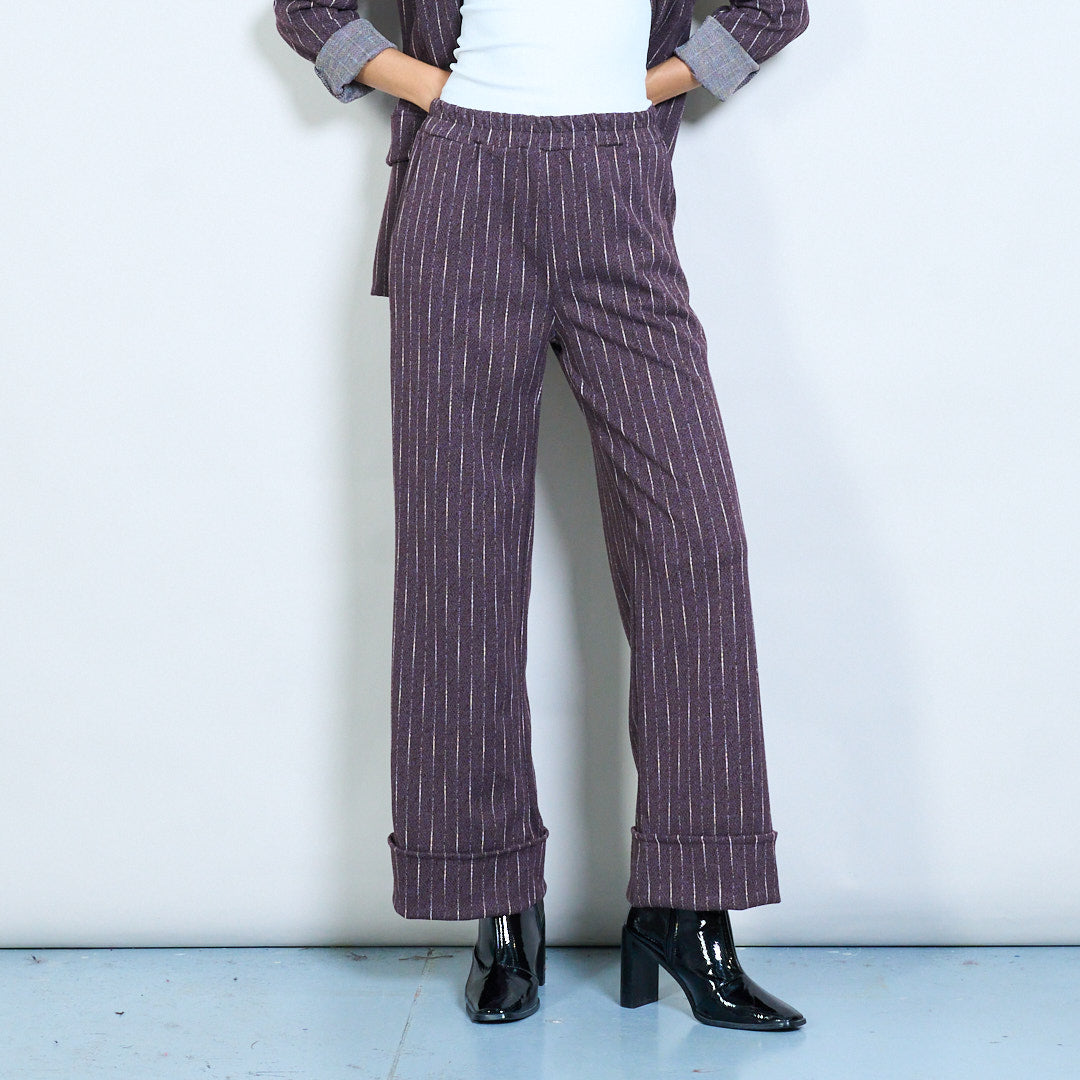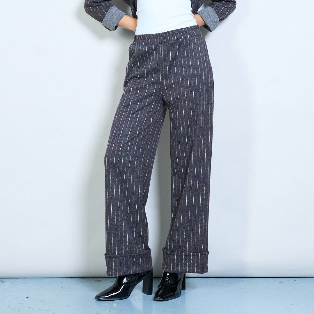 Vertikalios dryžuotos elastinės juosmens tiesių kojų kelnės didmeninė prekyba