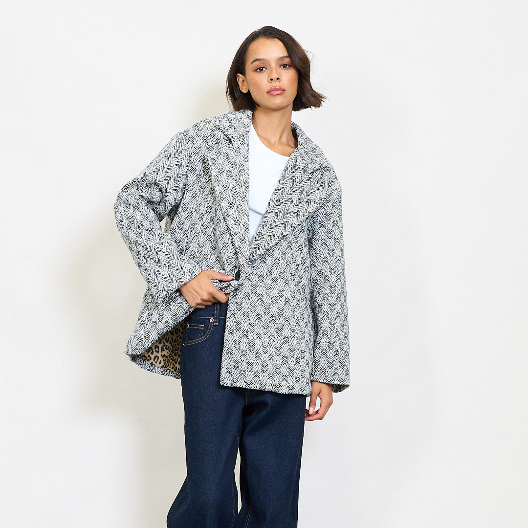 „Chevron Herringbone“ modelio švarkas su leopardo spausdinimo pamušalo didmenine prekyba