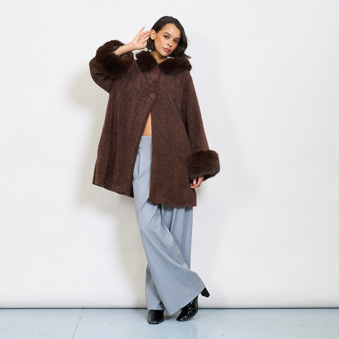 Dirbtinio kailio apykaklė ir rankogalių tekstūruotas vilnos lizdas didmeninė prekyba