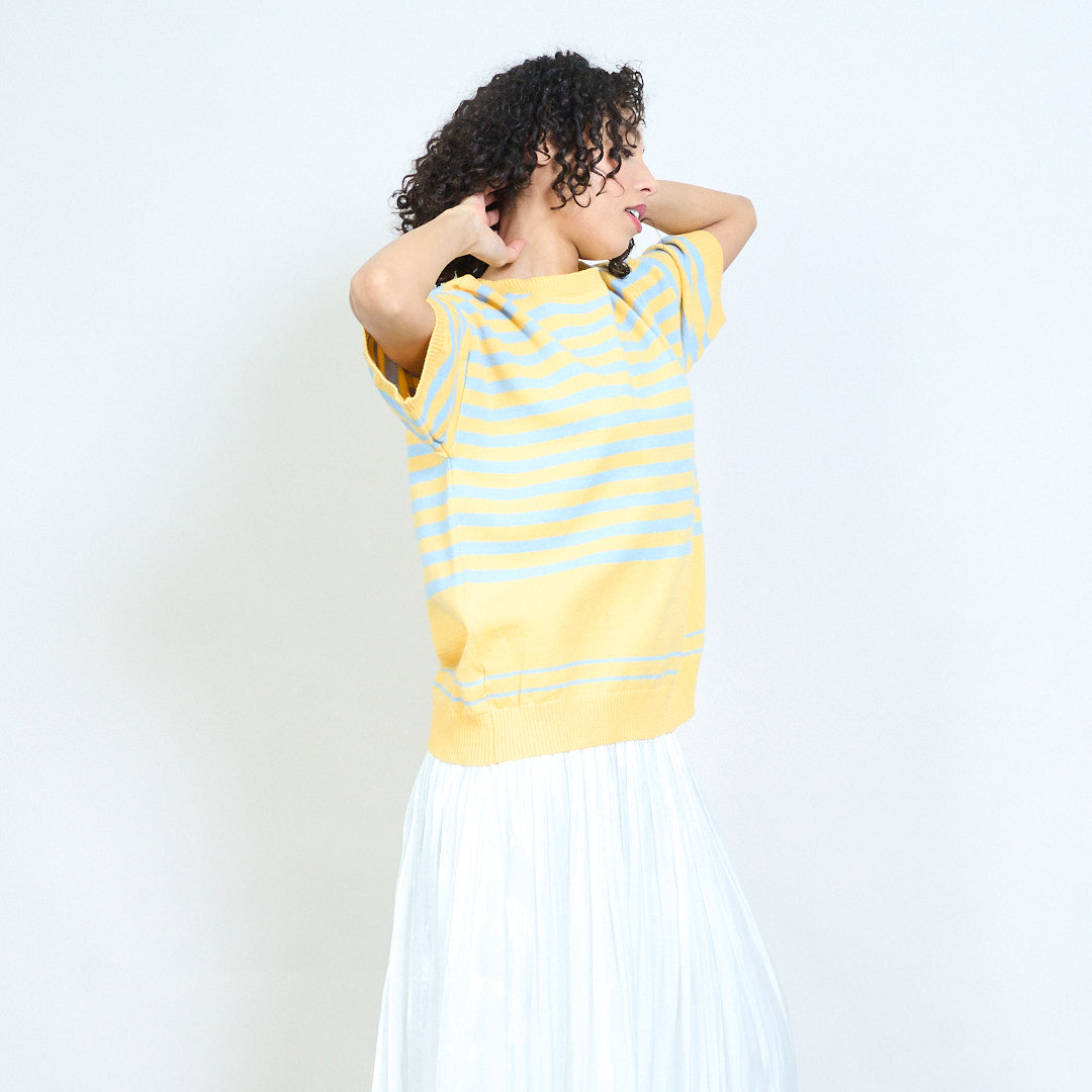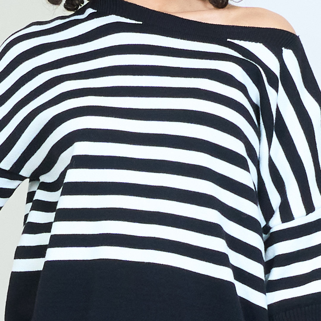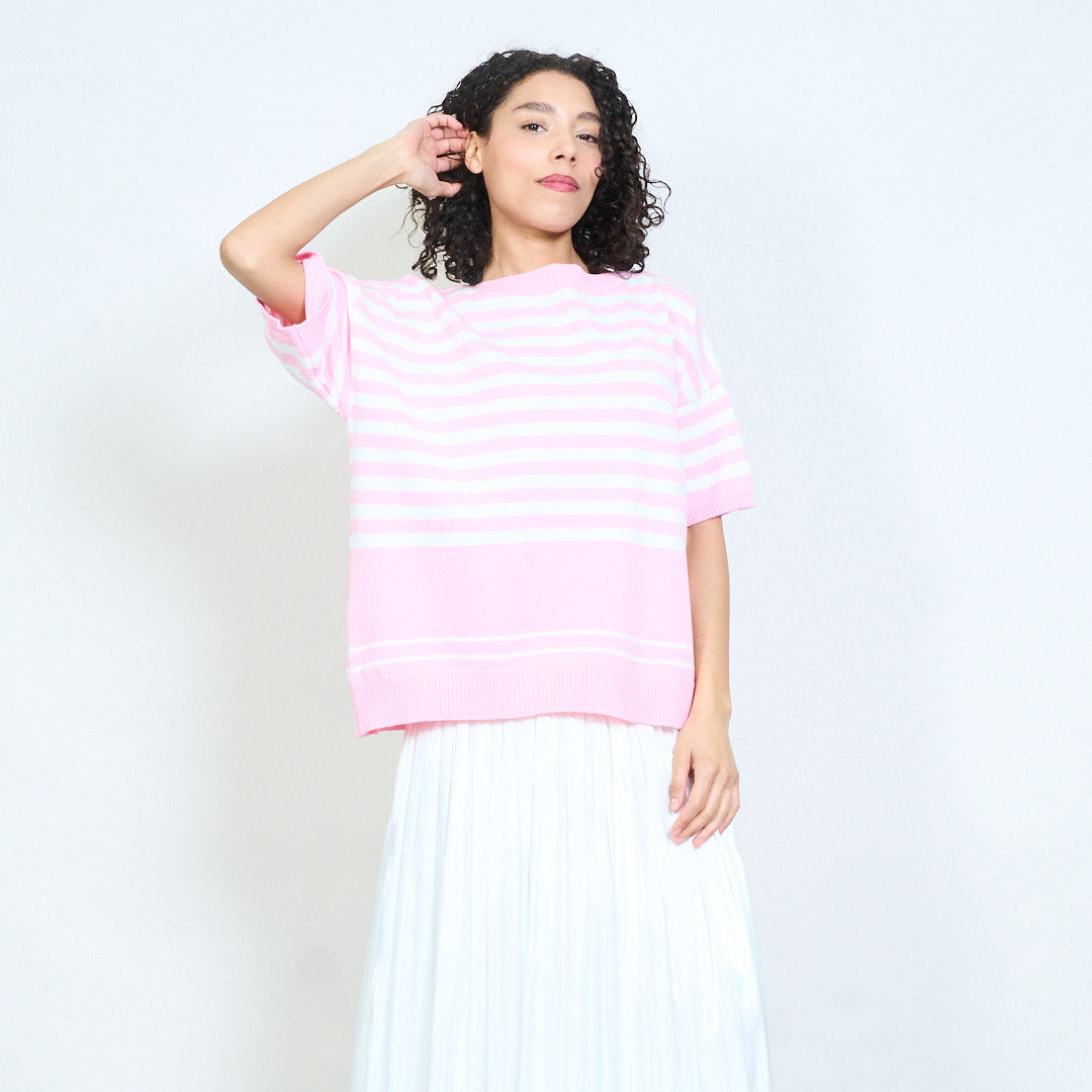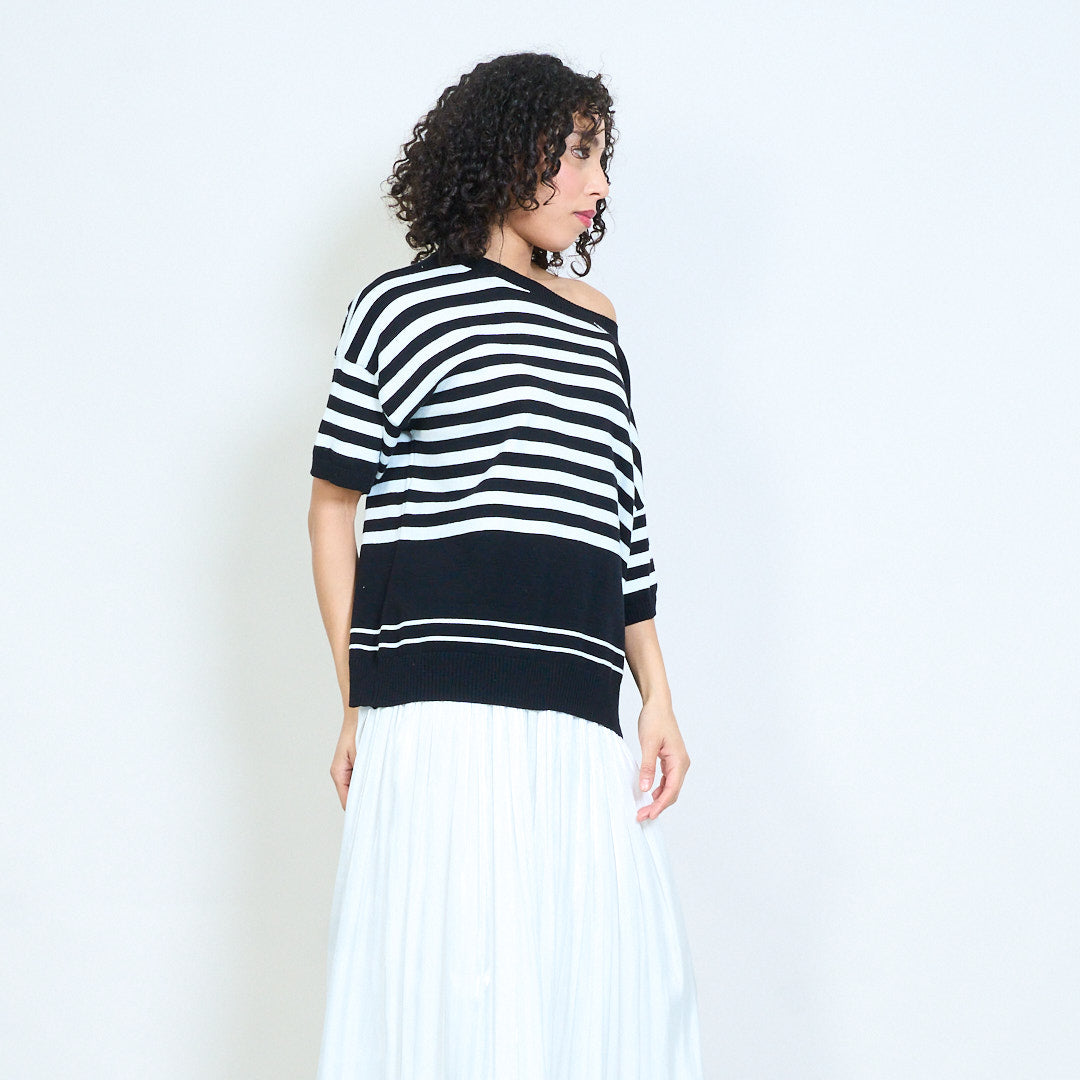 - Atpalaiduotas trikotažo viršus su klasikiniu horizontalių juostelių raštu