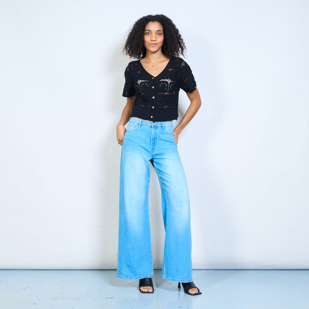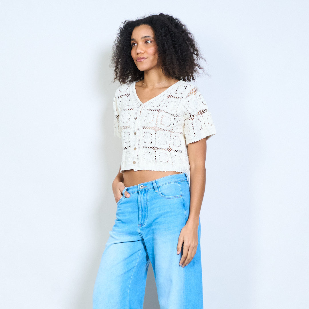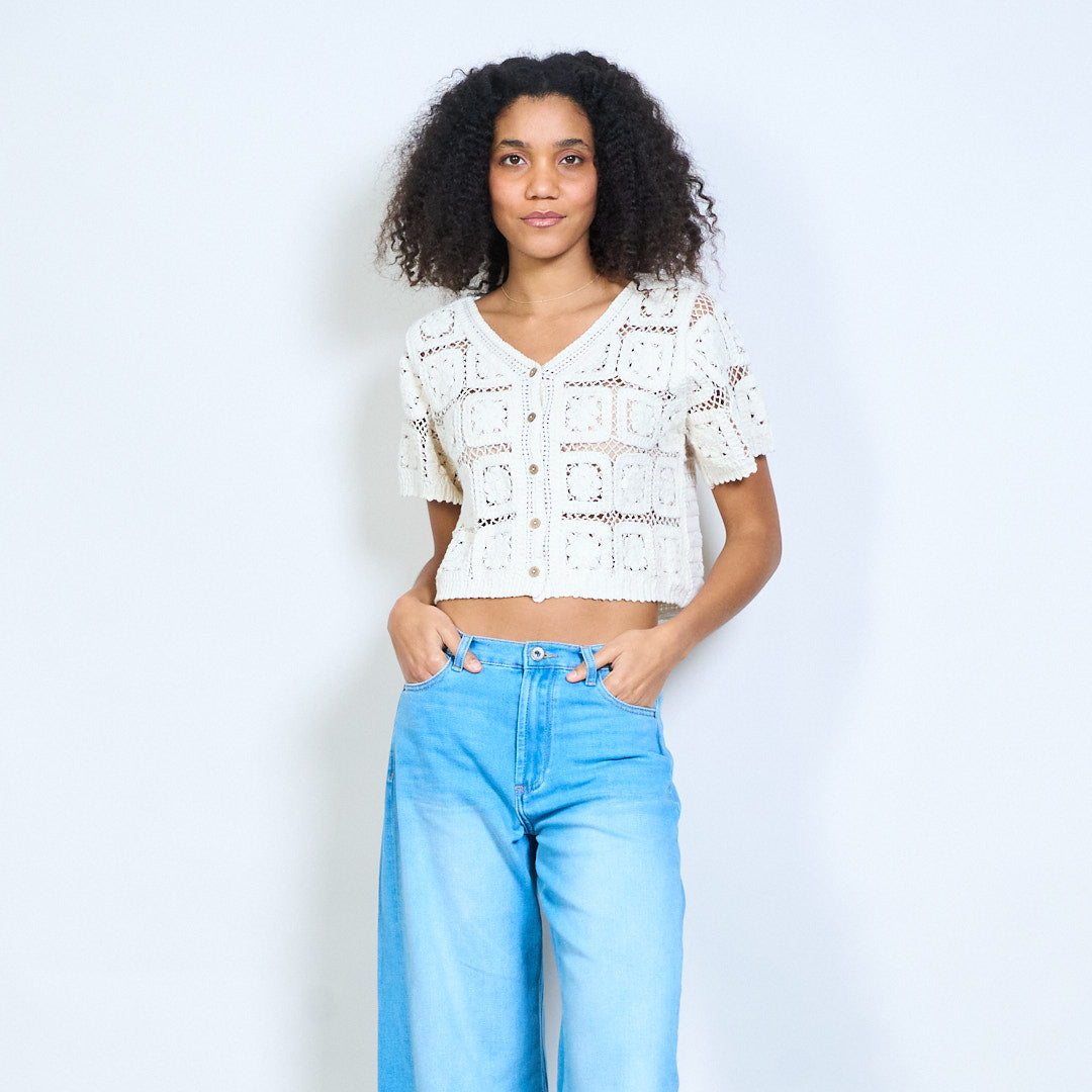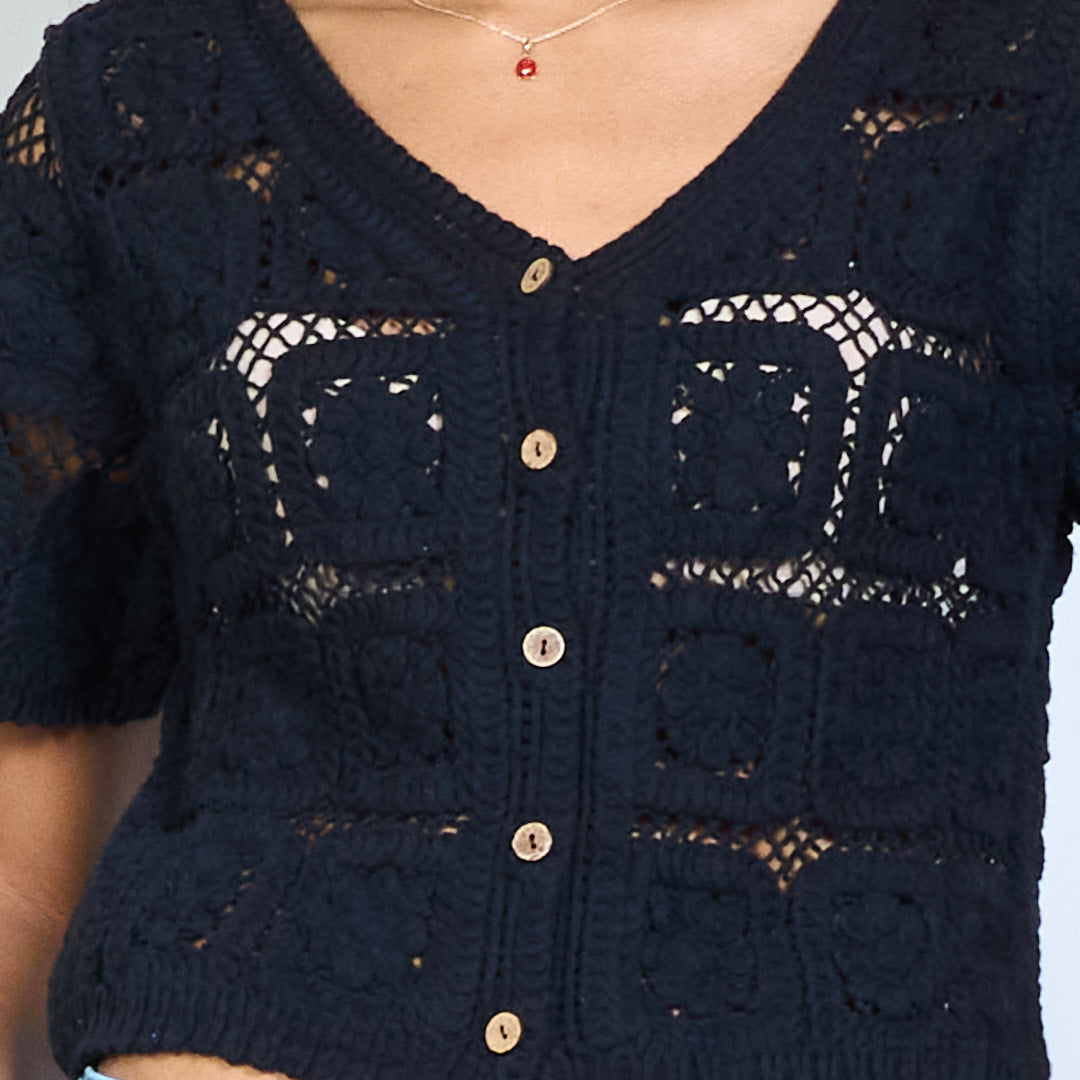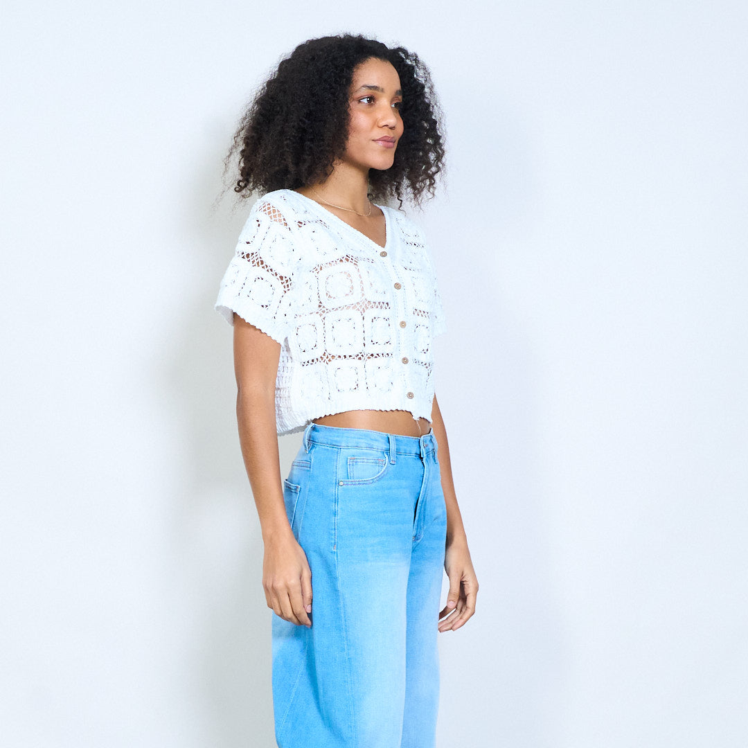 Geometriniai ažūriniai nerti trumpomis rankovėmis megztiniai didmeninė prekyba