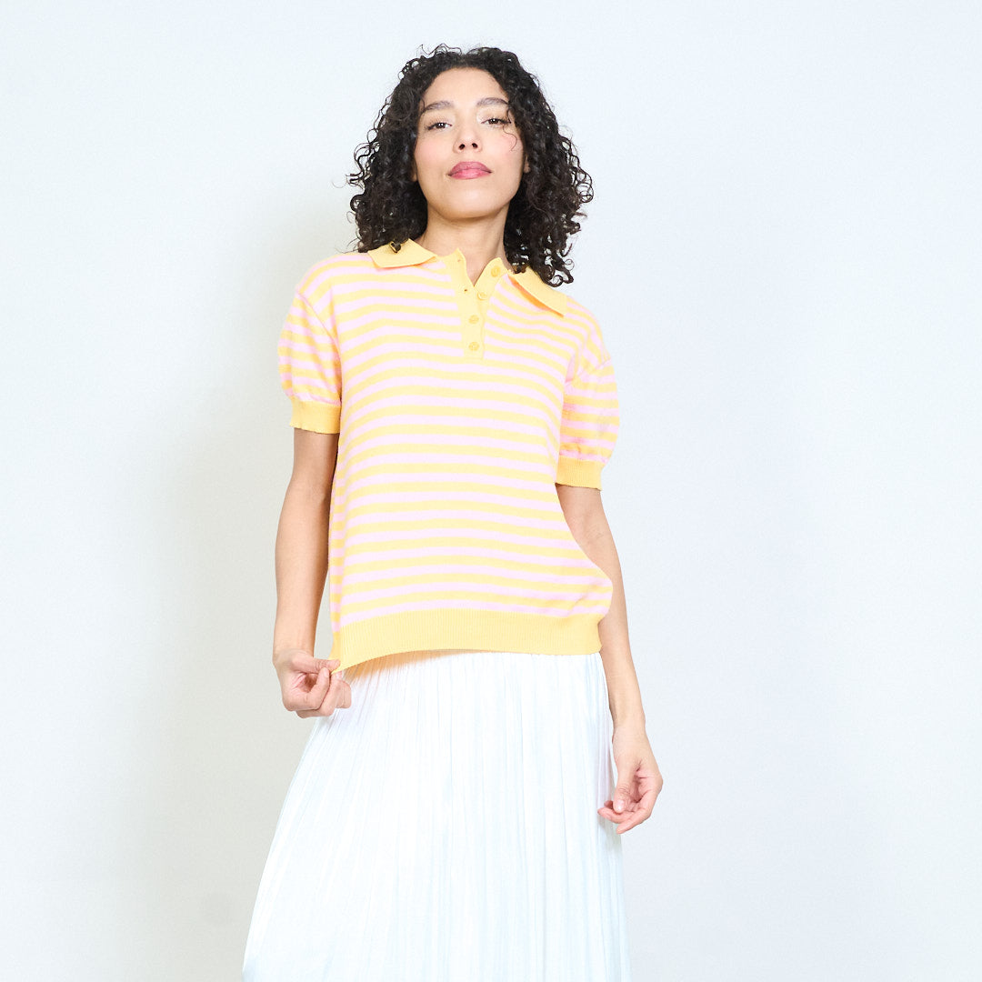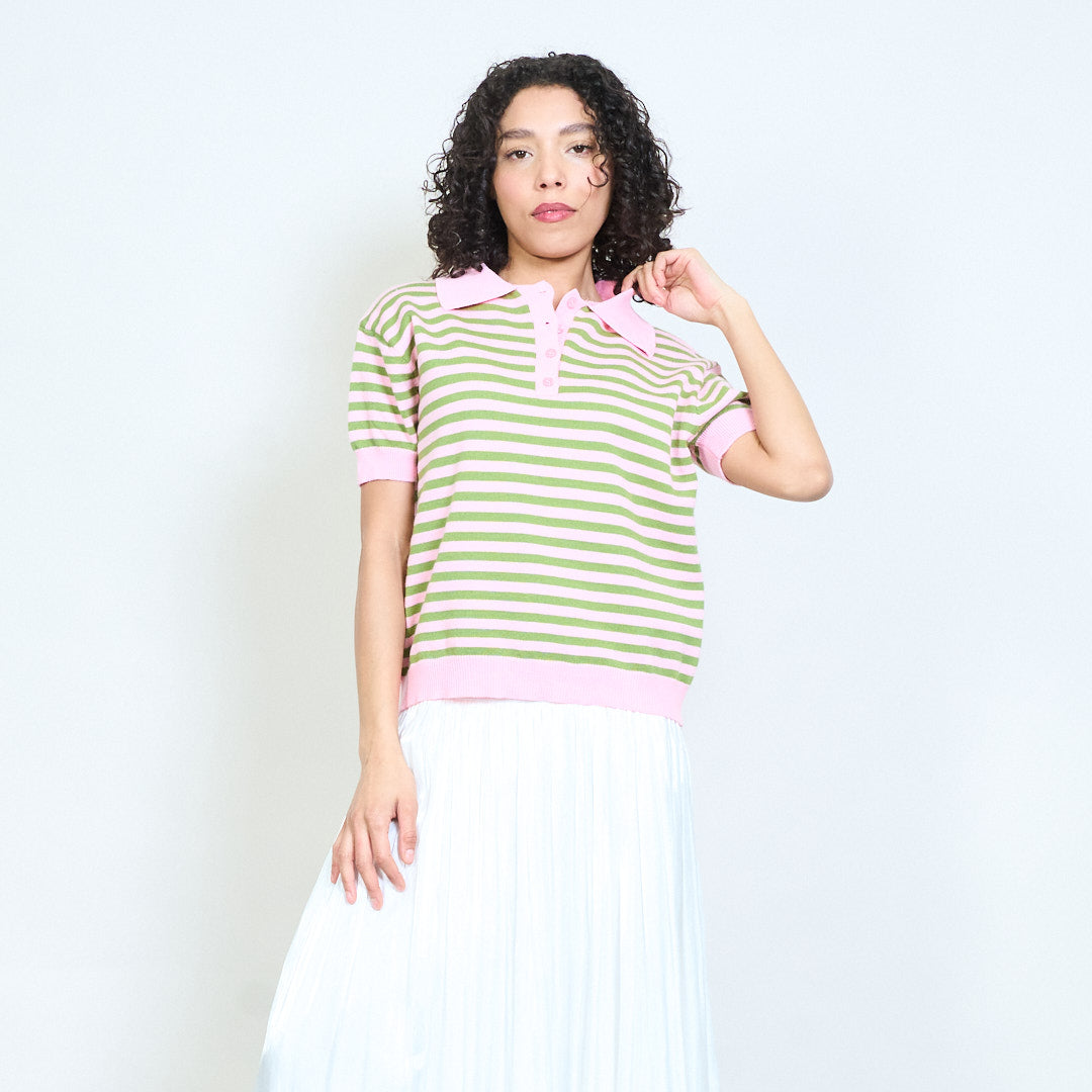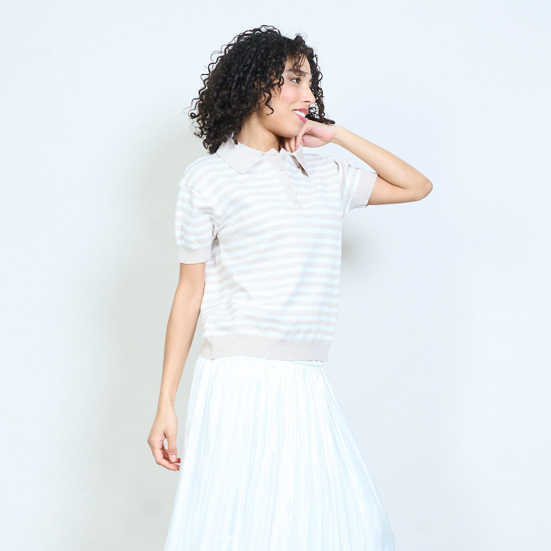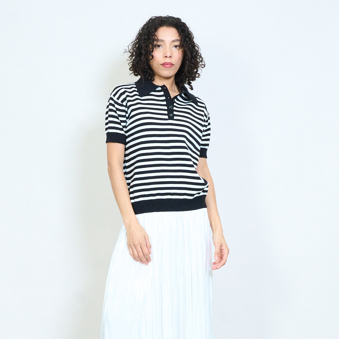 - Trikotažinis polo trikotažas trumpomis rankovėmis su klasikiniu horizontalių juostelių dizainu