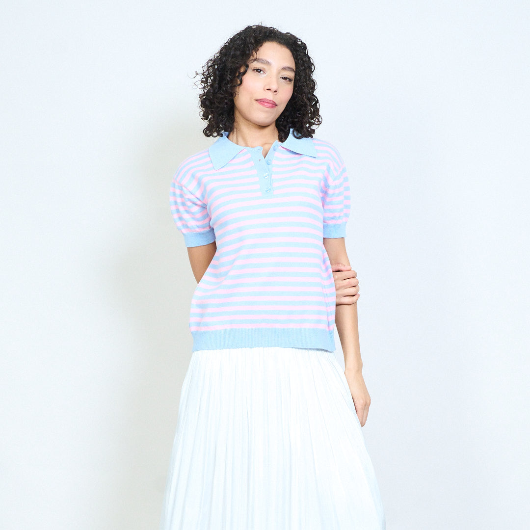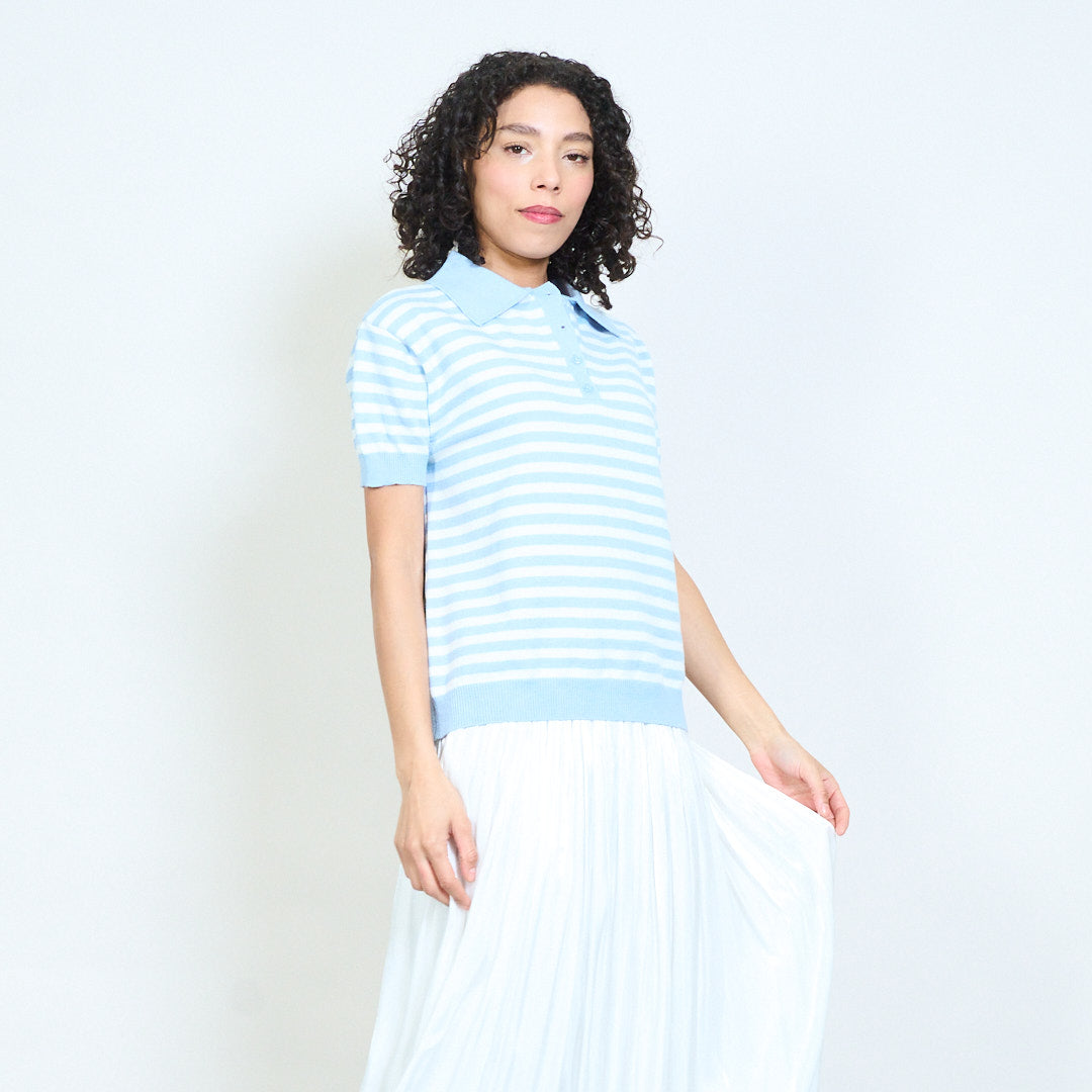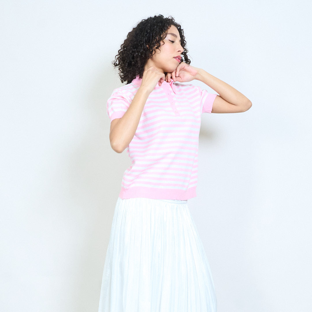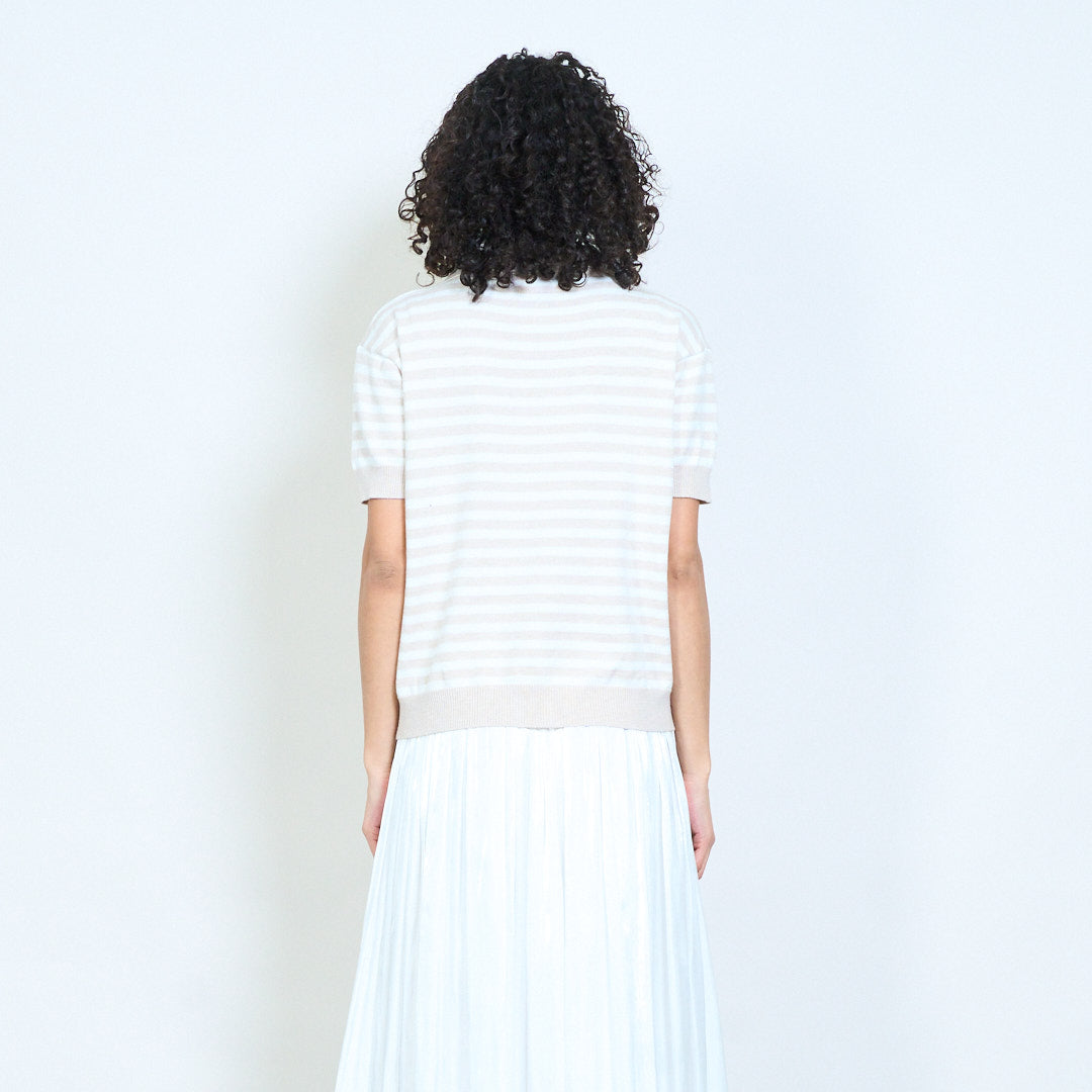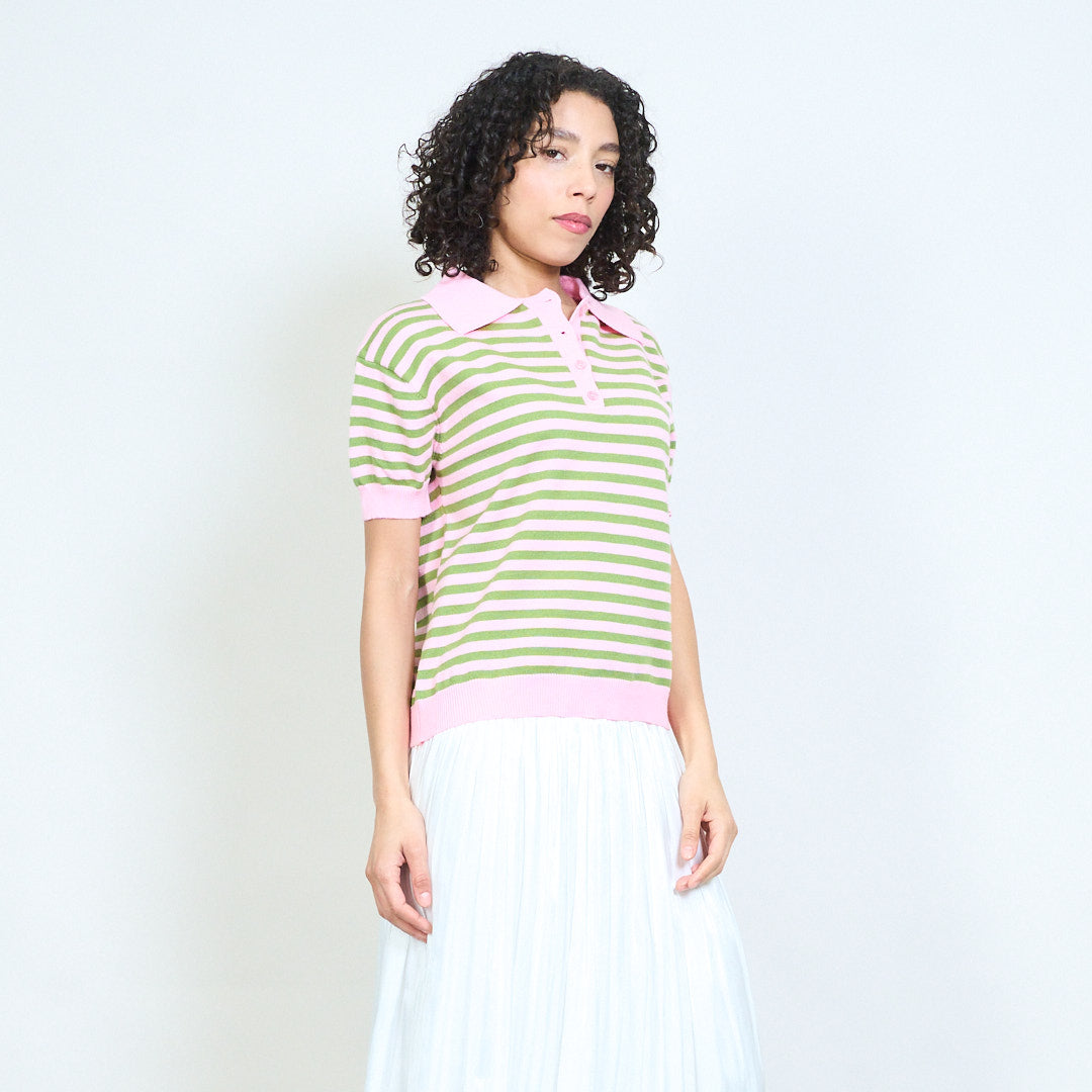 - Trikotažinis polo trikotažas trumpomis rankovėmis su klasikiniu horizontalių juostelių dizainu