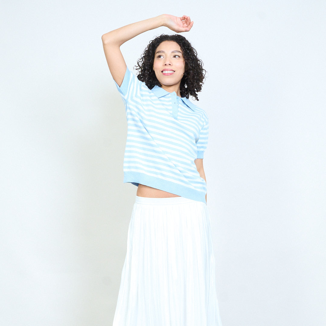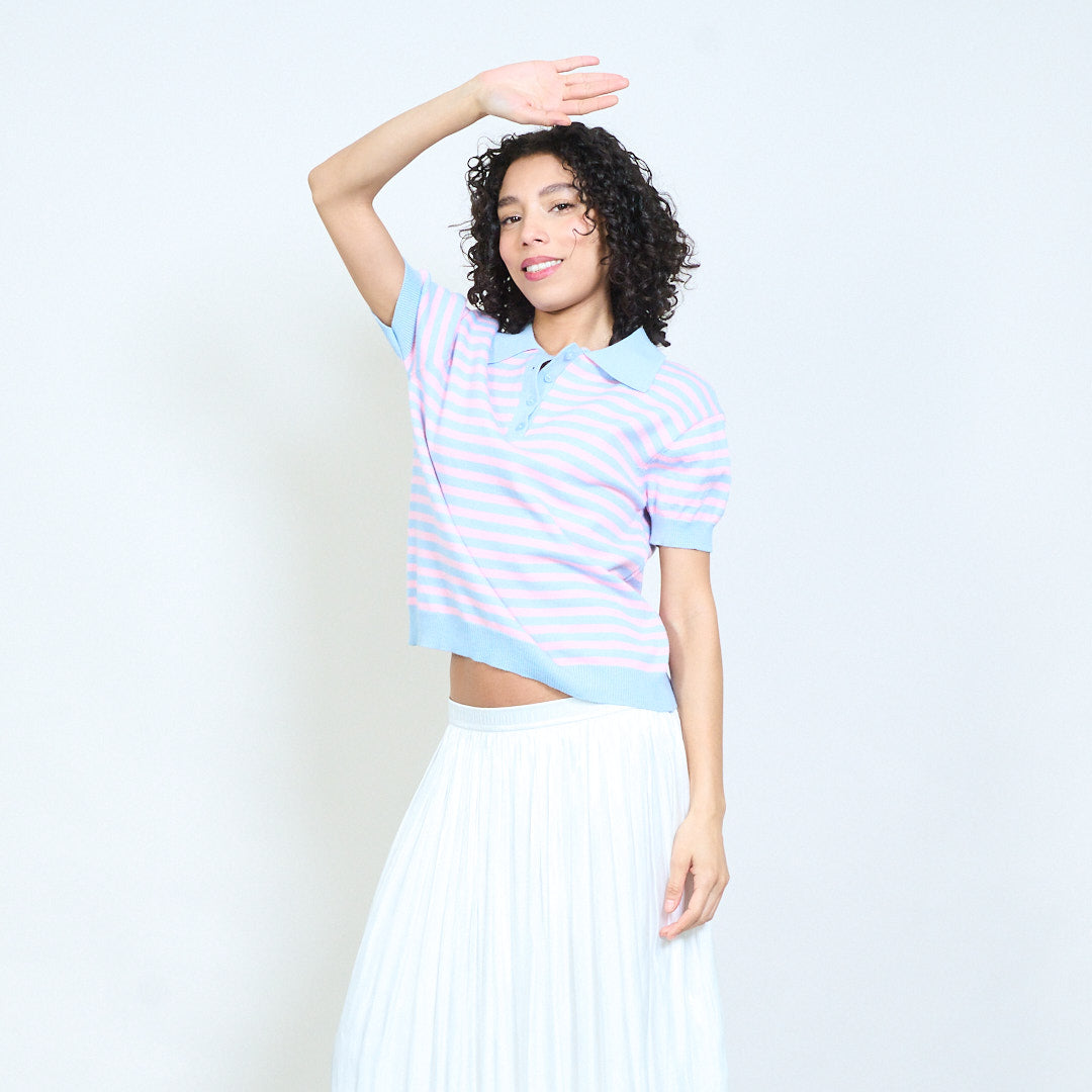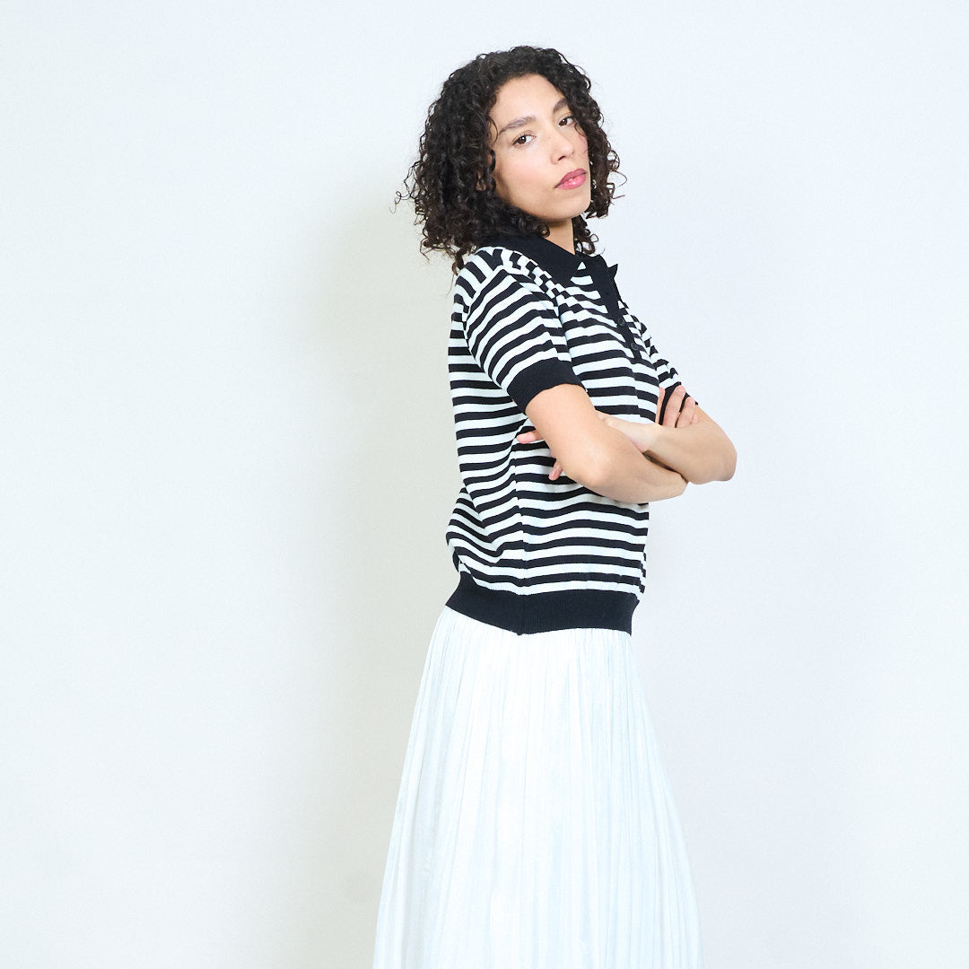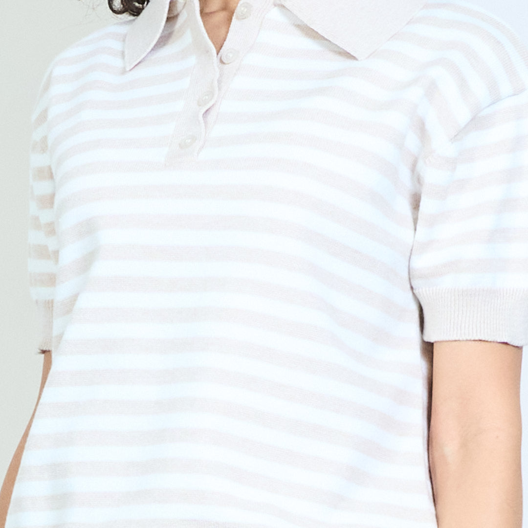 - Trikotažinis polo trikotažas trumpomis rankovėmis su klasikiniu horizontalių juostelių dizainu