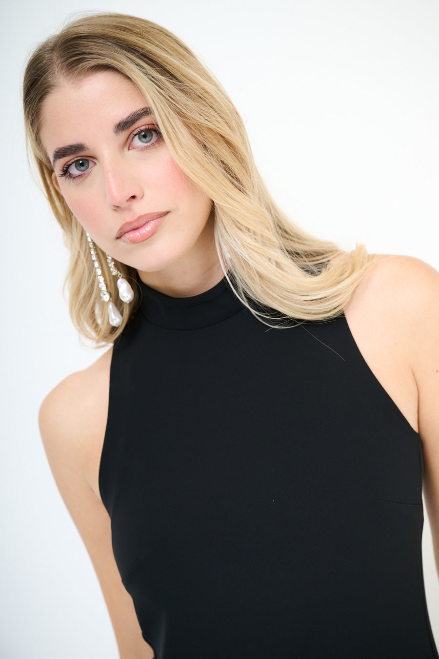 • Elegantiška mini suknelė be rankovių su aptakiomis siluetu
