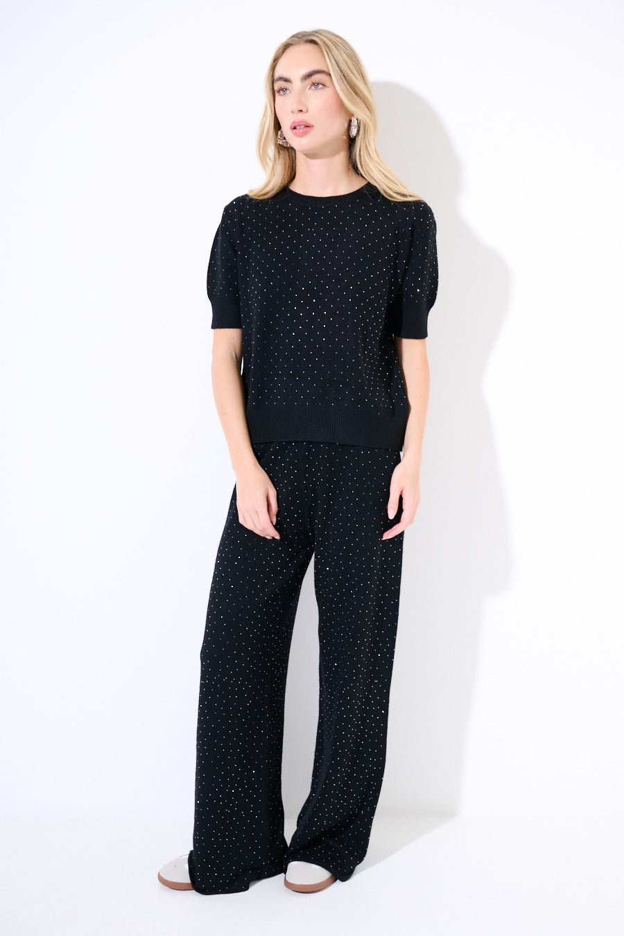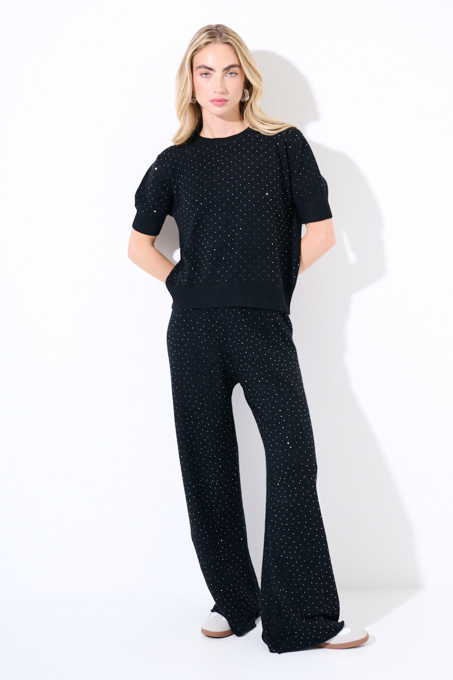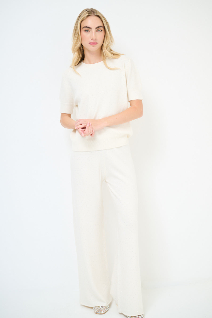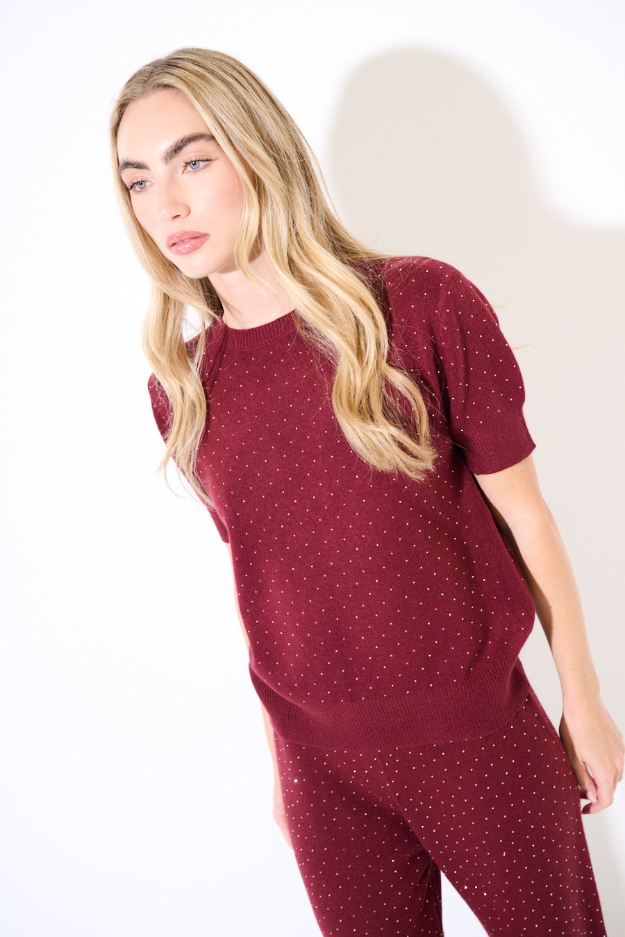 • Klasikinis trumpų rankovių megztas viršus su šiuolaikišku vingiu
