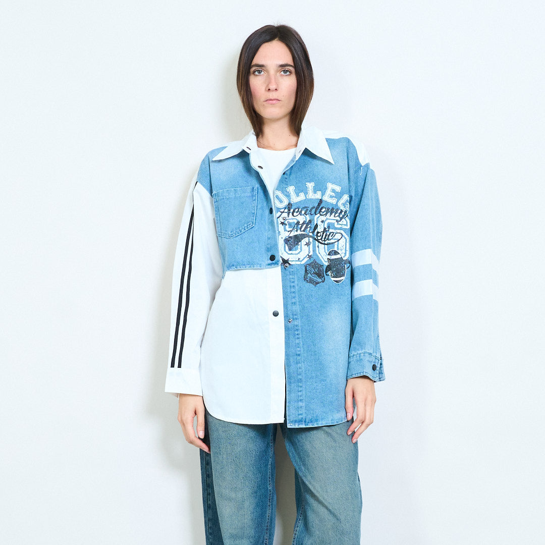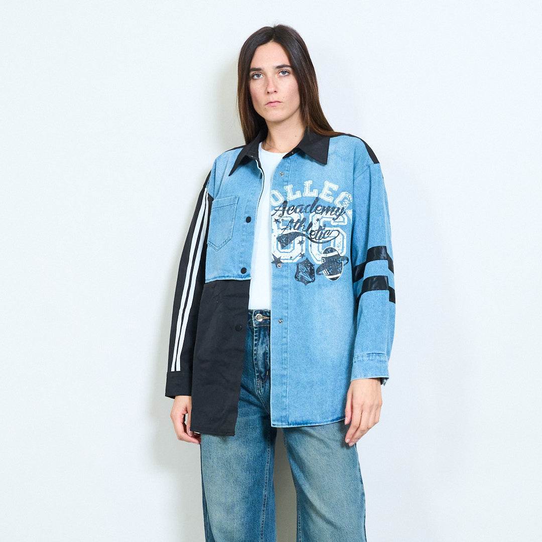 Kolegialus grafinis pataisa džinsinis švarkas didmeninė prekyba