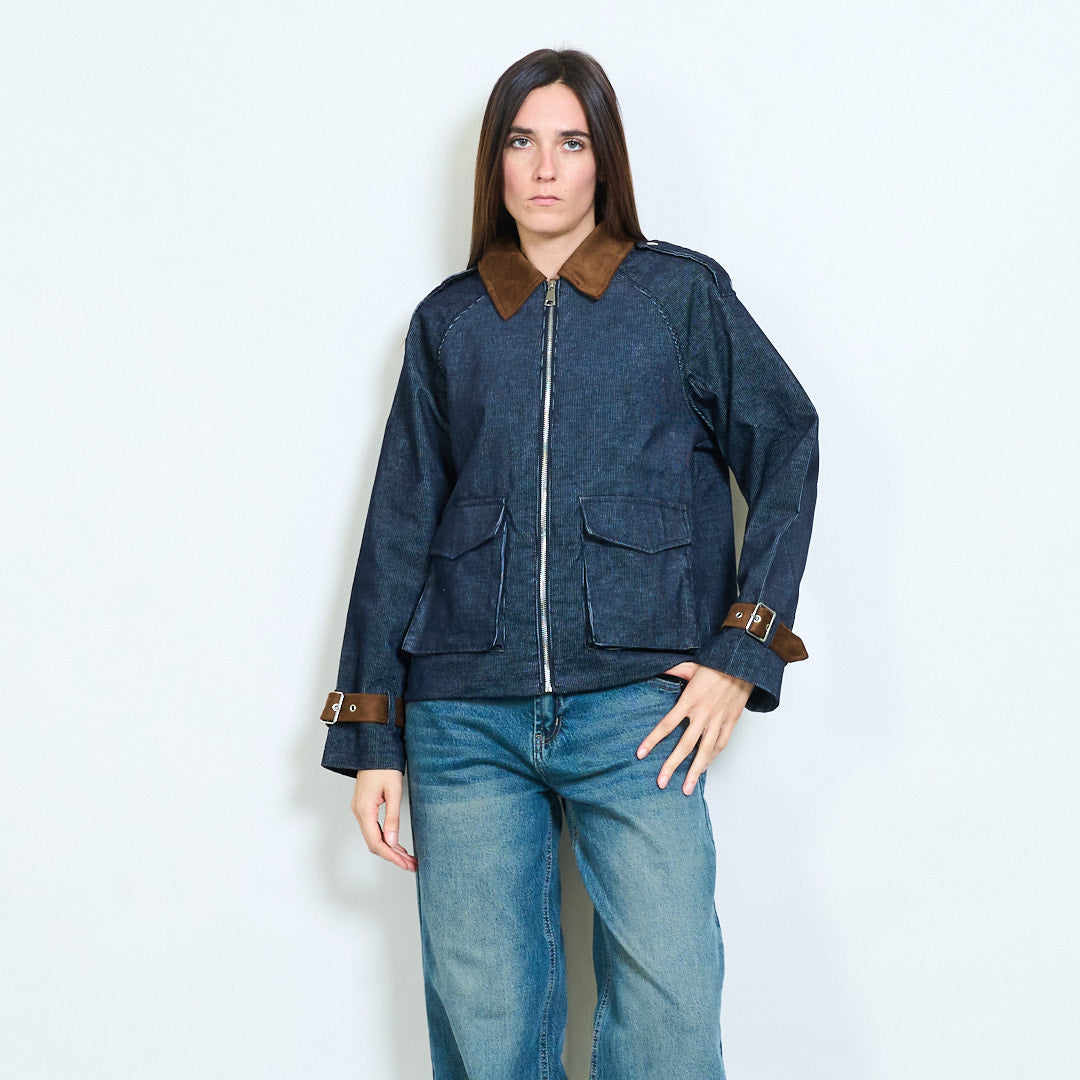 Kontrastinė apykaklė ir rankogalių naudingumas džinsinis striukė didmeninė prekyba