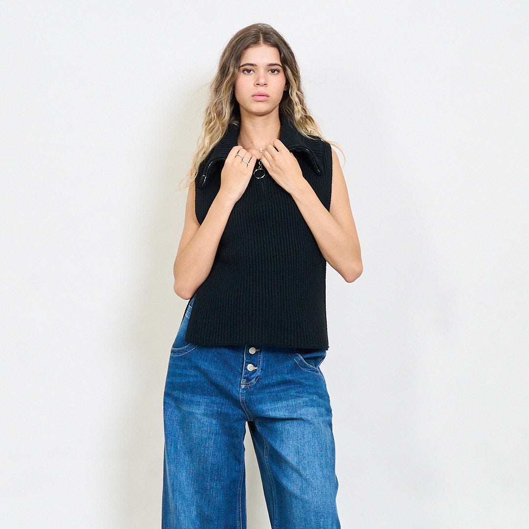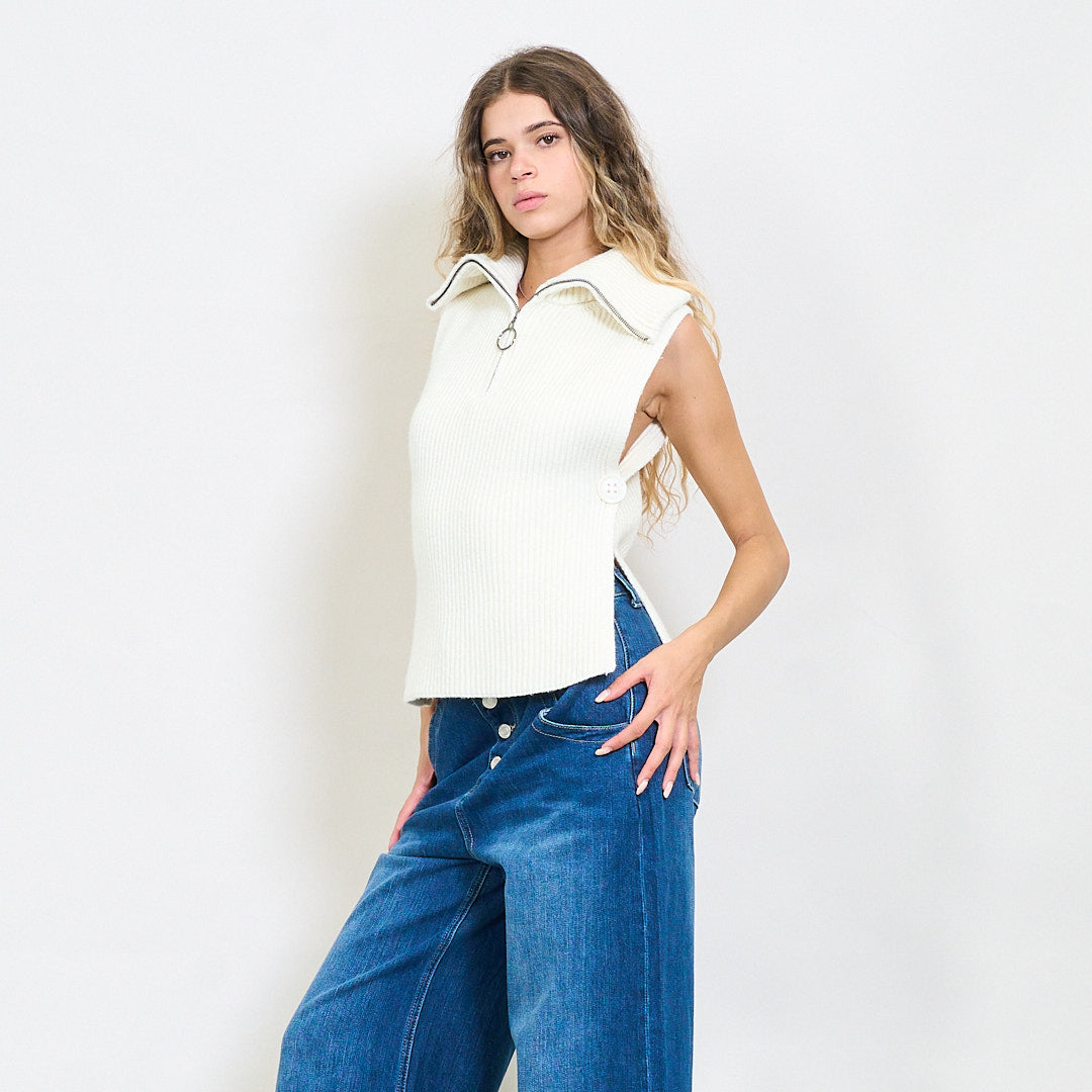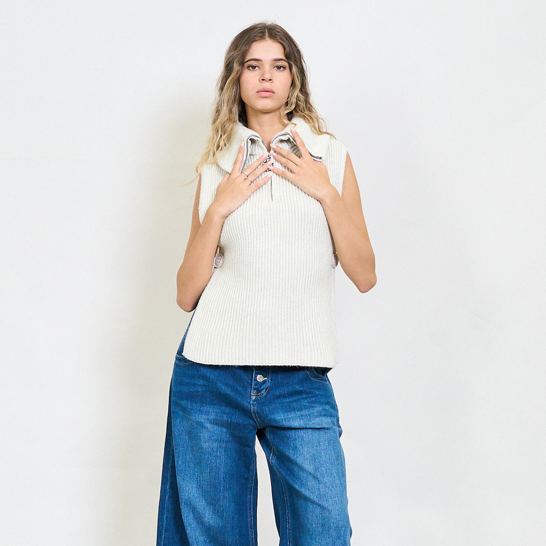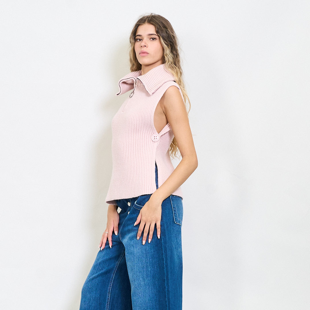 Briaunotas be rankovių užtrauktuko megztas viršus su šoniniais plyšiais didmenine prekyba