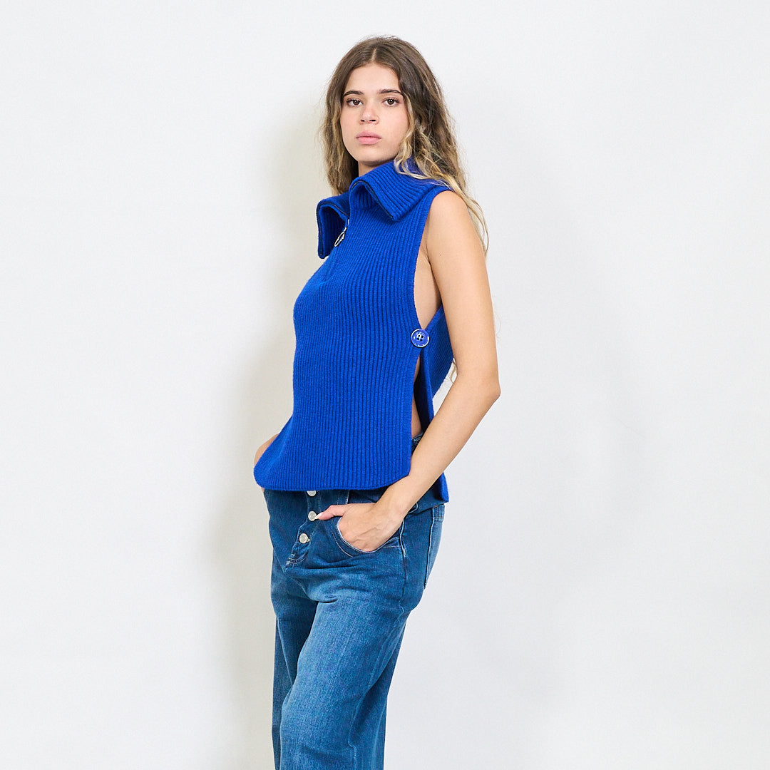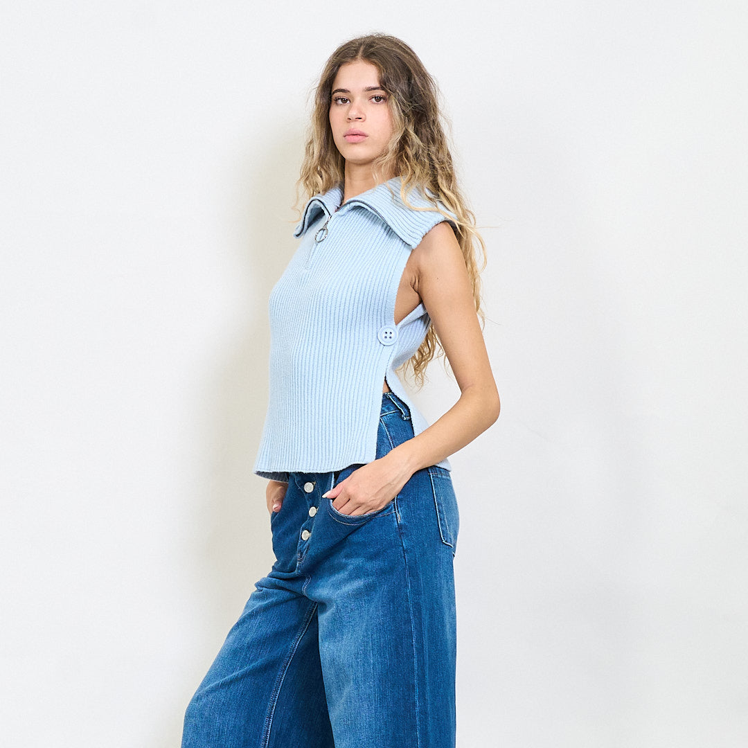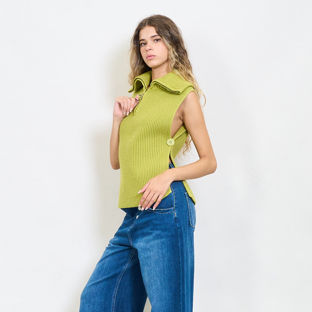 Briaunotas be rankovių užtrauktuko megztas viršus su šoniniais plyšiais didmenine prekyba