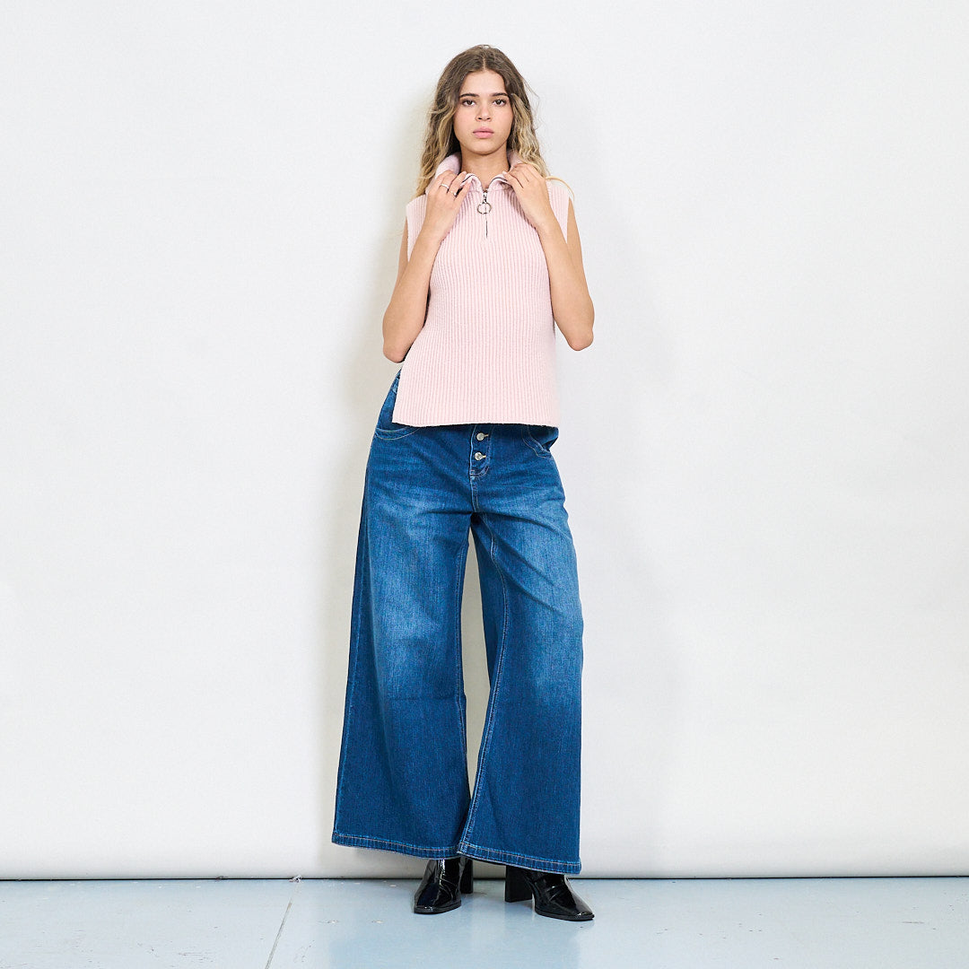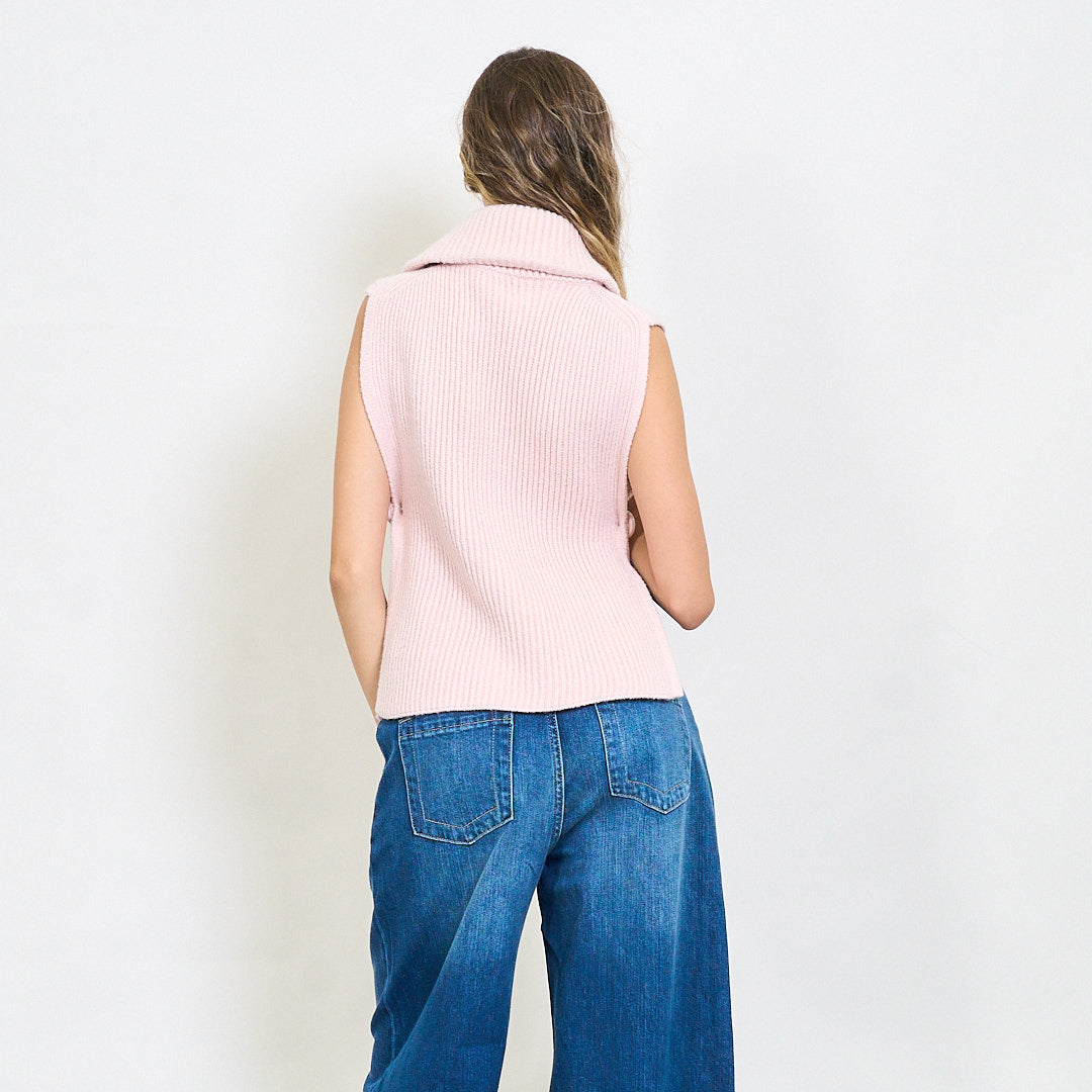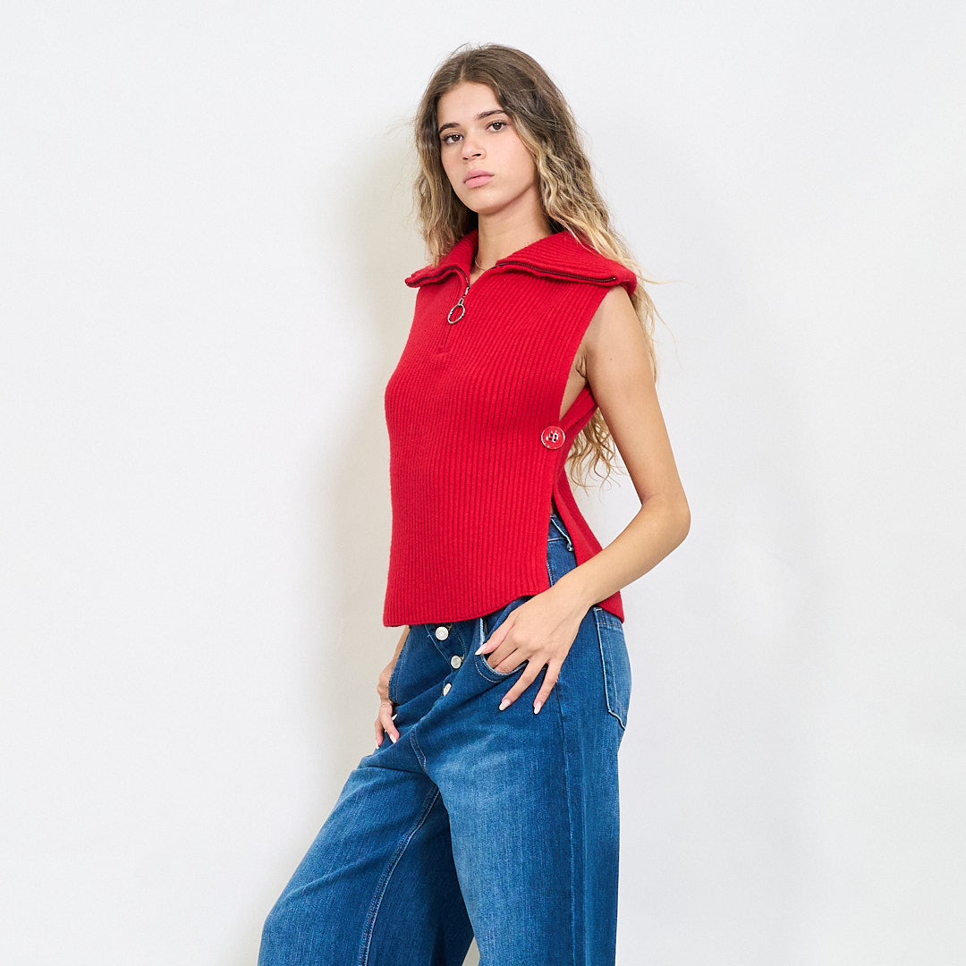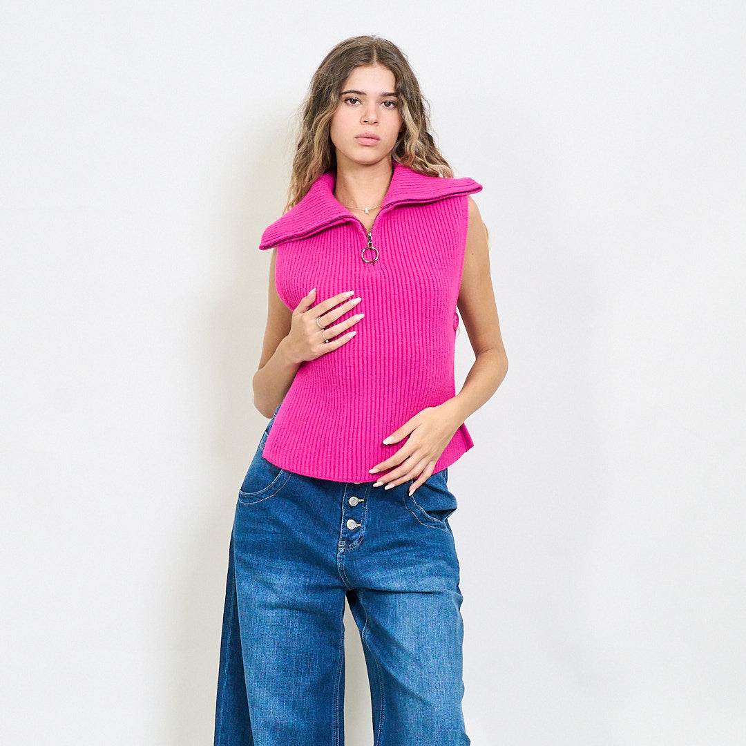 Briaunotas be rankovių užtrauktuko megztas viršus su šoniniais plyšiais didmenine prekyba