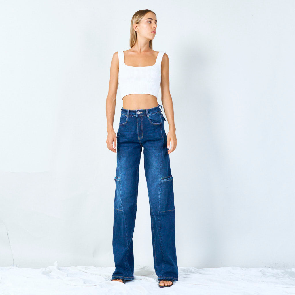 Relaksēti fit džinsi ar ceļgala detaļu vairumtirdzniecību