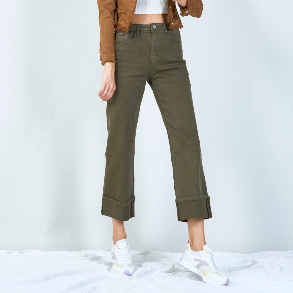 Šiks bikses ar augstu jostasvietu ar aprocētu apakšmalu vairumtirdzniecībā