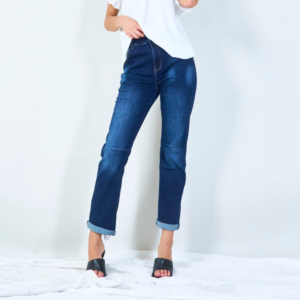 Slim fiten džinsa džinsi ar ceļgala valdziņa detaļu vairumtirdzniecību