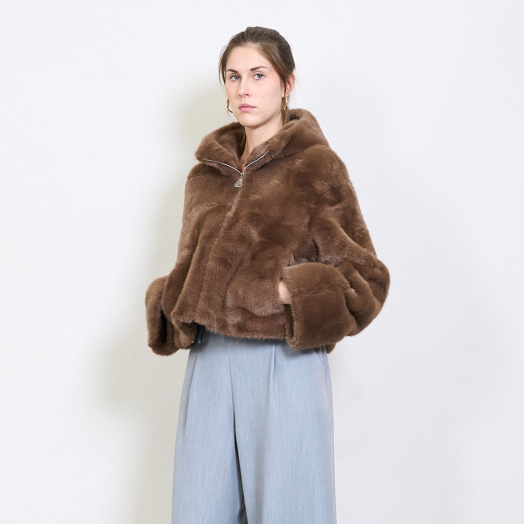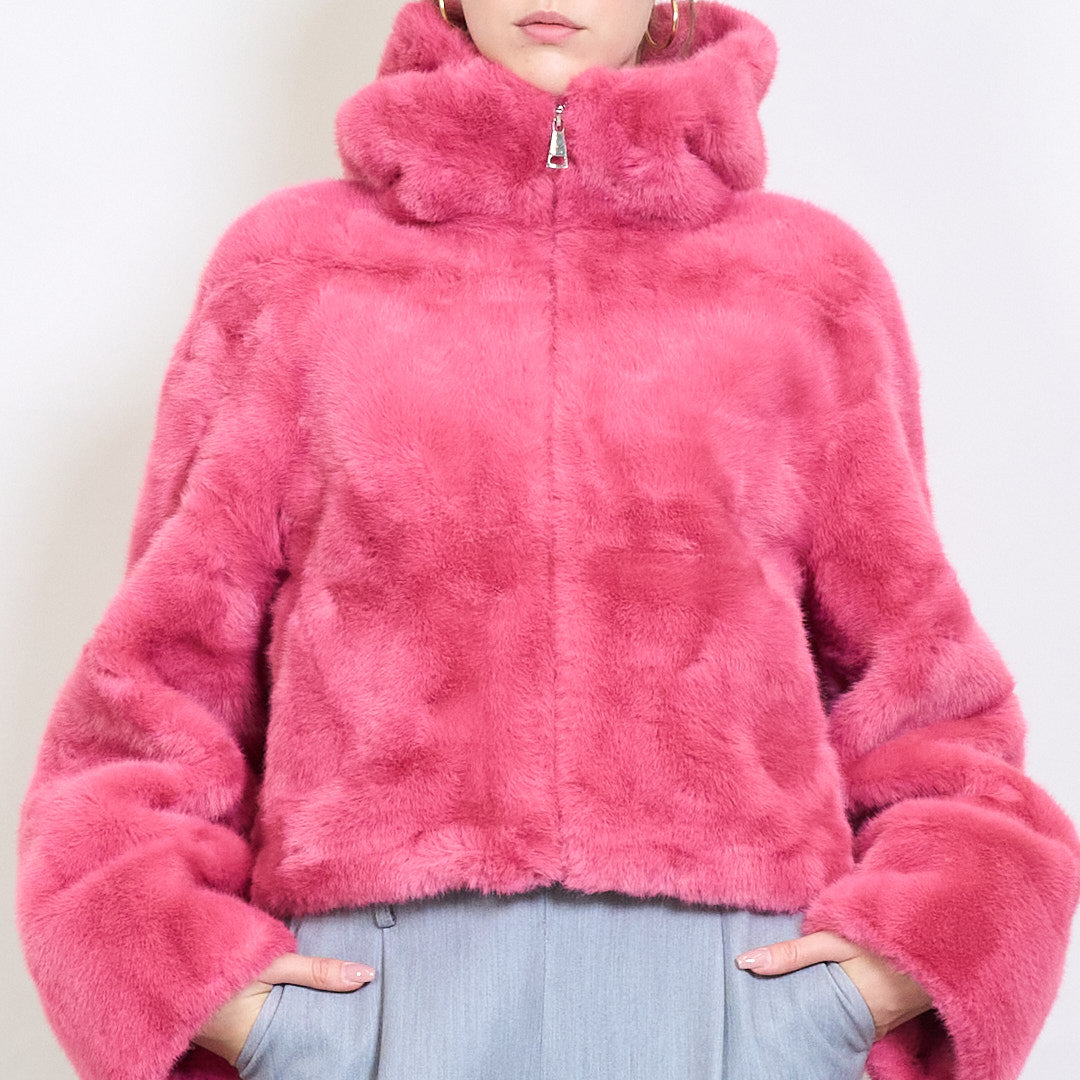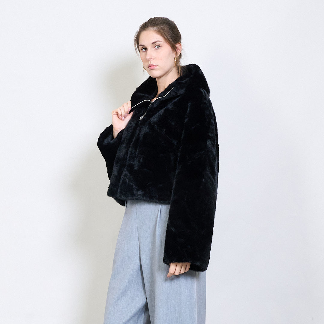 - Mīkstā mākslīgā kažokāda ar strukturētu apkakli un rāvējslēdzēju