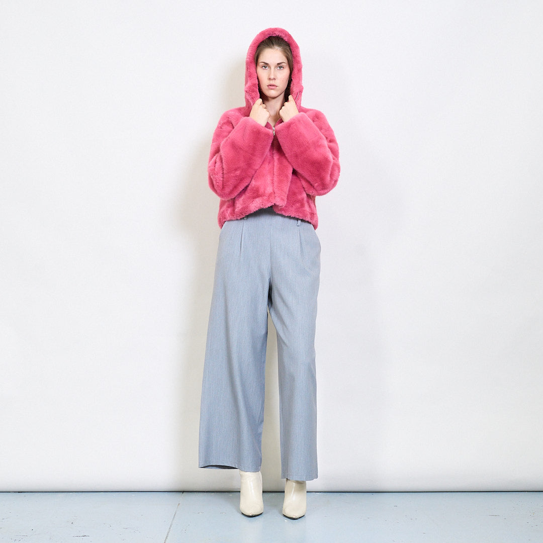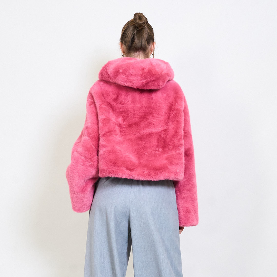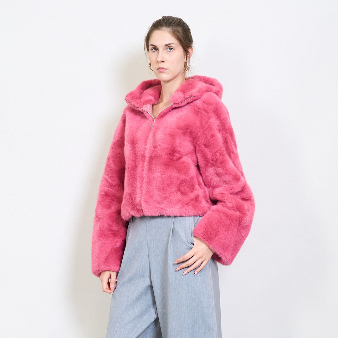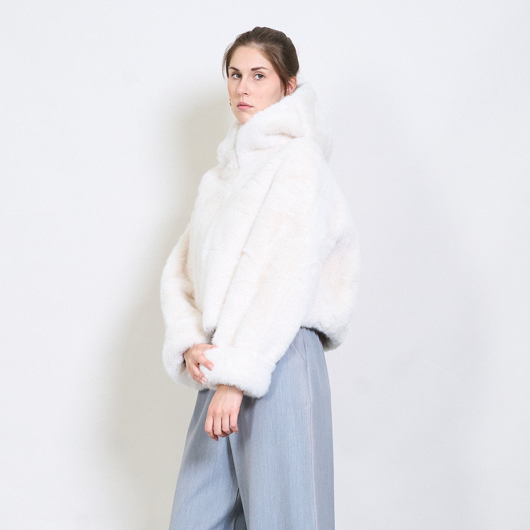 - Mīkstā mākslīgā kažokāda ar strukturētu apkakli un rāvējslēdzēju