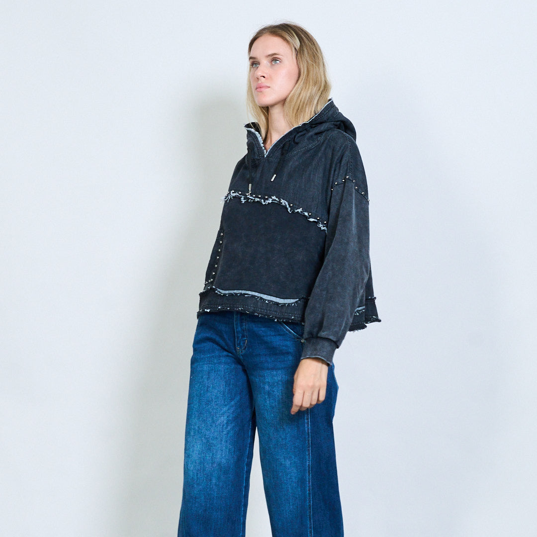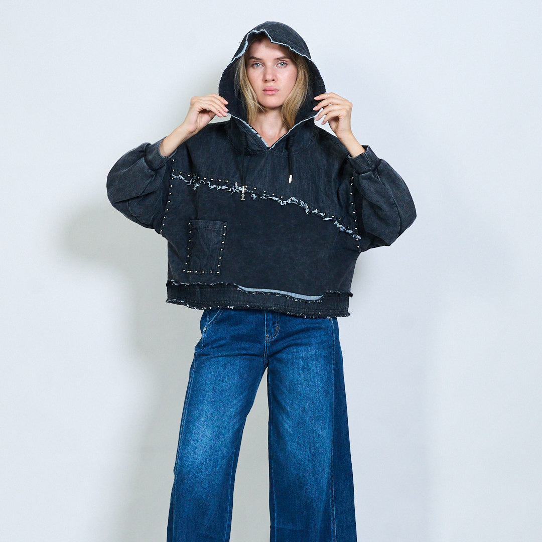 - Lielizmēra kapuci ar atvieglotu, ielu apģērbu iedvesmotu fit