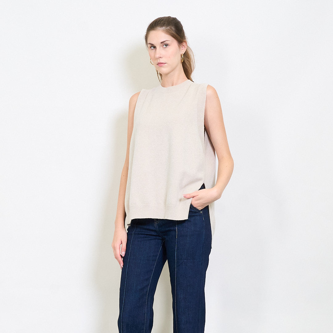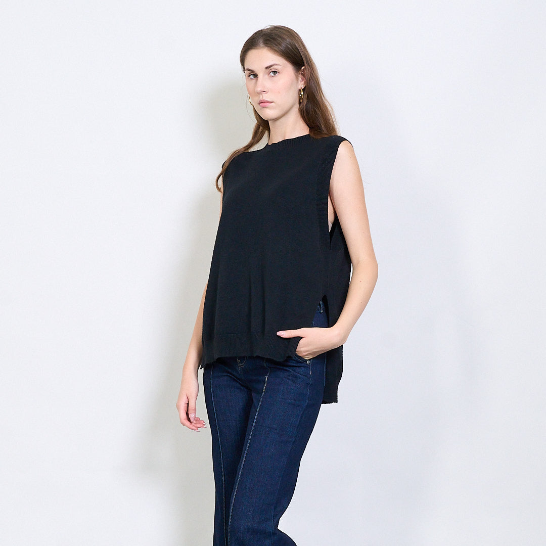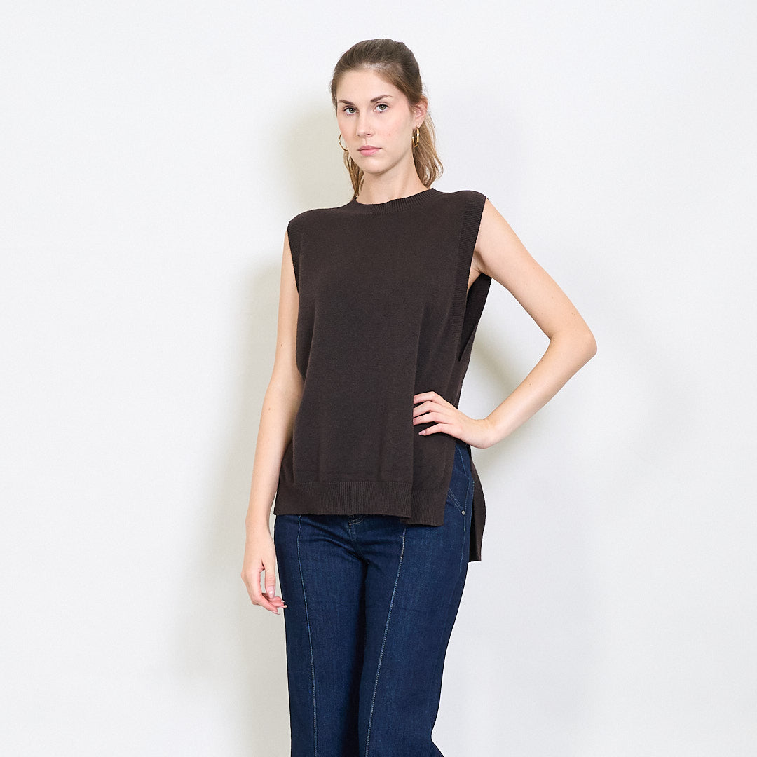 Bez piedurknēm rievota apdares adīta veste ar sānu spraugas detaļu vairumtirdzniecību
