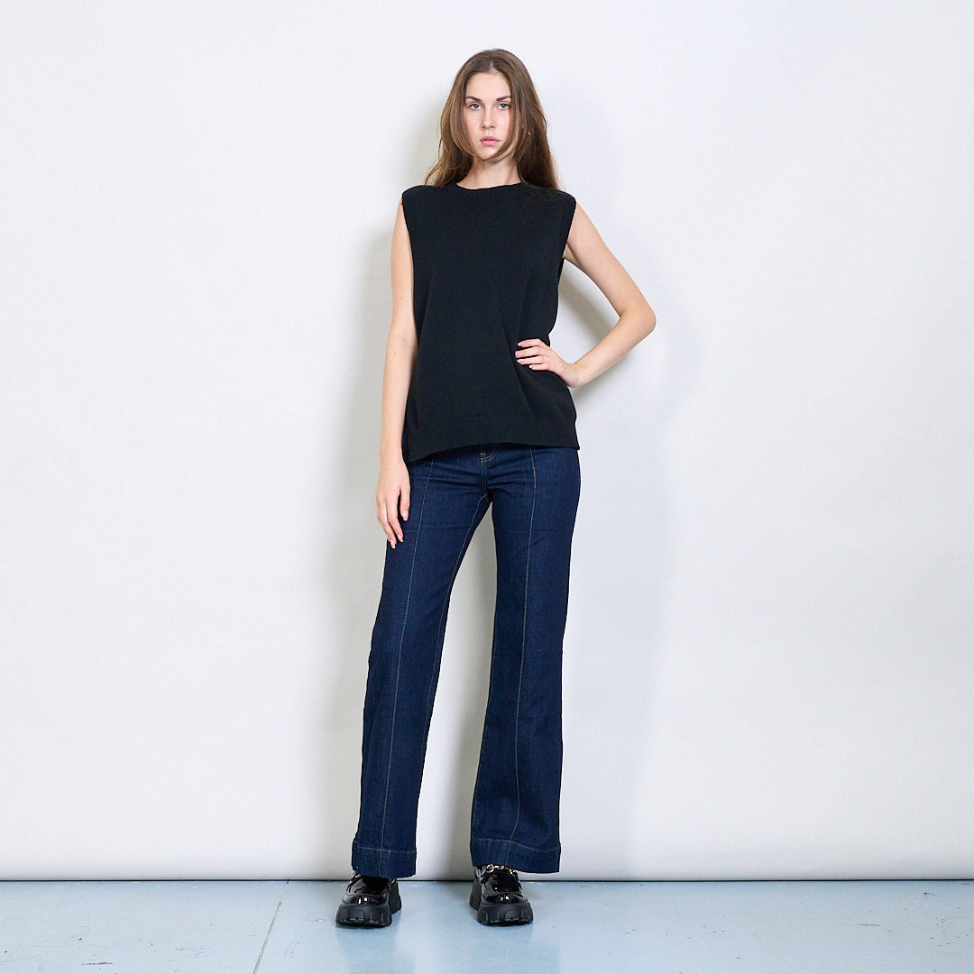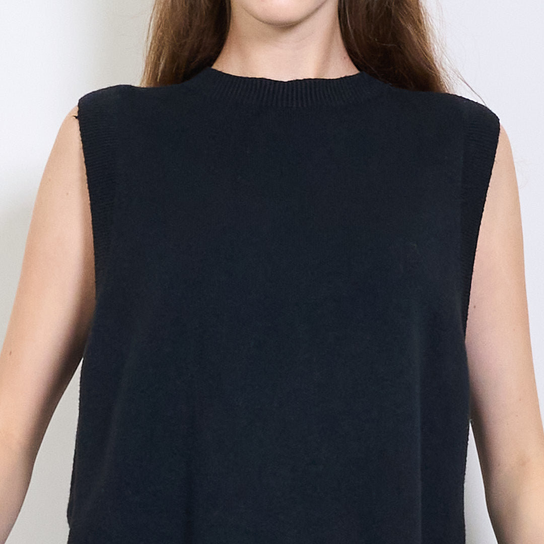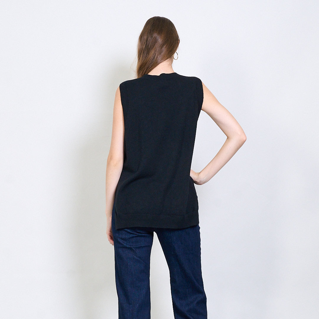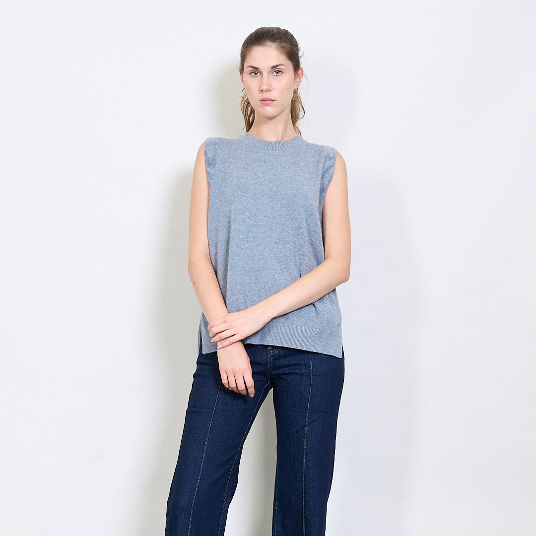 Bez piedurknēm rievota apdares adīta veste ar sānu spraugas detaļu vairumtirdzniecību