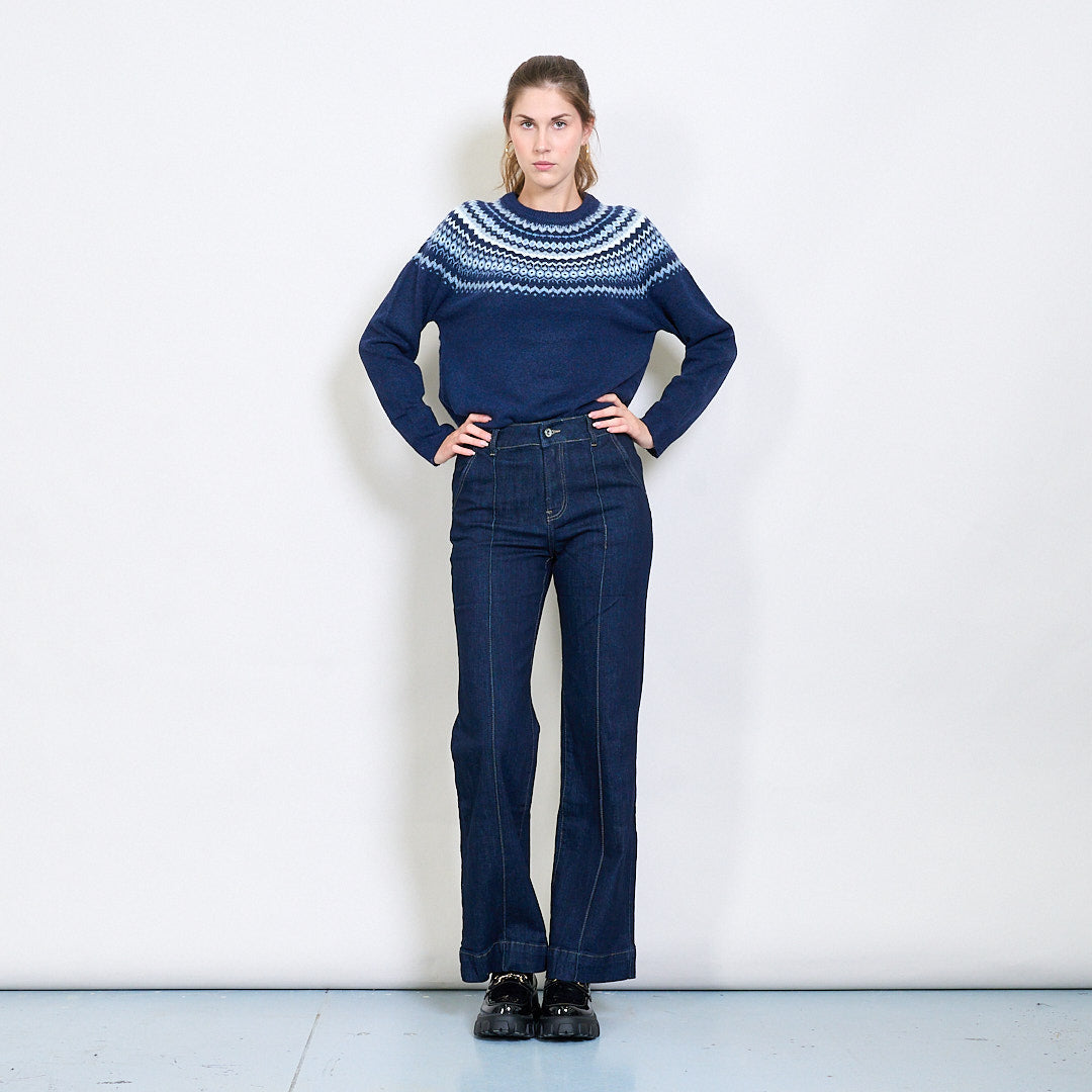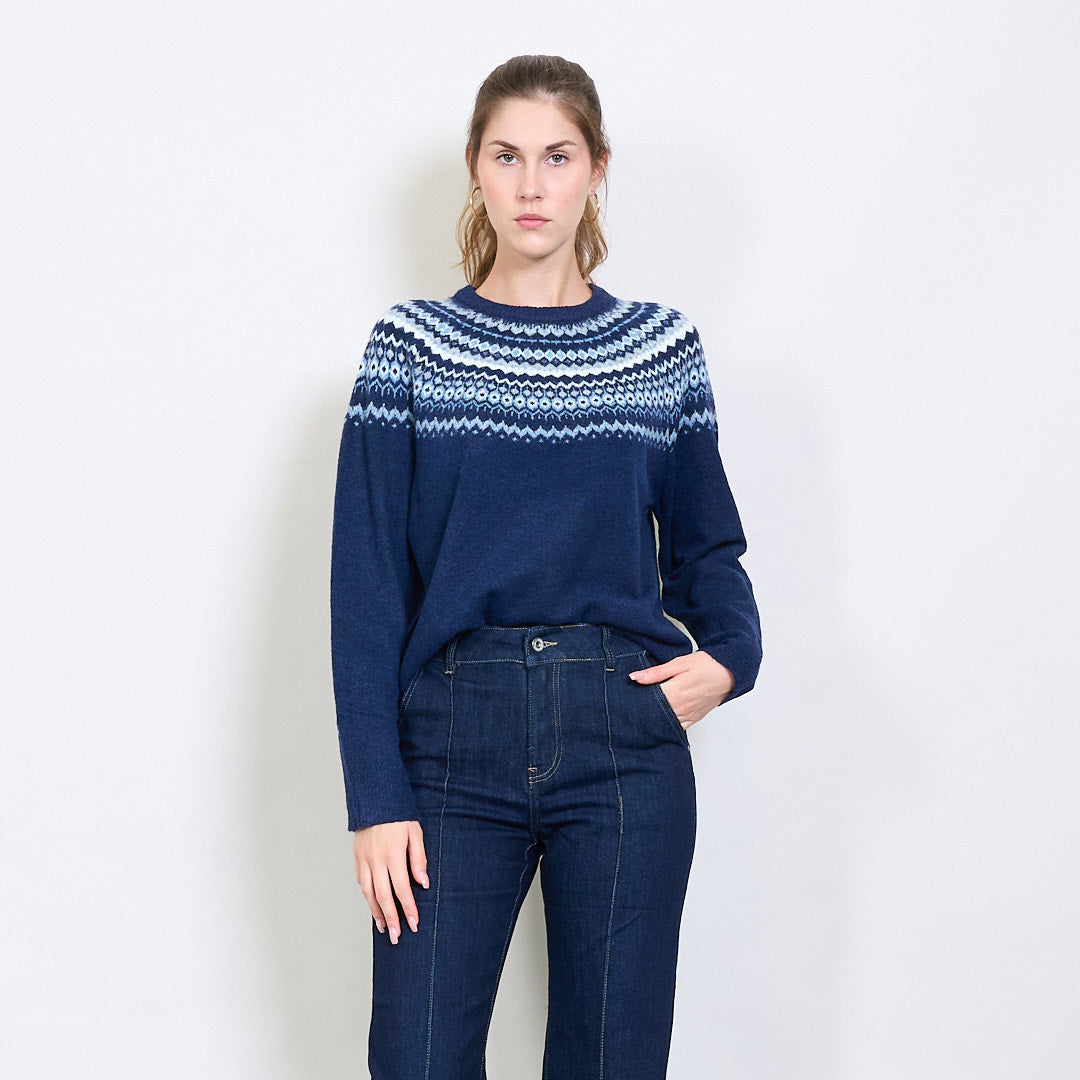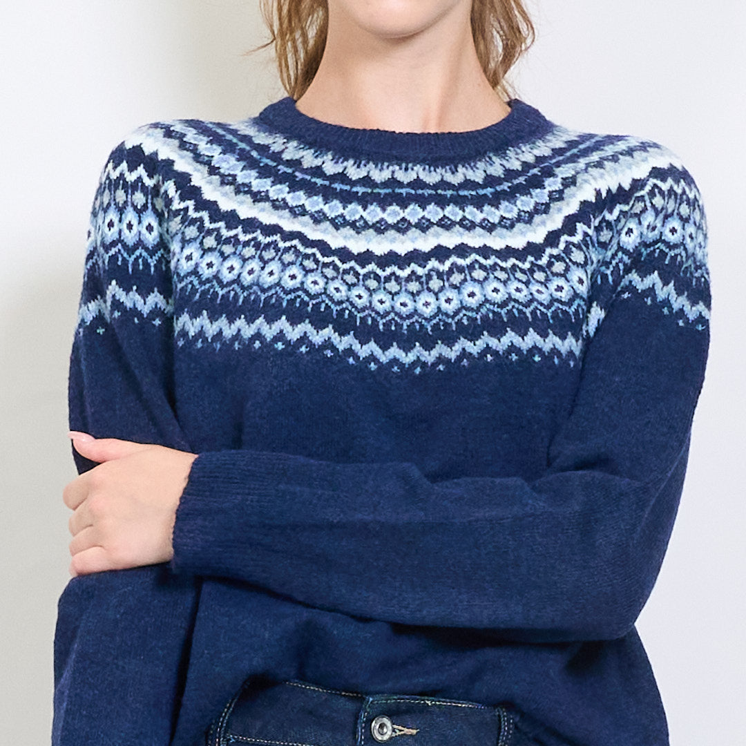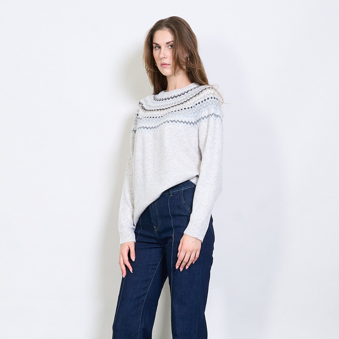 Fair Isle raksta apkalpes kakla džemperis ar rievotu apdari vairumtirdzniecībā