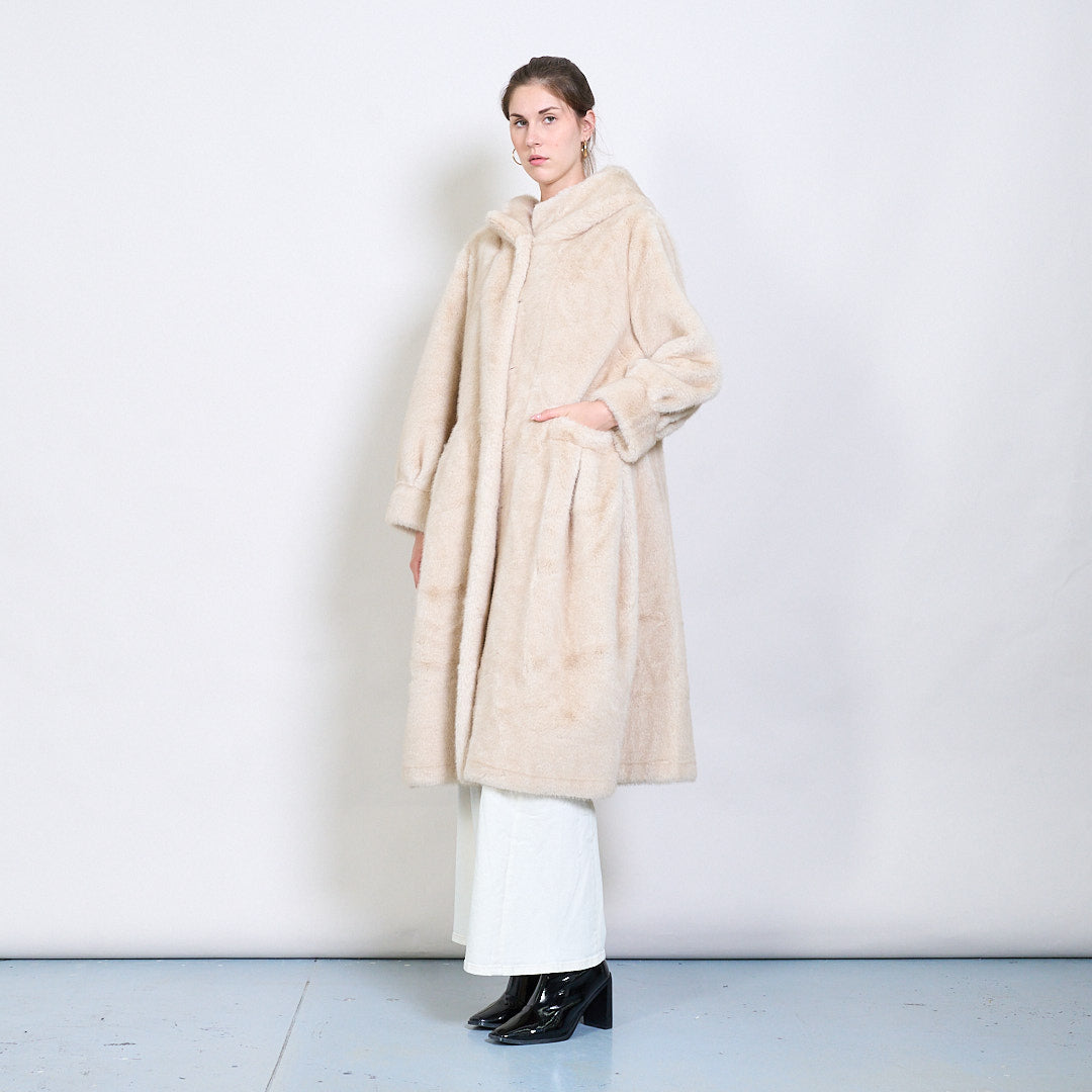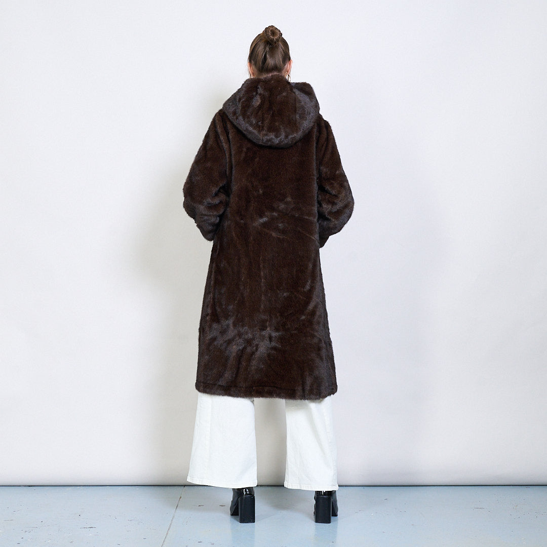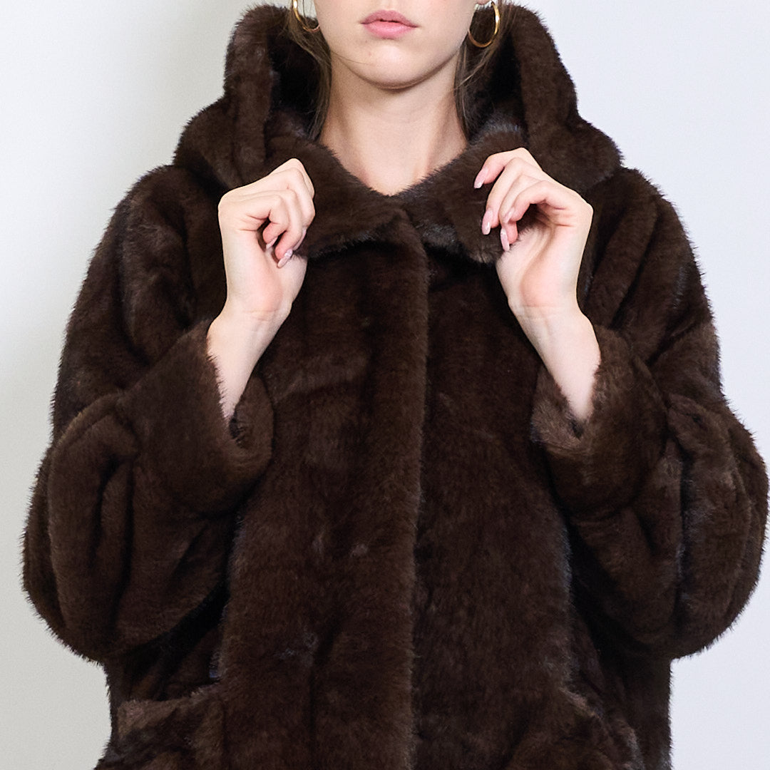 Garš plīša eko-fur mētelis ar atloka apkakles vairumtirdzniecību