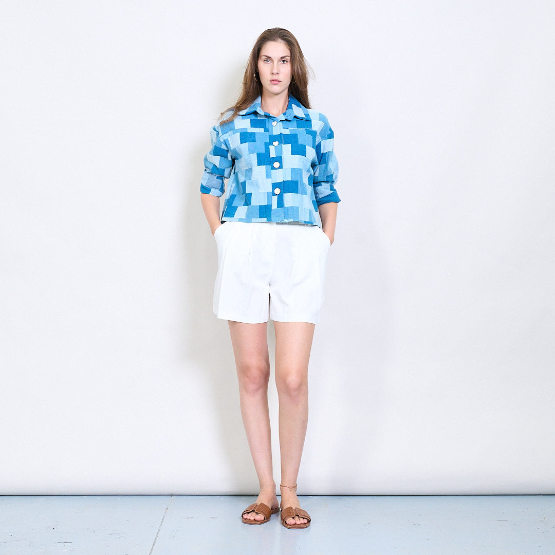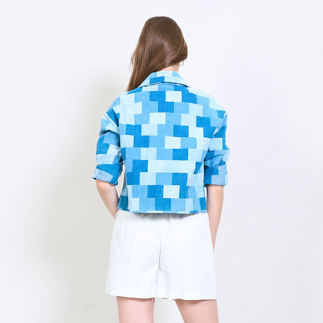 - Boxy piemērota krekls ar uzkrītošu raibu stila džinsa efektu