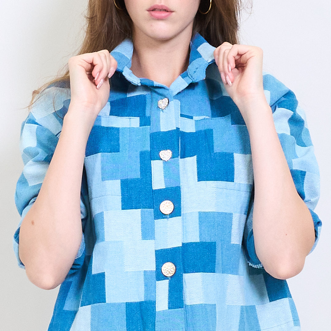 Ģeometriskais raibs-efekts džinsa pogas krekls Vairumtirdzniecība