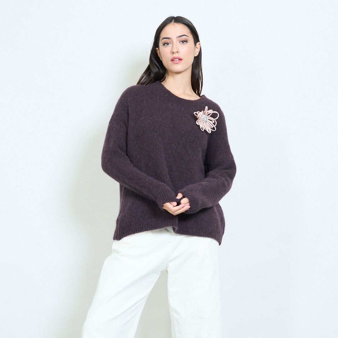 Mīkstā adīta ziedu piespraudes pulvera džempera vairumtirdzniecība