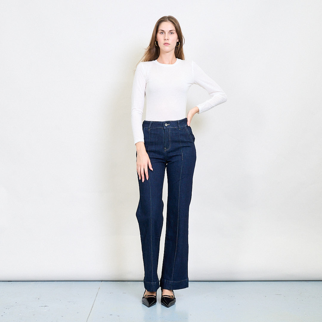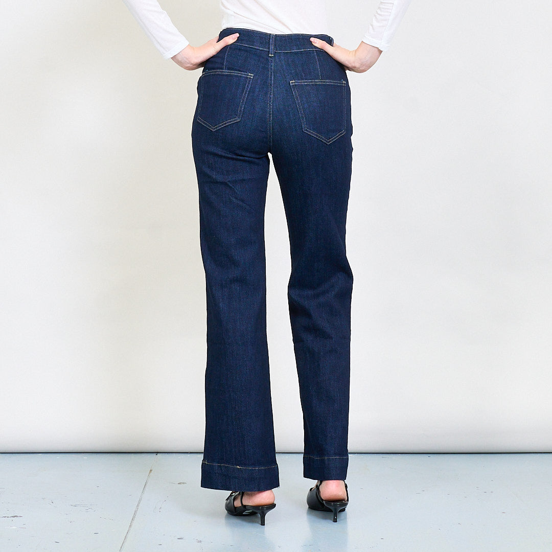 Pielāgotas šuves priekšējās džinsa bikses ar izliektu kabatu vairumtirdzniecību