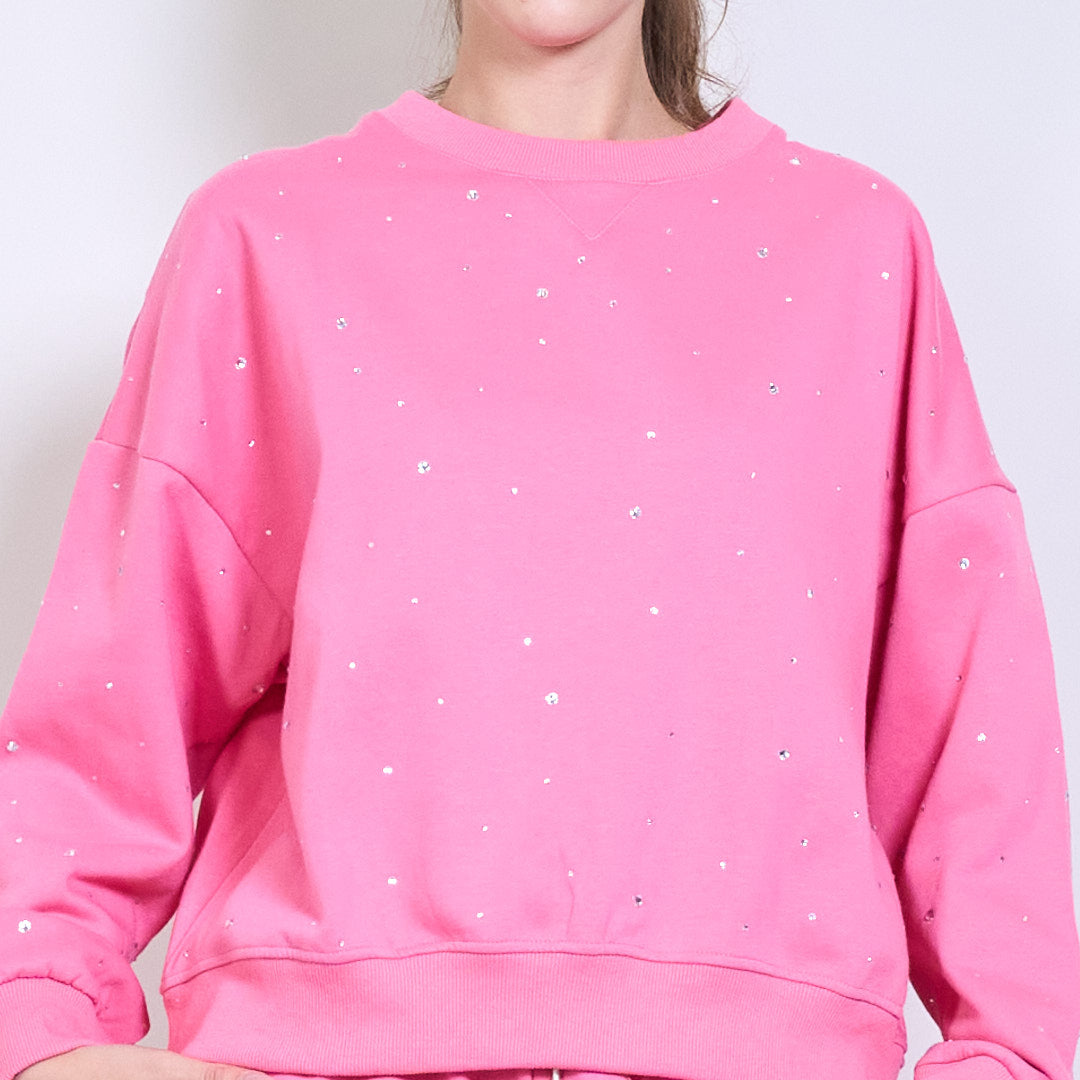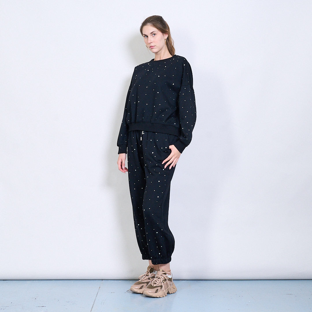 - Relaksēts ar spieķi un skrējiena komplekts ar izkliedētu rhinestone detaļu