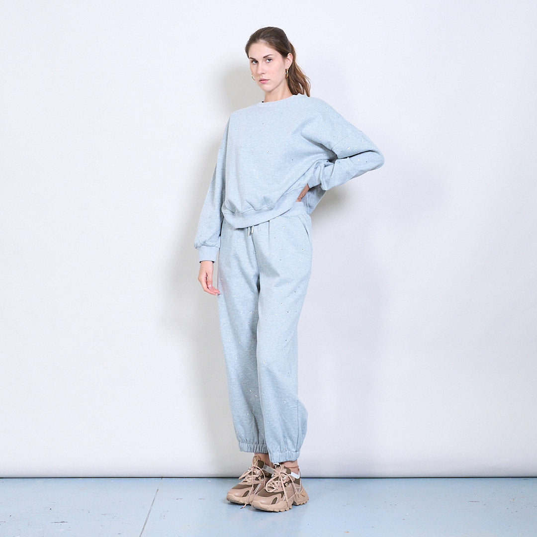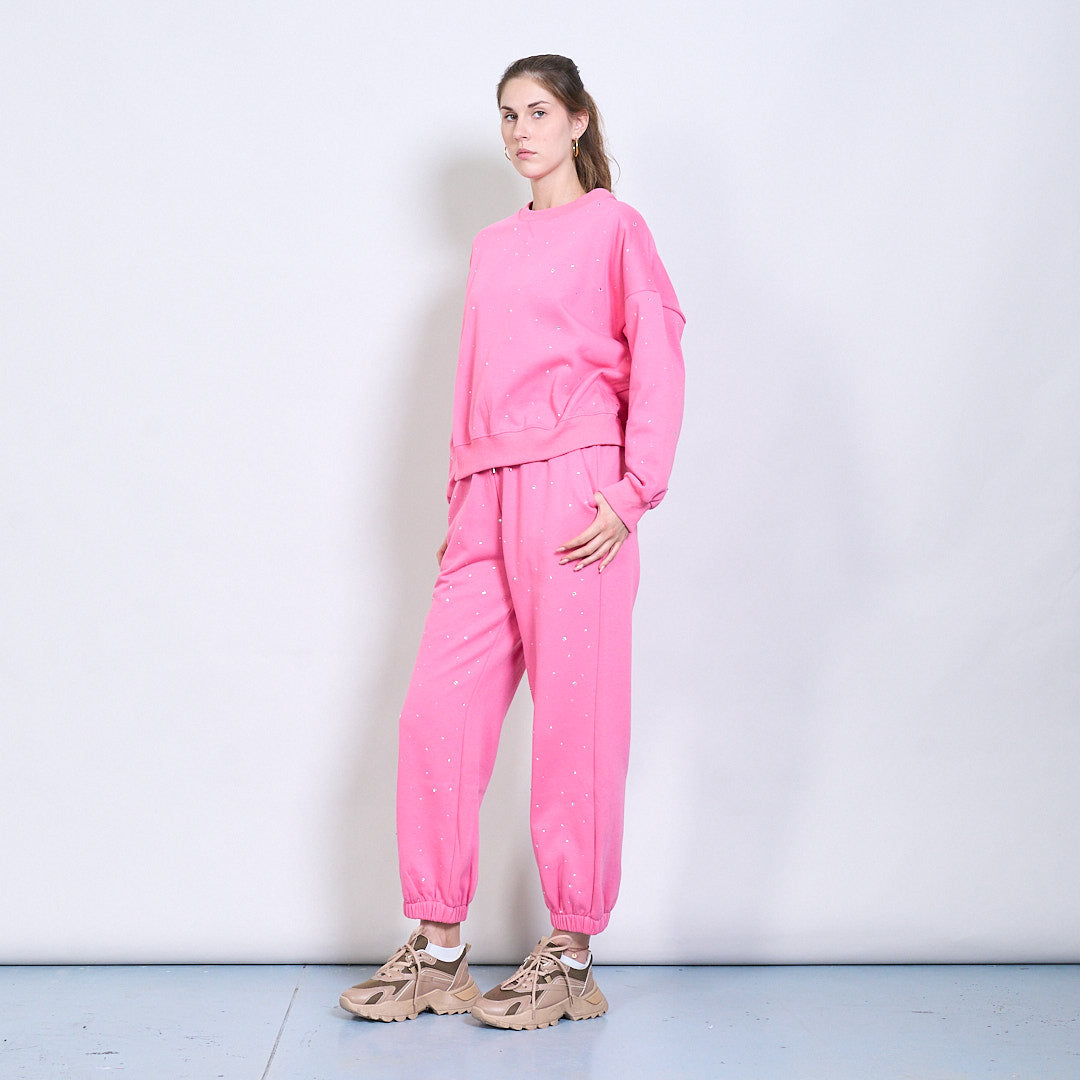 Rhinestone izrotāts lielizmēra sporta krekls un joggera komplekts vairumtirdzniecībā