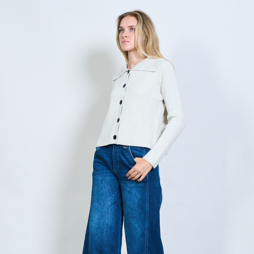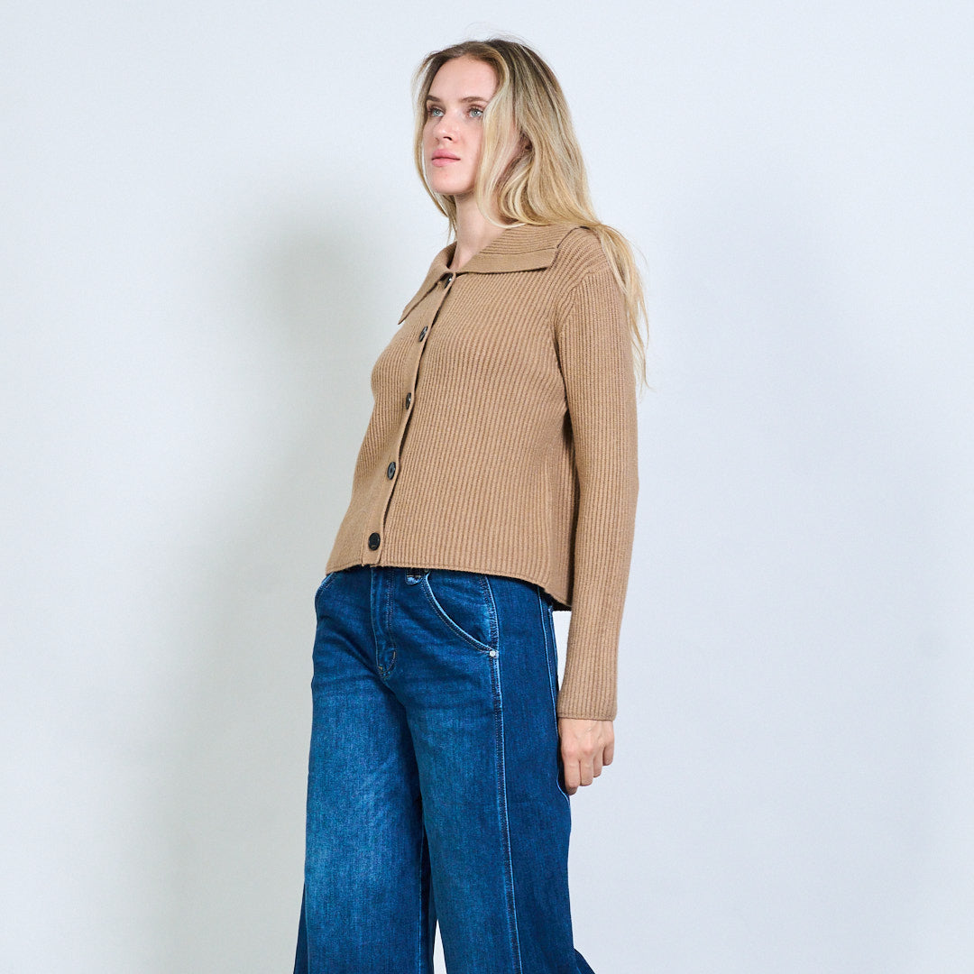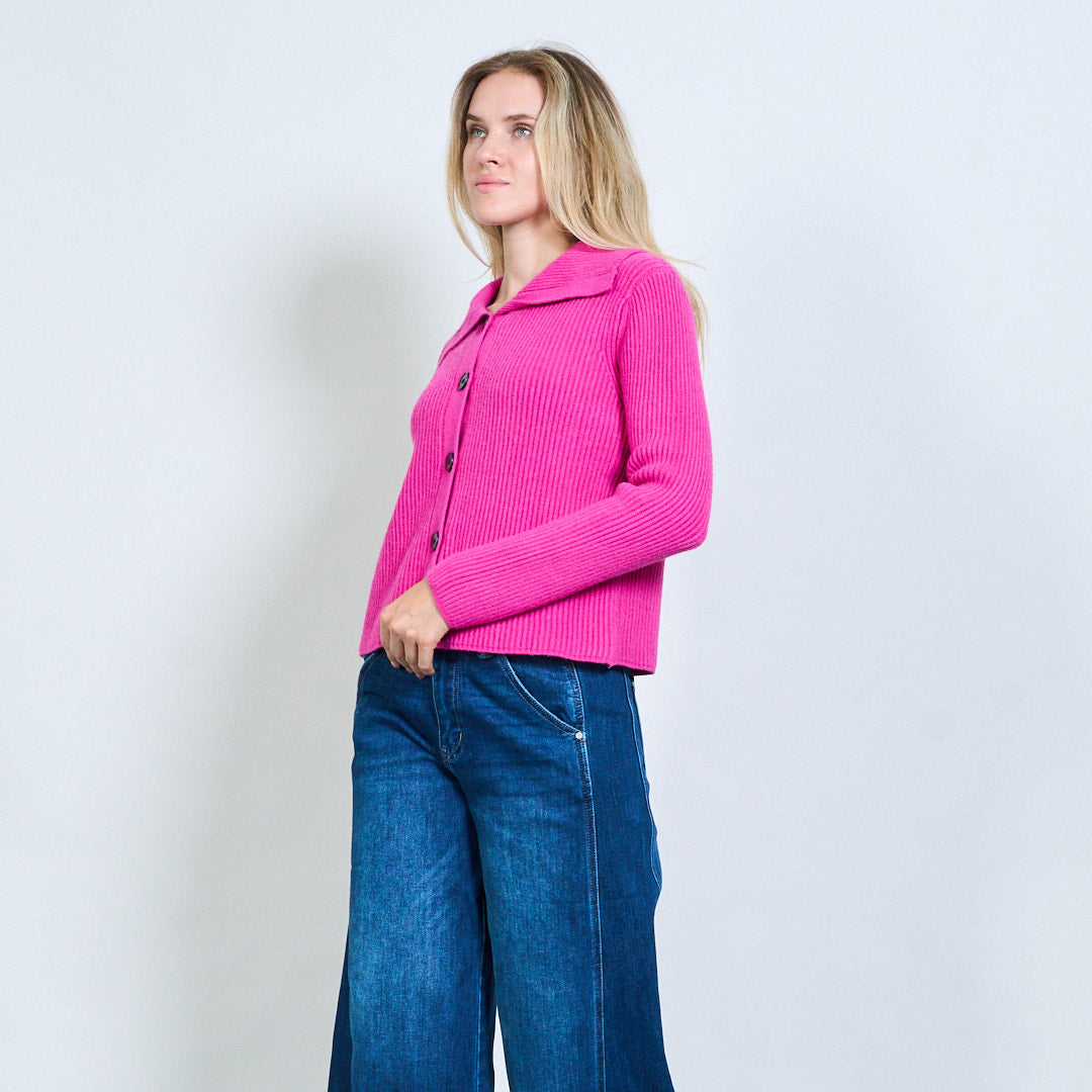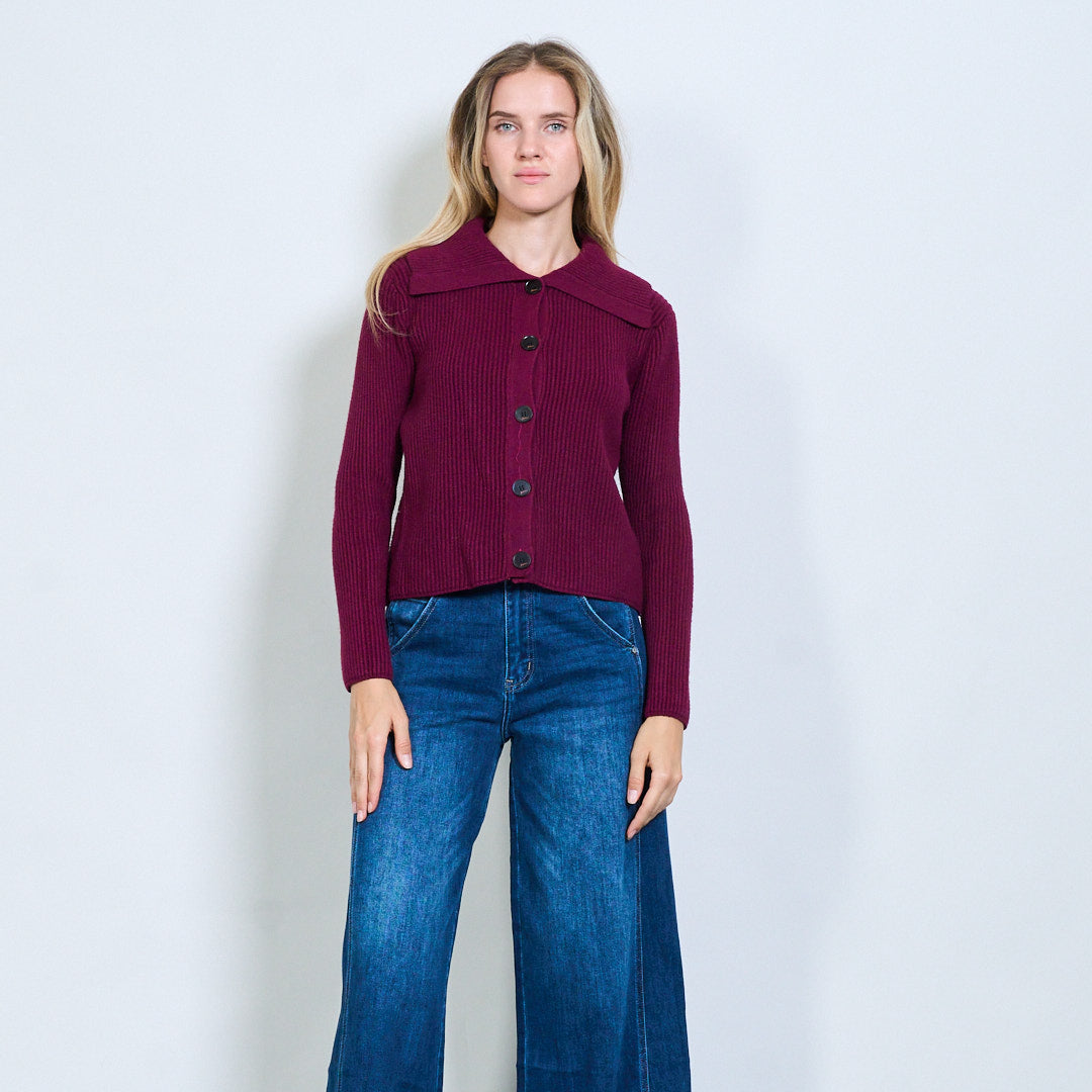 Rievots adīts apkopots ar pogām-up jakas vairumtirdzniecība