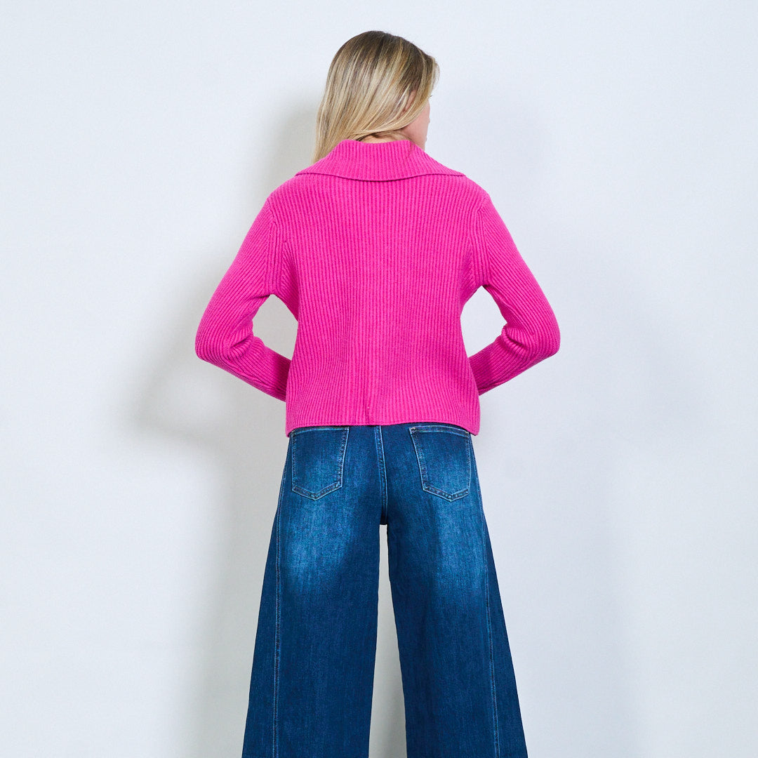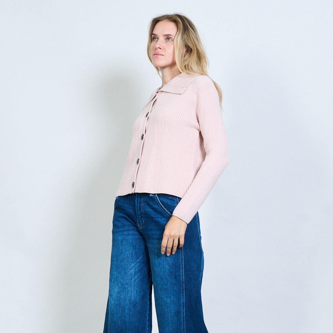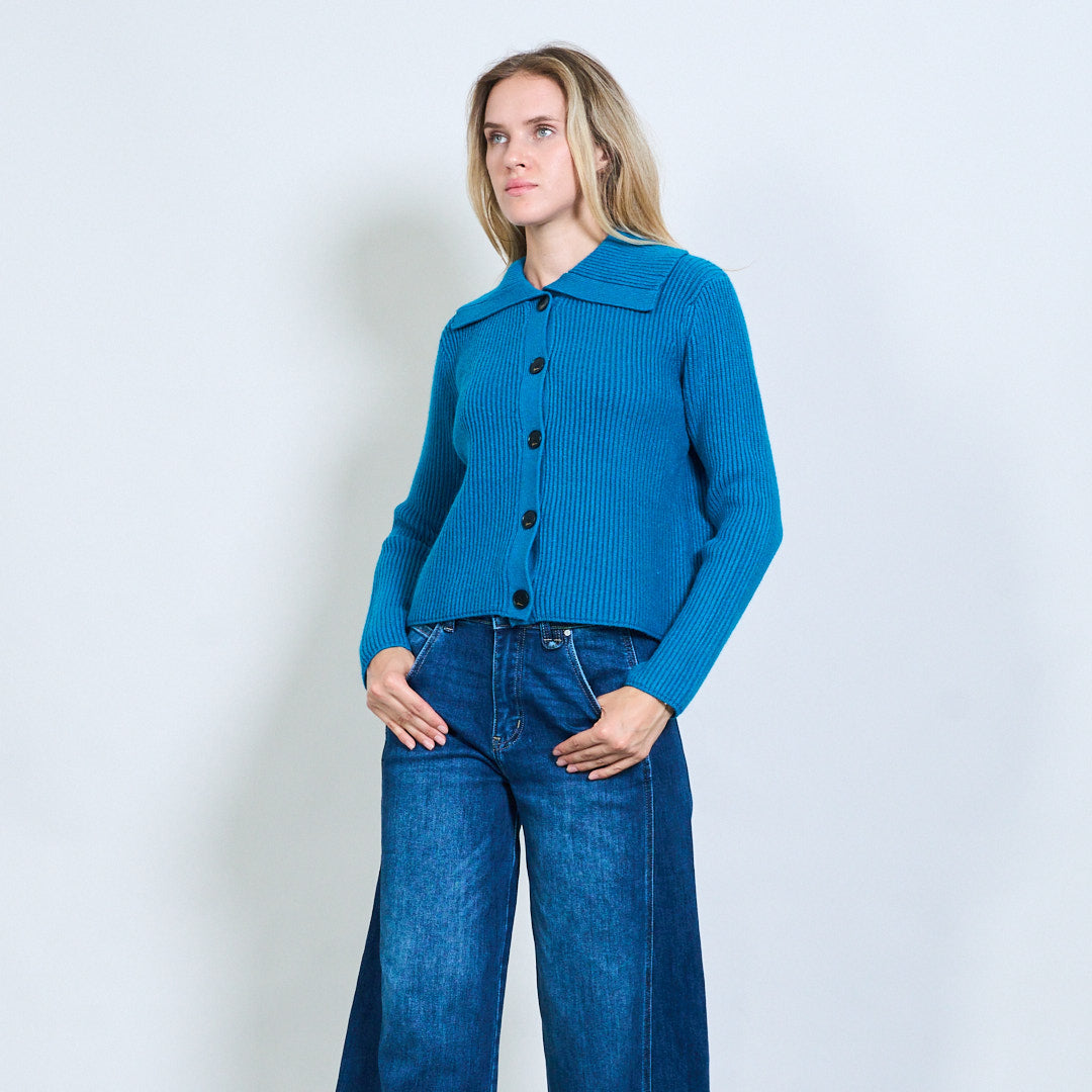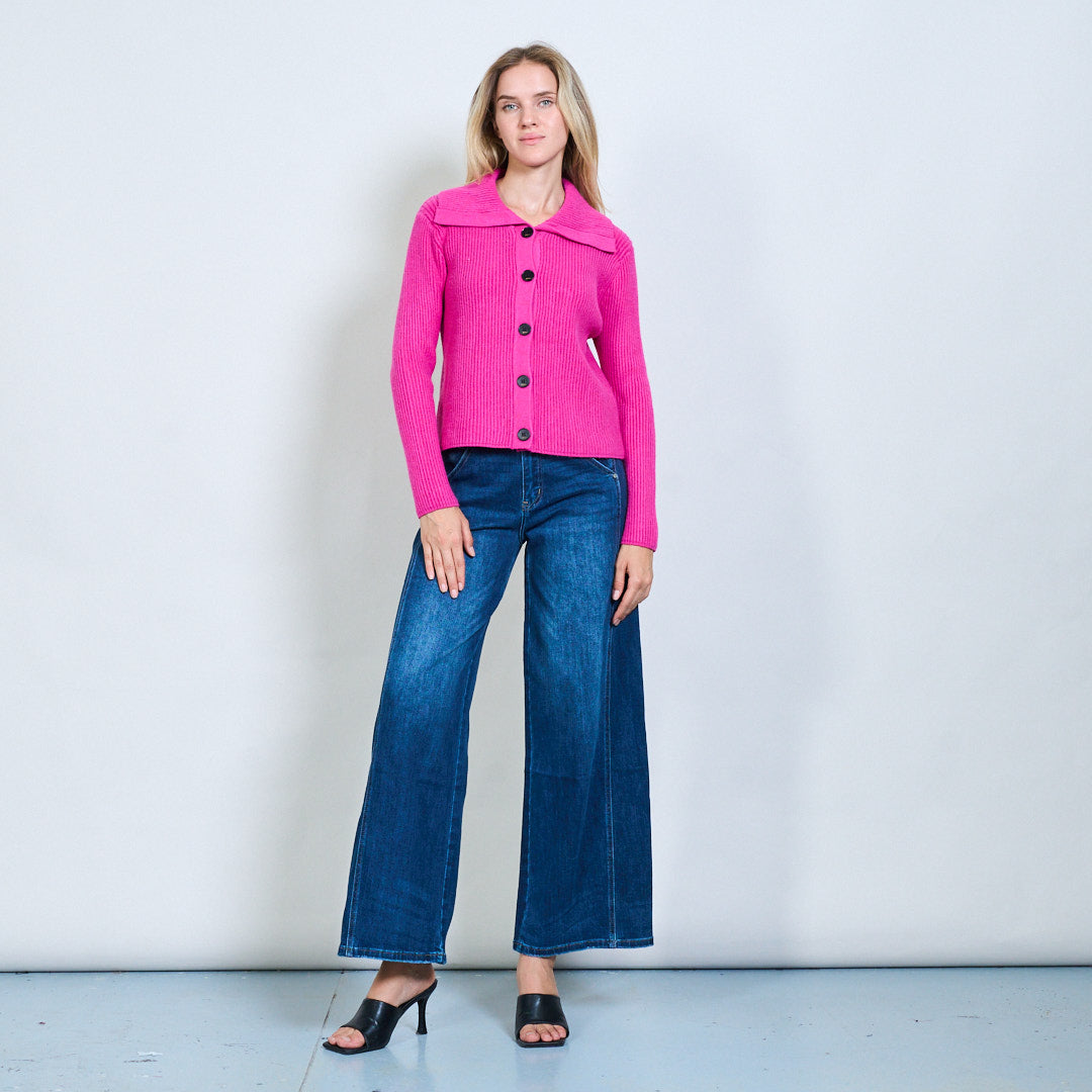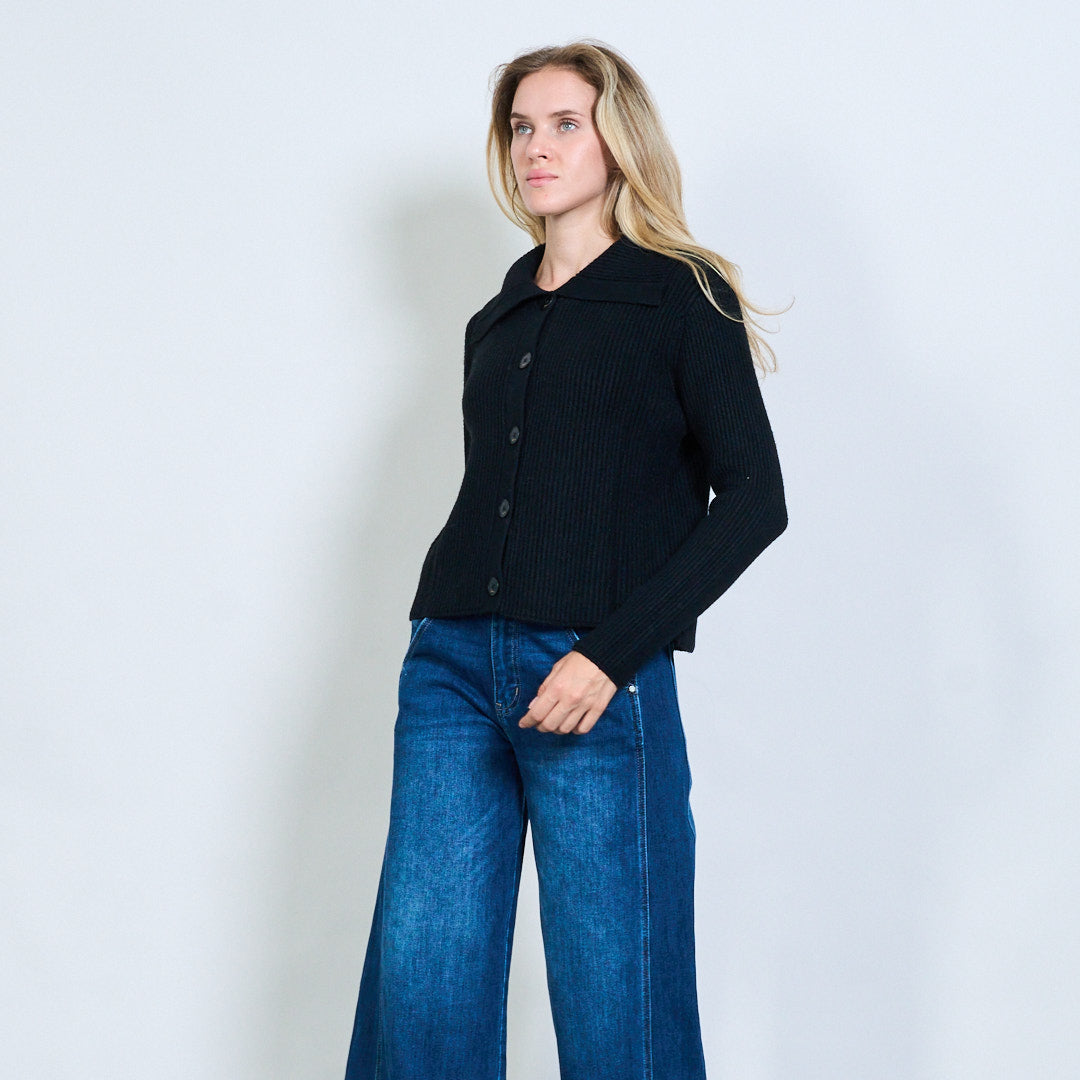 Rievots adīts apkopots ar pogām-up jakas vairumtirdzniecība
