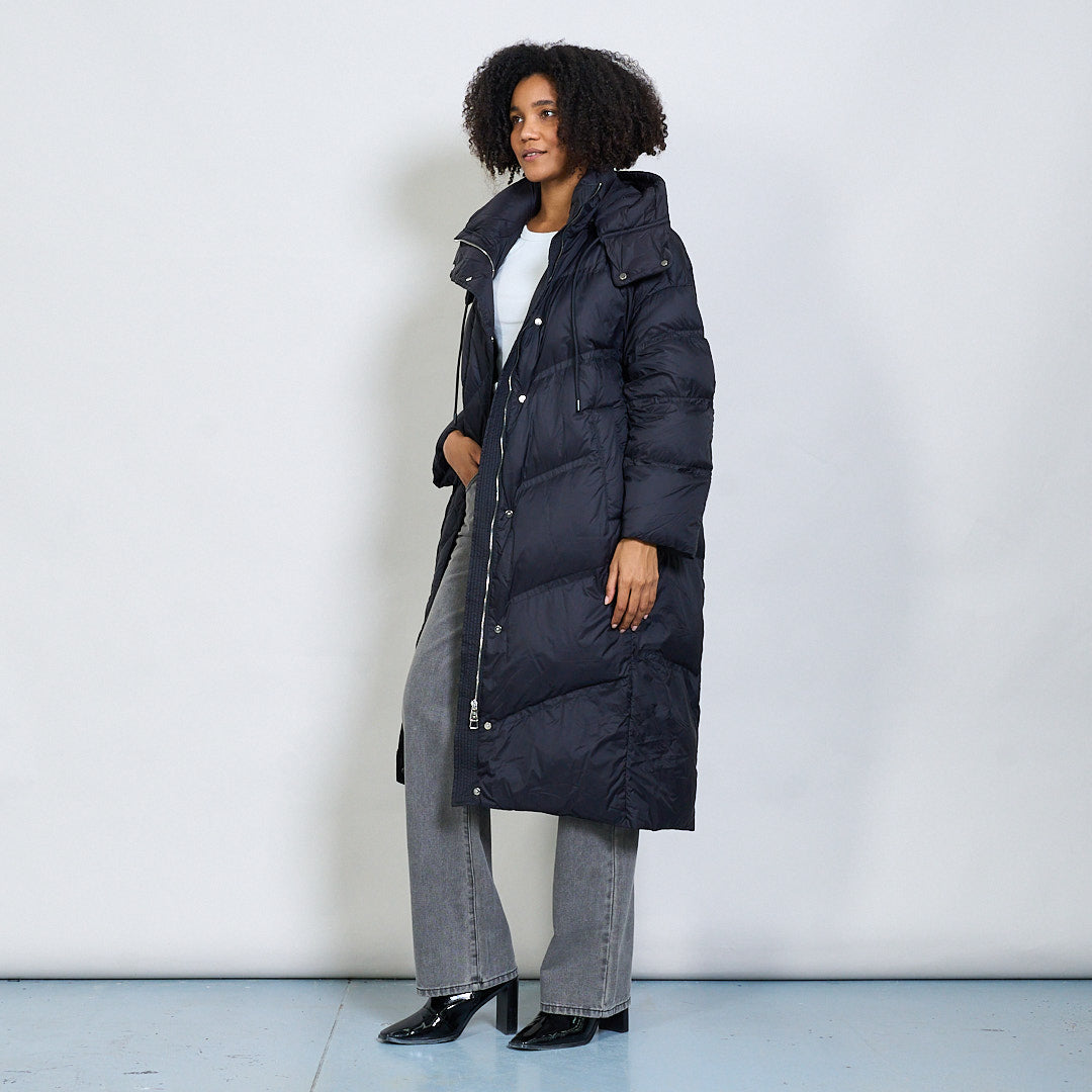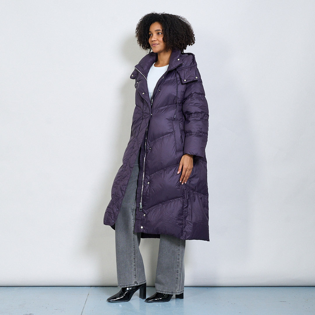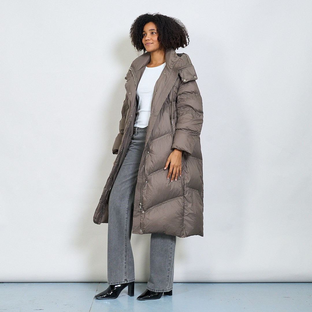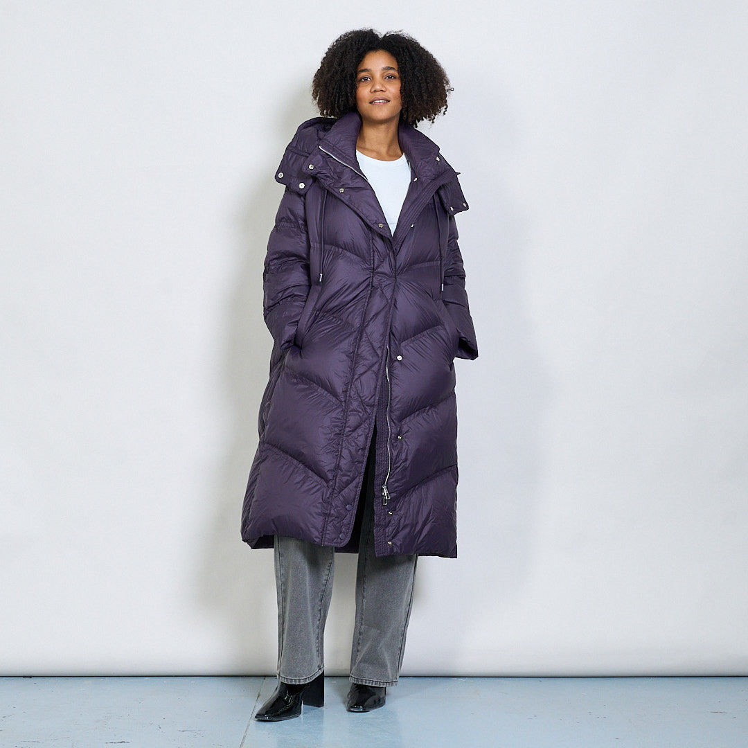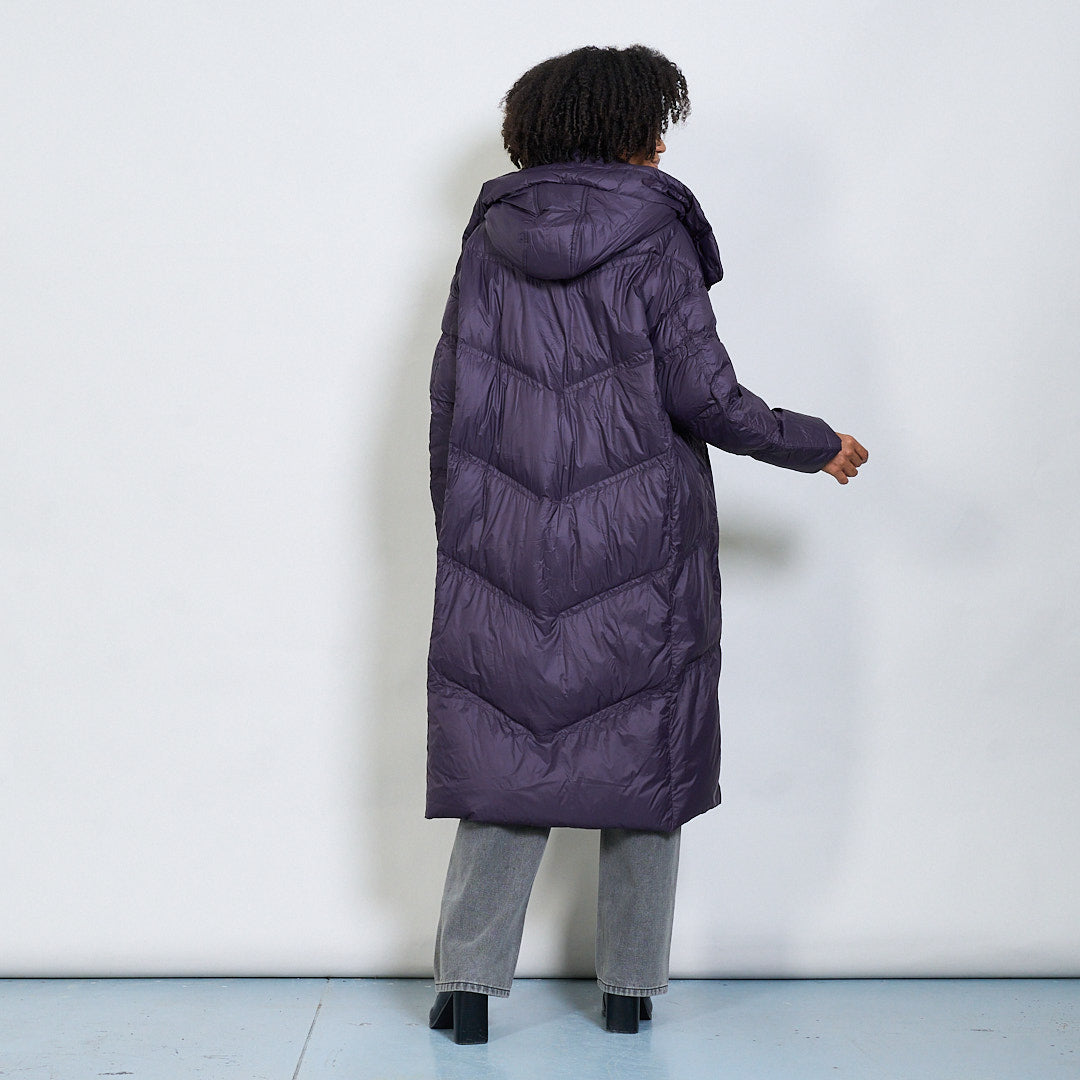 - Ilgi lielizmēra kārta mētelis ar spīdīgu apdari