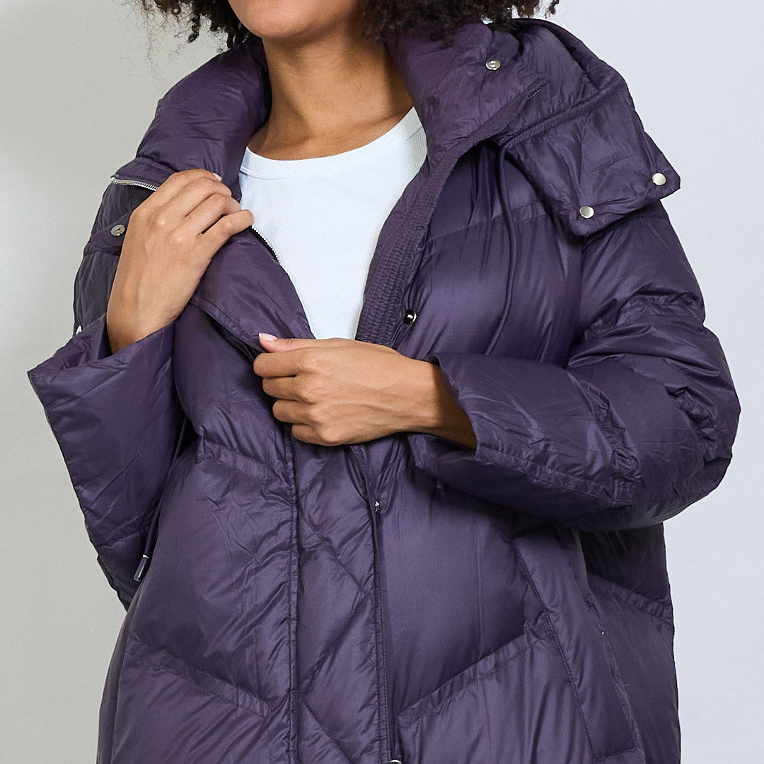 Spīdīgs lielizmēra kapuces kārta mētelis ar SNAP pogu vairumtirdzniecību