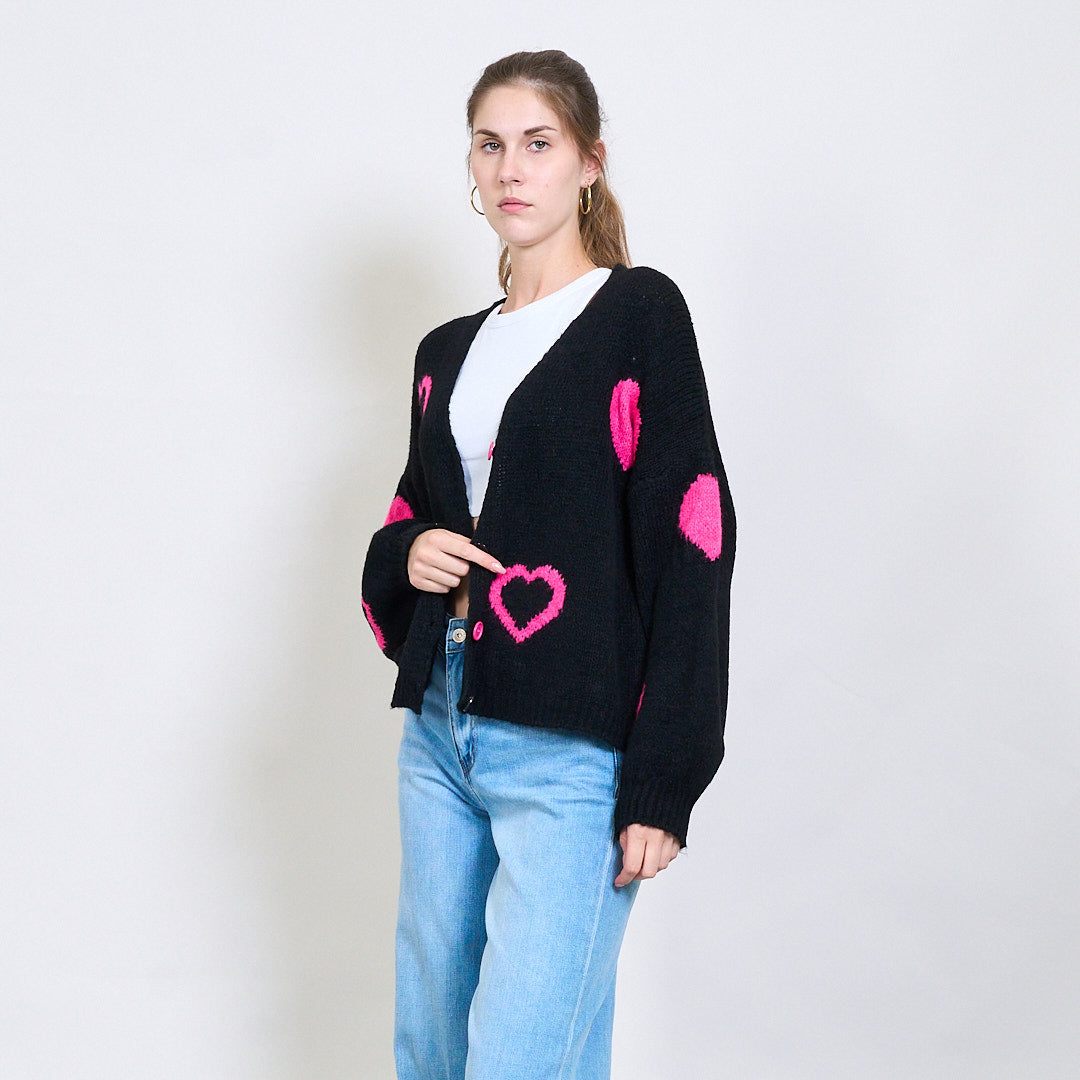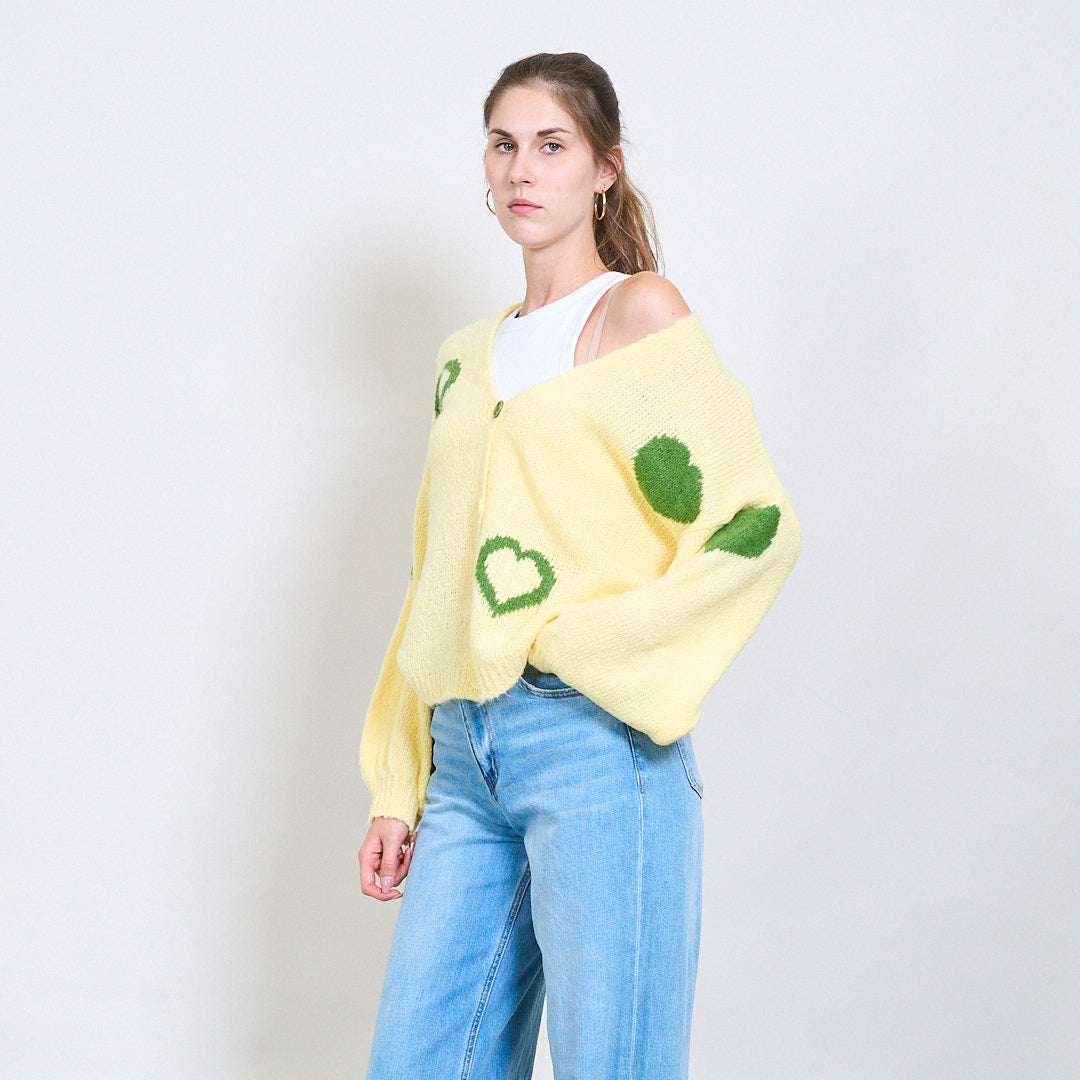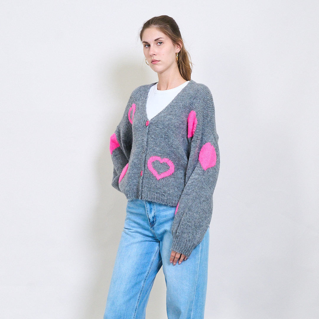 Sirds Žakarda adīts pogas jakas vairumtirdzniecība