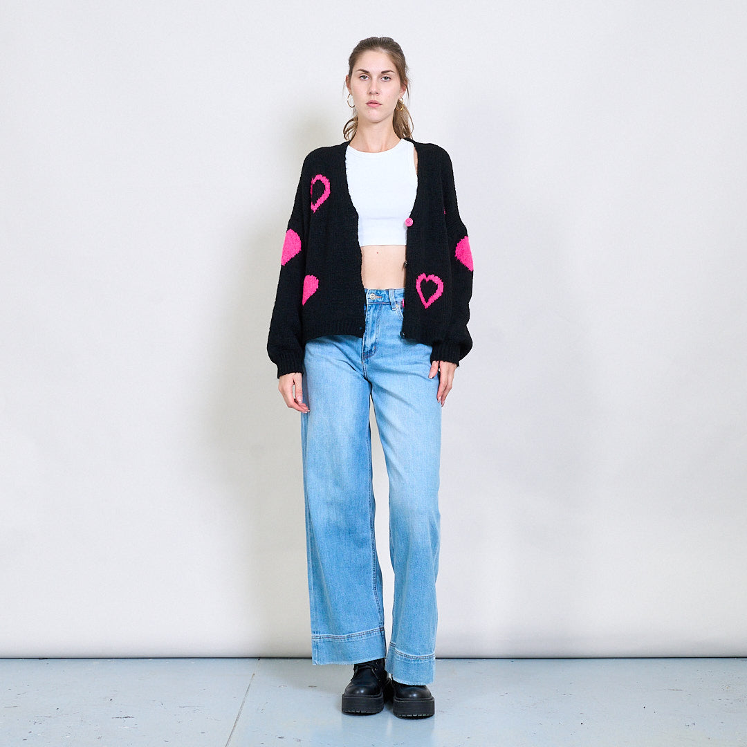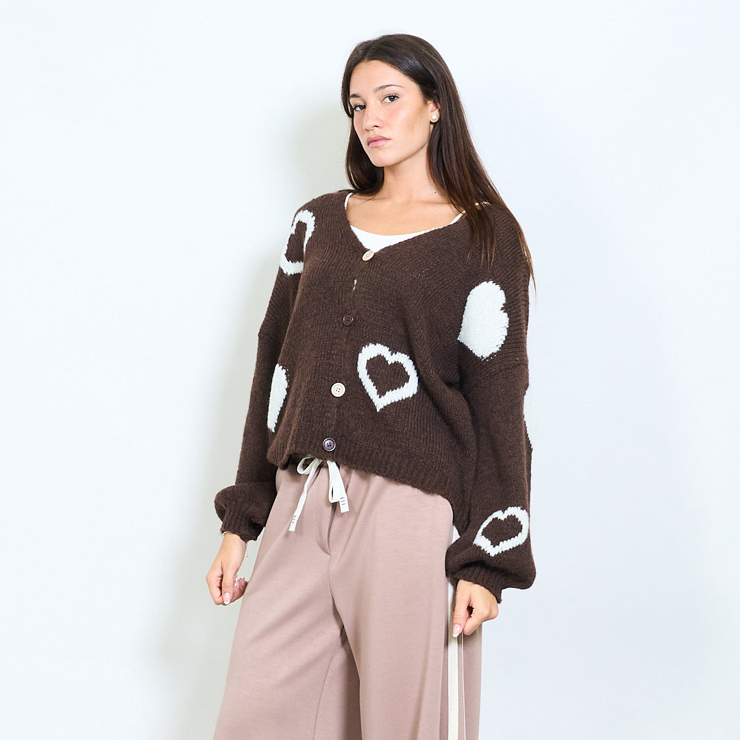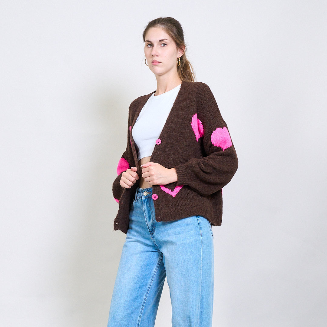 Sirds Žakarda adīts pogas jakas vairumtirdzniecība
