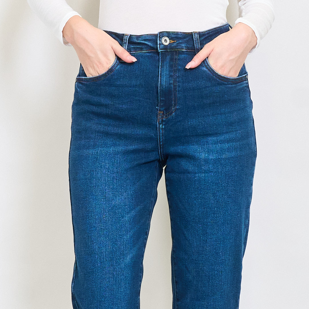 Slaidi džinsi ar velmētu apakšmalu un izbalējušo apdari vairumtirdzniecībā